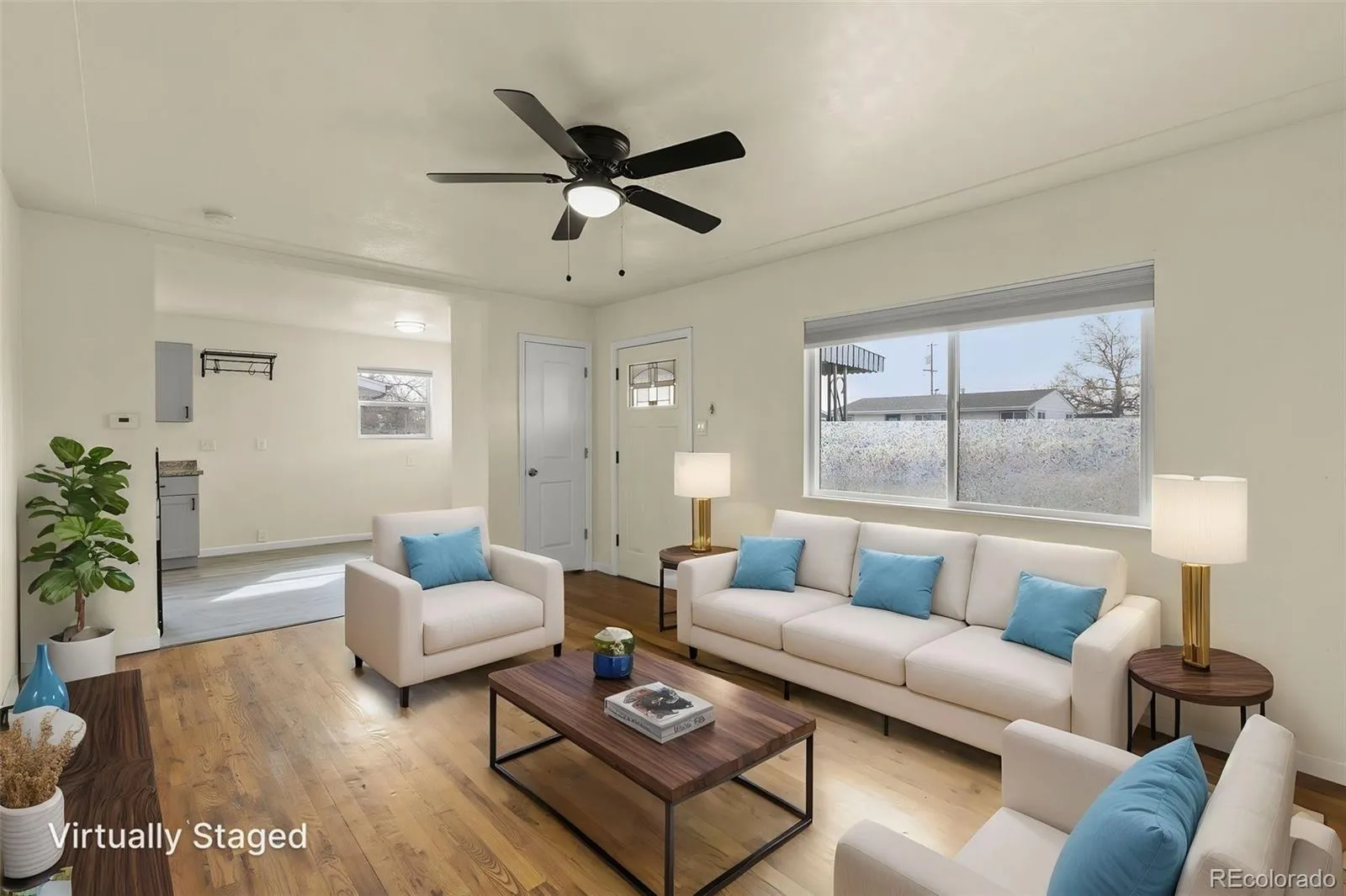 WELCOME HOME!! This Gorgeous 3bed/1 bath home wont last long! Beautiful newer kitchen with newer stainless steel appliances, cabinets, newer paint, trim,Windows, drywall, and doors! Wood floors through-out! Fully redone bathroom with lots of beautiful tile work. Bright open floor plan is extremely welcoming. Everything you need all on one floor! Washer and dryer included! Newer water heater, and newer furnace. BONUS: There is a larger basement with exterior access you can use for whatever you would like! Exercise room, office, storage, or how about some potential income from renting the space out? The possibilities for this extra space is endless! Exterior: new paint, new siding and gutters, bring your toys and vehicles as there is lots of off street parking, maybe for an RV or build your own garage as there is plenty of room for it. *NO HOA* Home has a cute covered front porch and large backyard for you to finish the way you would like to! Perfect location on a quiet street near shopping, restaurants & easy access to I-76 and plenty of businesses nearby for all your needs. *MUST SEE* Listing agent is related to the sellers. SHORT SALE