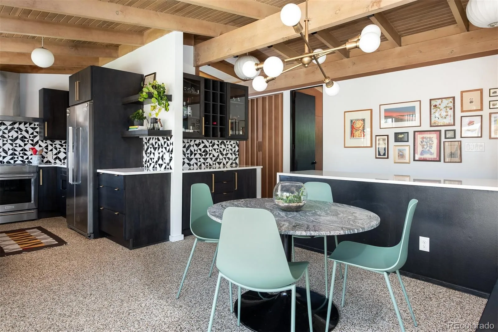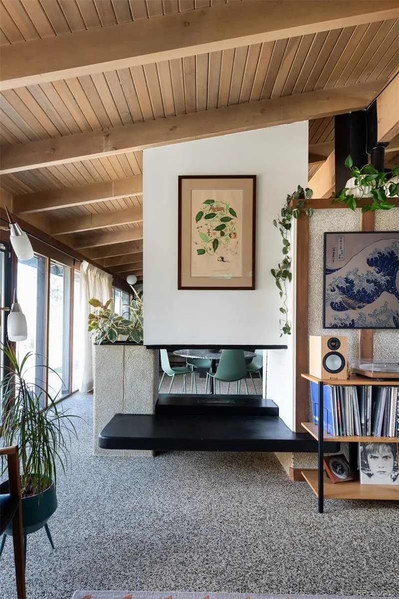 *Ask about lender credits to cover a 2-1 temporary rate buydown if using preferred lender* MCM magazine show stopper: Welcome to this headlining, MCM masterpiece in Arapaho Hills. Built by Clyde Mannon in 1956, and featured in 1956 in a Better homes magazine, this home truly exemplifies everything in the theory of modernism. The low slung roof beckons you into the homes entrance where you cross over a rock bridge (originally over a water feature) to reach the front door. Once inside, you may not actually feel like you are inside. The main living area is is bookended by floor to ceiling glass, and topped with clearstory windows flooding this living area with constant, natural light. The main area seamlessly flows into the dining area, passing by a two sided, floating fireplace, with built in planter. The dining area has a built in coffee bar and vintage dish ware storage, and built in buffet/catch all with extra storage as well! The kitchen is perfectly sized and positioned to prep for a quiet dinner, or entertaining for a group. Complete with newer stainless steel appliances, quartz counters, updated cabinets, and backsplash; all tying in perfectly to the original bones of the home. Down the hall, is the large first bedroom, with southern light exposure, and vintage sculptural wall tiles. Next is the updated, full bath with modern appointments, full of MCM flair! The second bedroom, also with southern windows and spacious area- makes the perfect office! Then to the primary bedroom MCM dreams are made of. HUGE walk in closet, large room (can easily accommodate a King bed+nightstands). Then. The en-suite primary bath. With a perfectly placed skylight- one will feel like they are always showering and connected to the outside. In addition to all this, the unpainted T/G ceilings, pebble floors, new roof, new sewer, and owned solar make this STUNNING MidMod home truly one of a kind, and awaiting the next steward to love it through the next many decades!