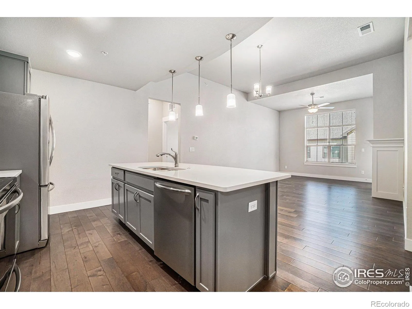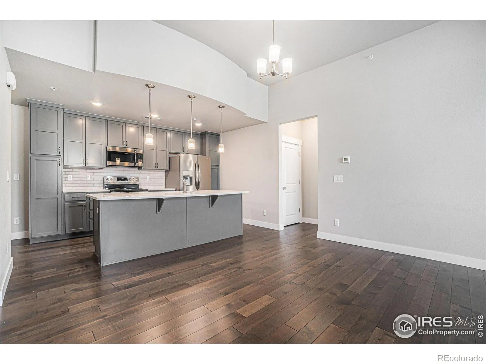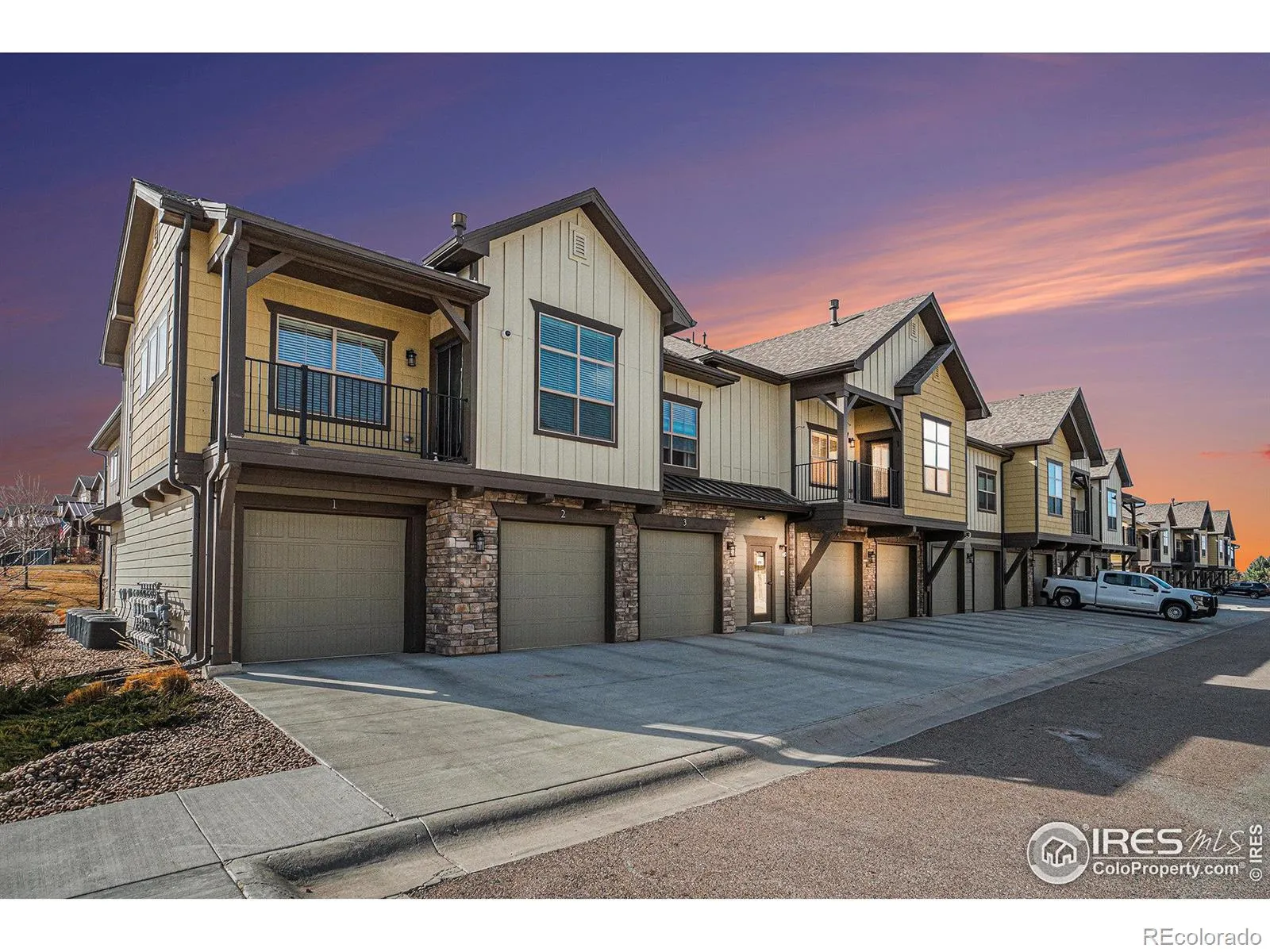 Welcome to this beautiful 2-bedroom, 2-bathroom condo located in the desirable Portofino Flats at La Riva, within Highland Meadows and built by Landmark Homes. The rustic Craftsman-style exterior offers great curb appeal, while the secured entry and elevator access provide both comfort and convenience.Inside, you’ll find premium finishes throughout, including an open-concept kitchen with painted grey cabinetry, quartz countertops, engineered hardwood and tile flooring, stainless steel appliances, a cozy fireplace, and solid core doors. The home also features an oversized attached garage, a high-efficiency furnace, and a tankless water heater.Additional highlights include a spacious laundry room with side-by-side washer and dryer, plus extra storage and cabinetry.Enjoy an active Colorado lifestyle in this amenity-rich golf course community featuring tennis courts, a swimming pool, and a new clubhouse, as well as a resort-style hot tub, BBQ area, and firepit.