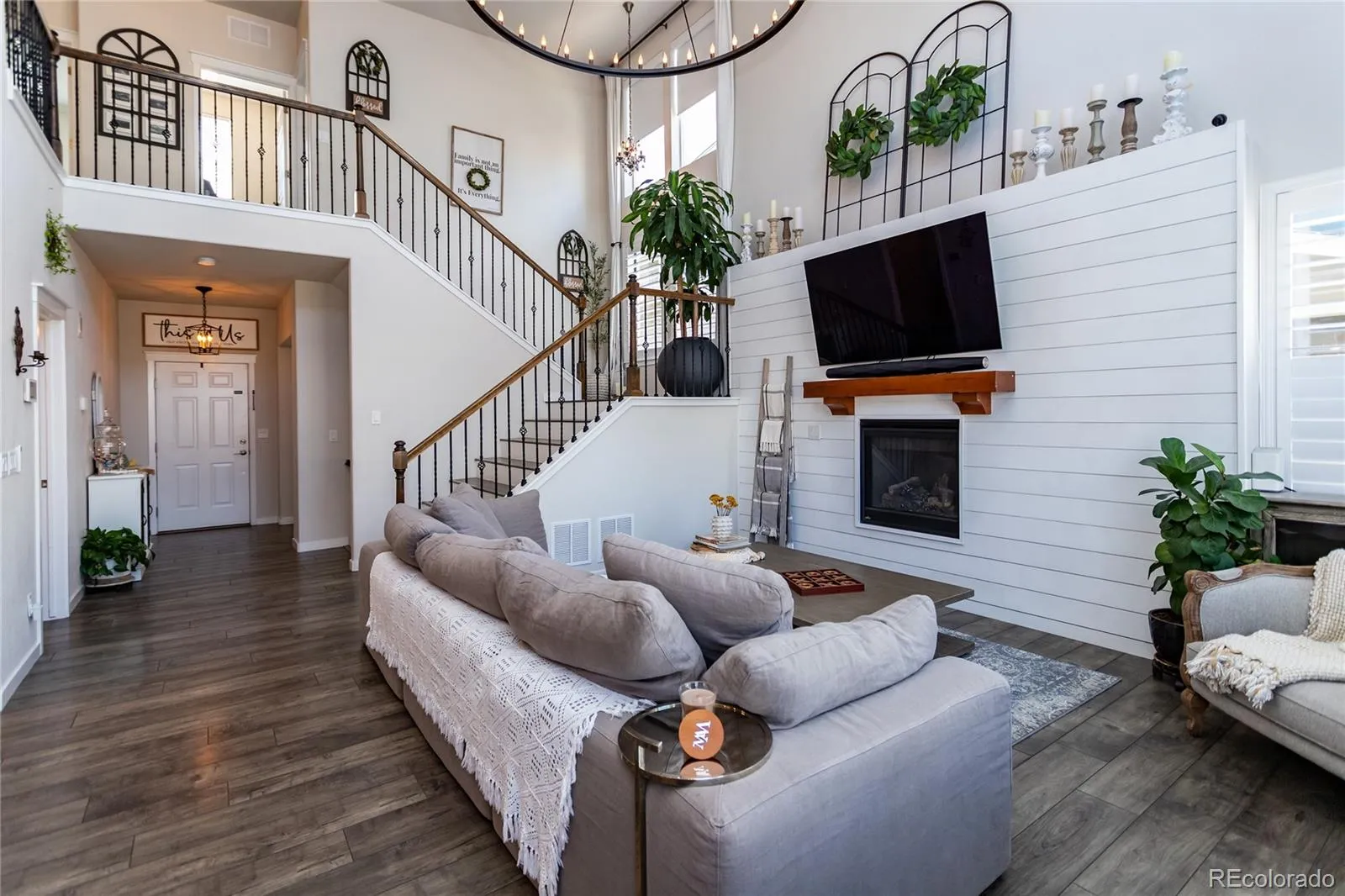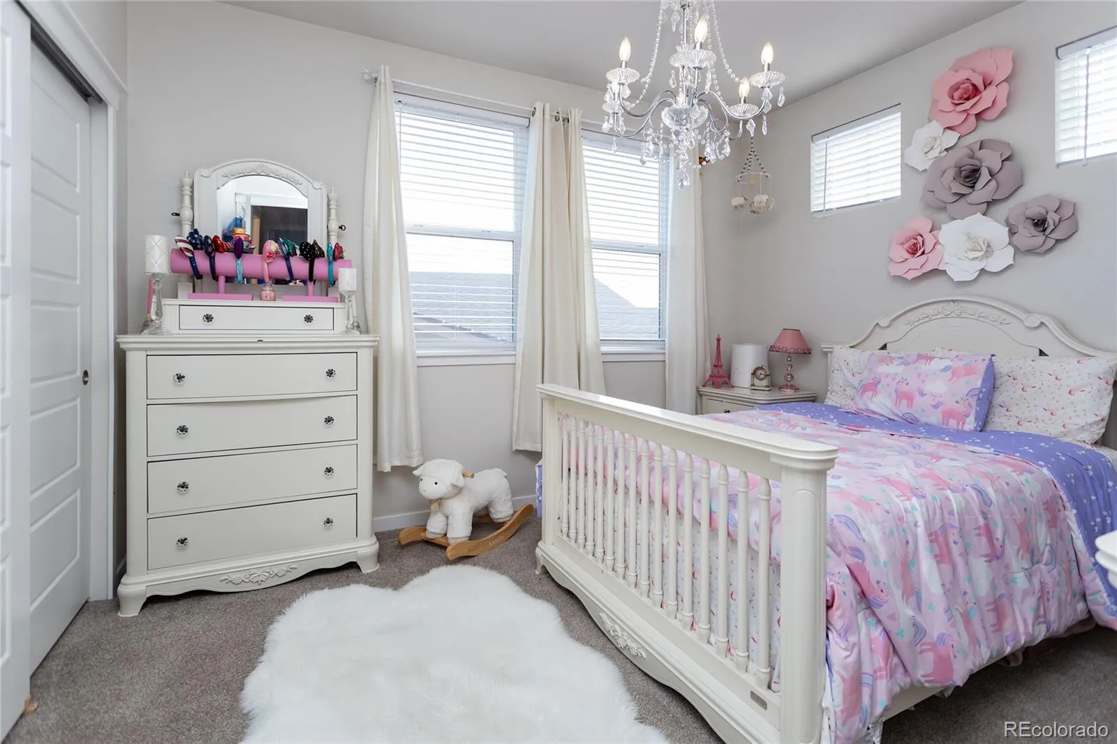 This beautiful and spacious home is nestled in the desirable Cordera community. Easy commutes to military bases, shopping and restaurants make this the perfect place to call home! Entering the neighborhood you are surrounded by gorgeous mountain views! As you make your way into the entry of the home, you are greeted with beautiful wood flooring and a flex room that can be used for whatever you can dream up. Continuing through the entry, you will be in awe as you feel the sunlight coming through windows that are as sky-high as the ceilings. When you aren’t up for the sunlight, you can close the plantation shutters or pull the custom floor to ceiling drapery. The windows up high have custom remote guided shades! You will also notice a mudroom that allows for drop space when entering the home from the garage, and a half bath. Speaking of the garage…come see the amount of storage space available! Larger vehicle? It fits! The kitchen in this home is thoughtfully laid out and is open to the living and dining room areas, making entertaining a breeze. Feel the luxury of a walk in pantry as you pass through the additional kitchen space, great for a butler’s pantry, coffee bar or workspace. Modern appliances and stone counters finish off this heart of the home! As you make your way upstairs, you’ll see plenty of space for all your needs. A bright open landing leads you to the primary suite where you can hide away after a long day. A soaking tub greets you upon entering the bathroom, while a large walk in closet allows for the space and organization you crave. Upstairs laundry provides convenience, while three more bedrooms and a full bathroom provide ample space for your family’s needs. A fifth oversized bedroom can be found in the basement, as well as a full bathroom, family room space and large storage areas! Before you leave, make your way to the backyard to find a large patio and sizeable yard to enjoy!