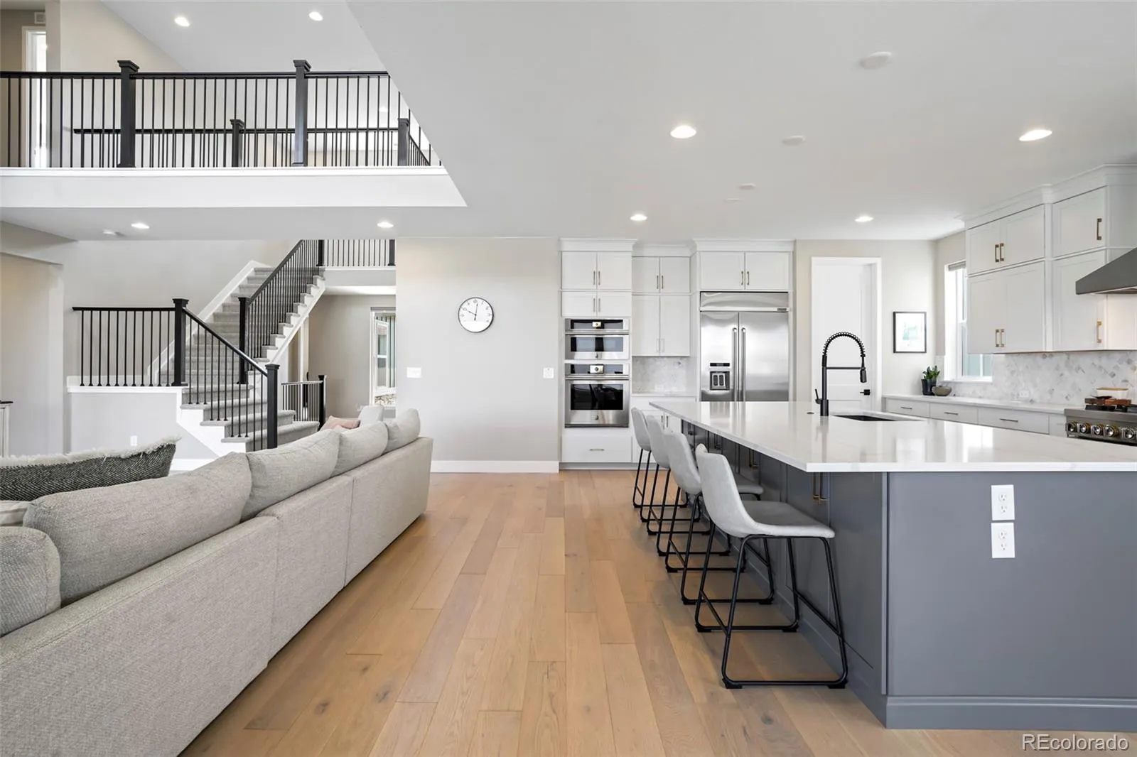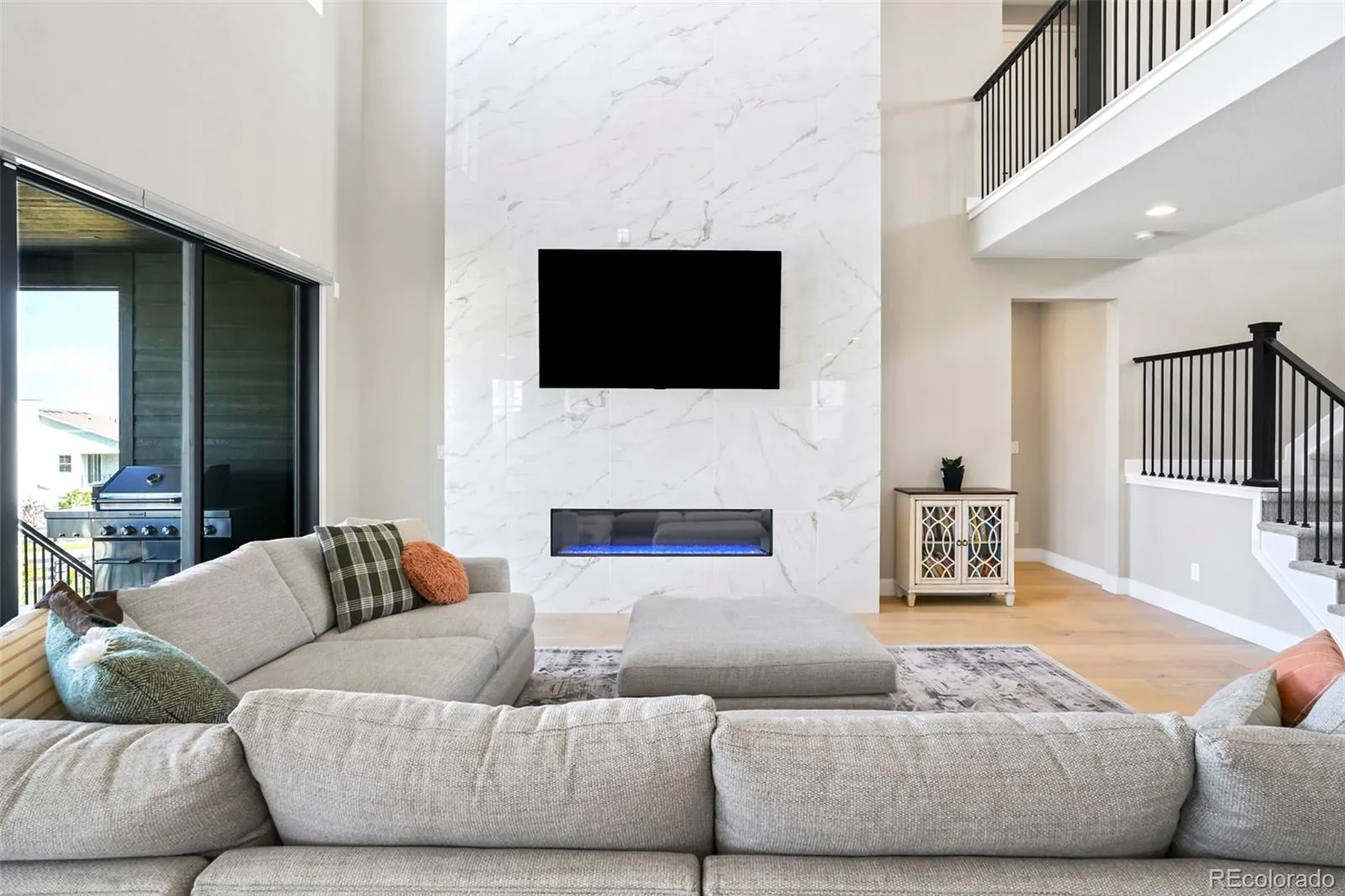 Enter a world where sophistication meets comfort. Lofty ceilings and an open floor plan with a floor-to-ceiling fireplace create a striking atmosphere perfect for hosting or simply unwinding. The gourmet kitchen with a vast center island is ideal for both daily life and grand entertaining. Seamlessly connect to nature on the covered balcony, where expansive glass doors bring the outdoors in. The home offers a private retreat for everyone. The luxurious primary suite is a true spa-like escape, while the upgraded walkout basement with over $150,000 in enhancements is an entertainer’s dream, featuring a full wet bar, beverage fridge, and ice maker. Outside, find your own paradise with a hot tub and a landscaped patio. With a two-car attached garage and a one-car detached garage, storage is abundant. Conveniently located with easy access to I-25, the Denver Tech Center, and DIA, this home offers a lifestyle that perfectly balances comfort, elegance, and everyday convenience.