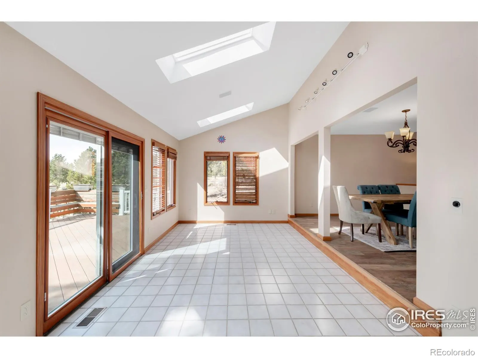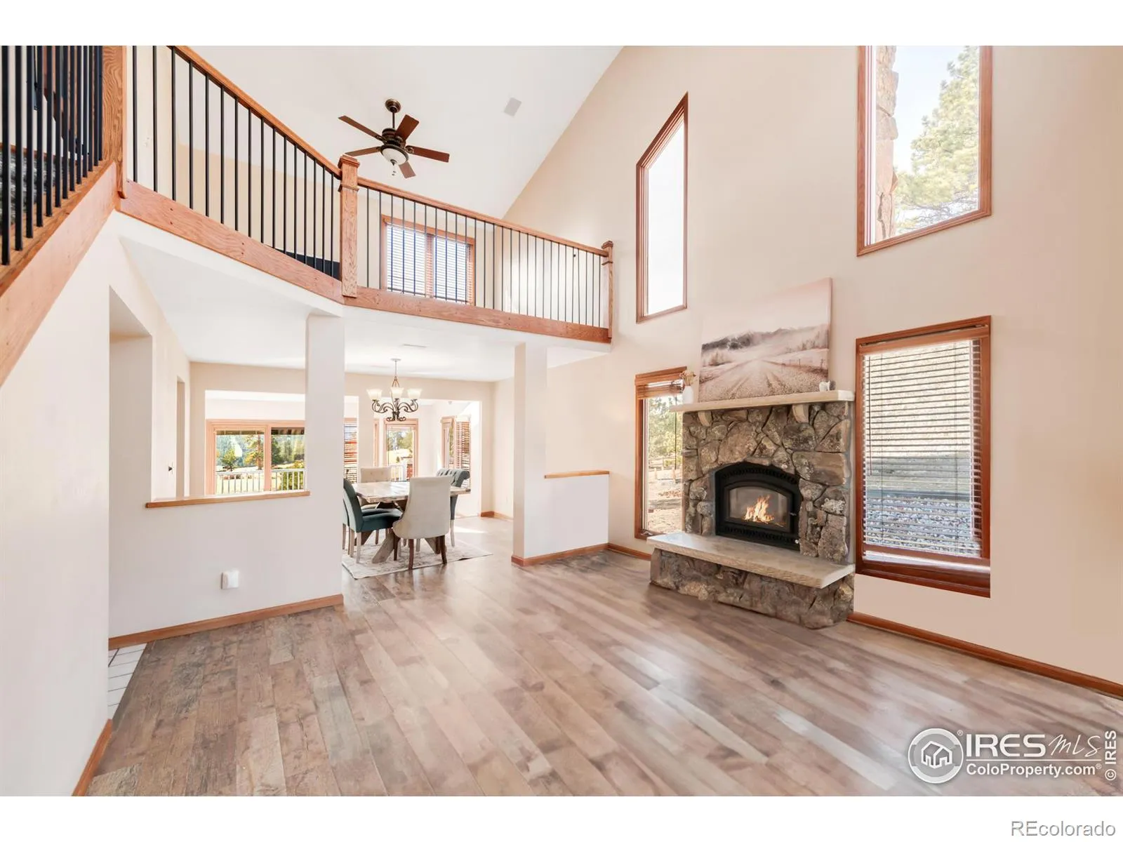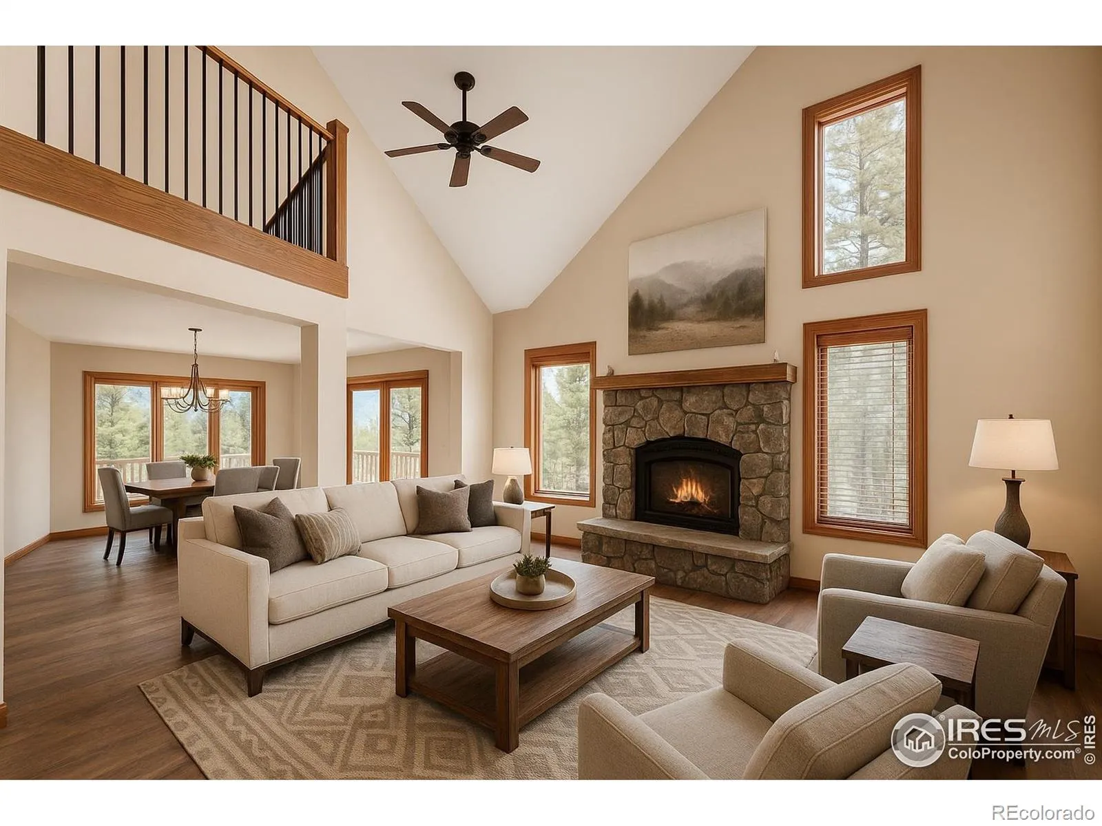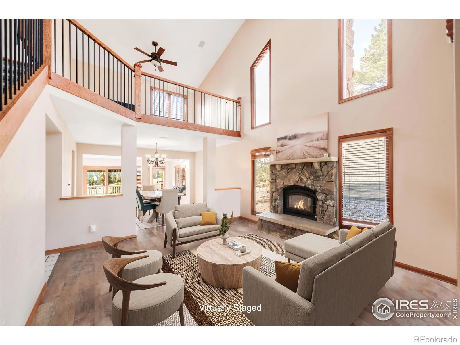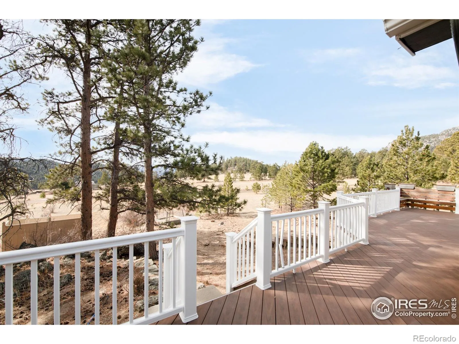 Positioned on over five breathtaking acres in prestigious Eagle Rock Ranches in Estes Park, this stunning home offers incredible views from every room. A beautifully renovated kitchen features upgraded stainless steel appliances, generous cabinetry and a center island. The great room impresses with two-story ceilings, a cozy fireplace and expansive windows showcasing the natural beauty outside. A versatile flex space with vaulted ceilings, skylights and outdoor access through sliding glass doors adds to the home’s airy feel. Upstairs, a loft provides the perfect home office setup. The primary suite is a true retreat with vaulted ceilings, a spa-like bath and a walk-in closet with built-ins. Ready for personalization, the walkout basement leads to a gorgeous patio prepped for a hot tub. Several large decks and patios offer endless opportunities to relax and soak in the surroundings. Just 5 minutes from downtown Estes Park, this home is ideal for both weekend getaways and full-time mountain living.