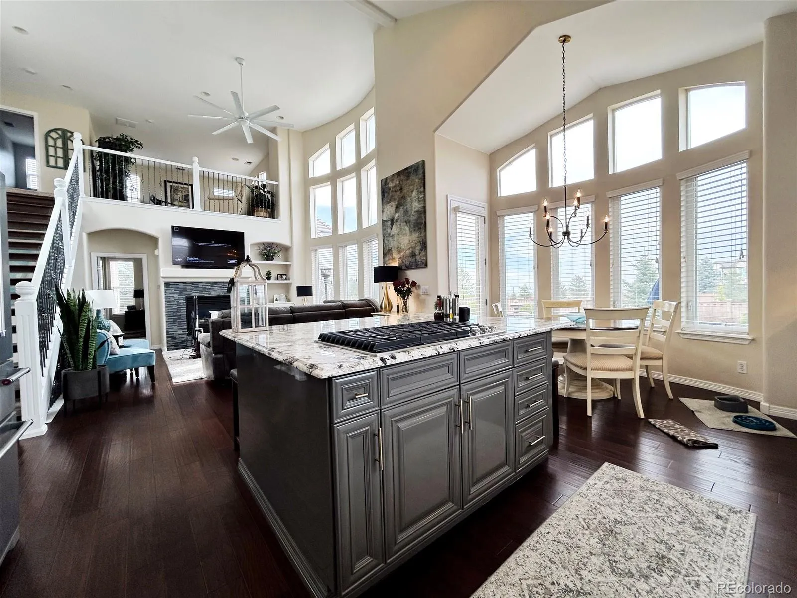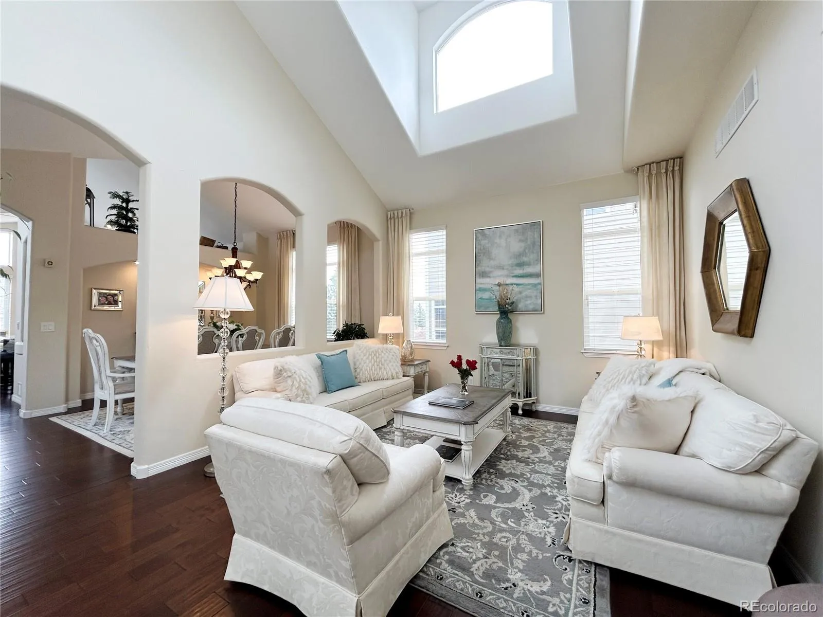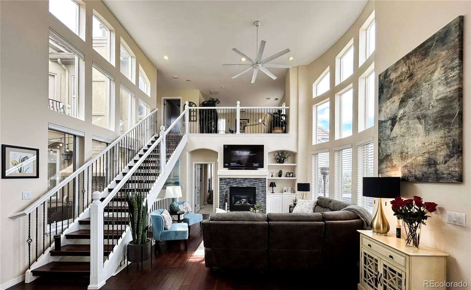 Marvel at this desirable, Executive home in Castle Pines North! Enter the foyer and be swept away by the most unique feature of this home – a European-inspired outdoor courtyard that’s open to the sky above! With two sets of French doors, 2-story windows, and a gas fireplace, you can create a courtyard oasis visible from most of the main level. Moving through the main level, you will find a large primary suite with double-sided fireplace and plenty of room for a California king-size bed, plus seating area. The en-suite bathroom has a large walk-in shower and big soaking tub, double-sink vanity, large walk-in closet, and separate water closet. Enjoy the rest of the open floorplan perfect for entertaining, where the vaulted family room flows into the luxury kitchen, complete with white granite countertops, high gloss cabinets, an oversized island, double ovens, and a bar nook with wine fridge. Two-story windows drench the living space with natural light. The formal dining room is suitable for a large table with easy access to the kitchen. A separate living room provides the perfect area for a sitting room or lounge setup with enough room for 2 love seats, oversized chairs, or large sofa. Tucked away in the corner of the main level is a private study. Also included, is an updated half bath with granite countertop. Moving upstairs, you will find two bedrooms with reach-in closets. Between the two bedrooms, sits an updated full bath with granite countertop, double-sink vanity, and a separate wet room. At the top of the stairs, overlooking the family room and kitchen, is a large loft providing flex space to use at your discretion. Attached to the home is an oversized 2-car garage and oversized single-car garage. Relax or play in the expansive backyard with professional landscaping, oversized concrete patio slabs, and hot tub! Programmable sprinkler system will help keep your grass green.
