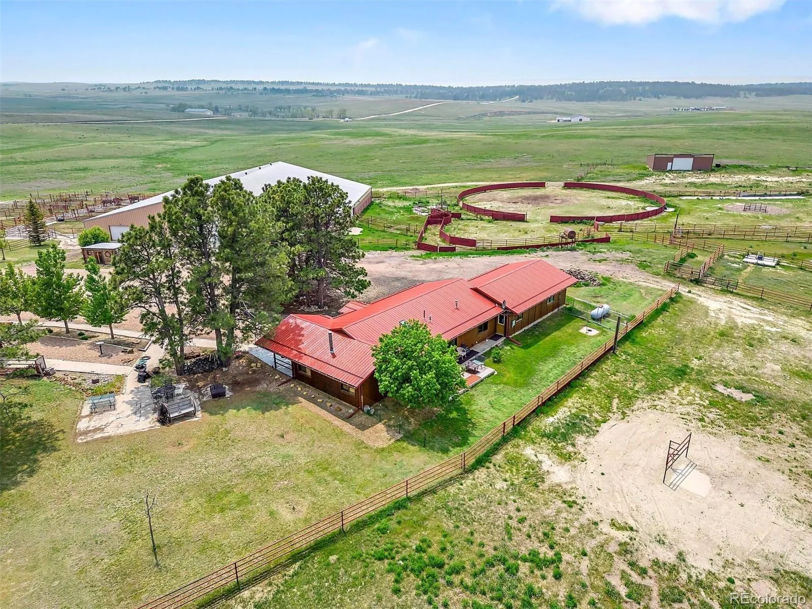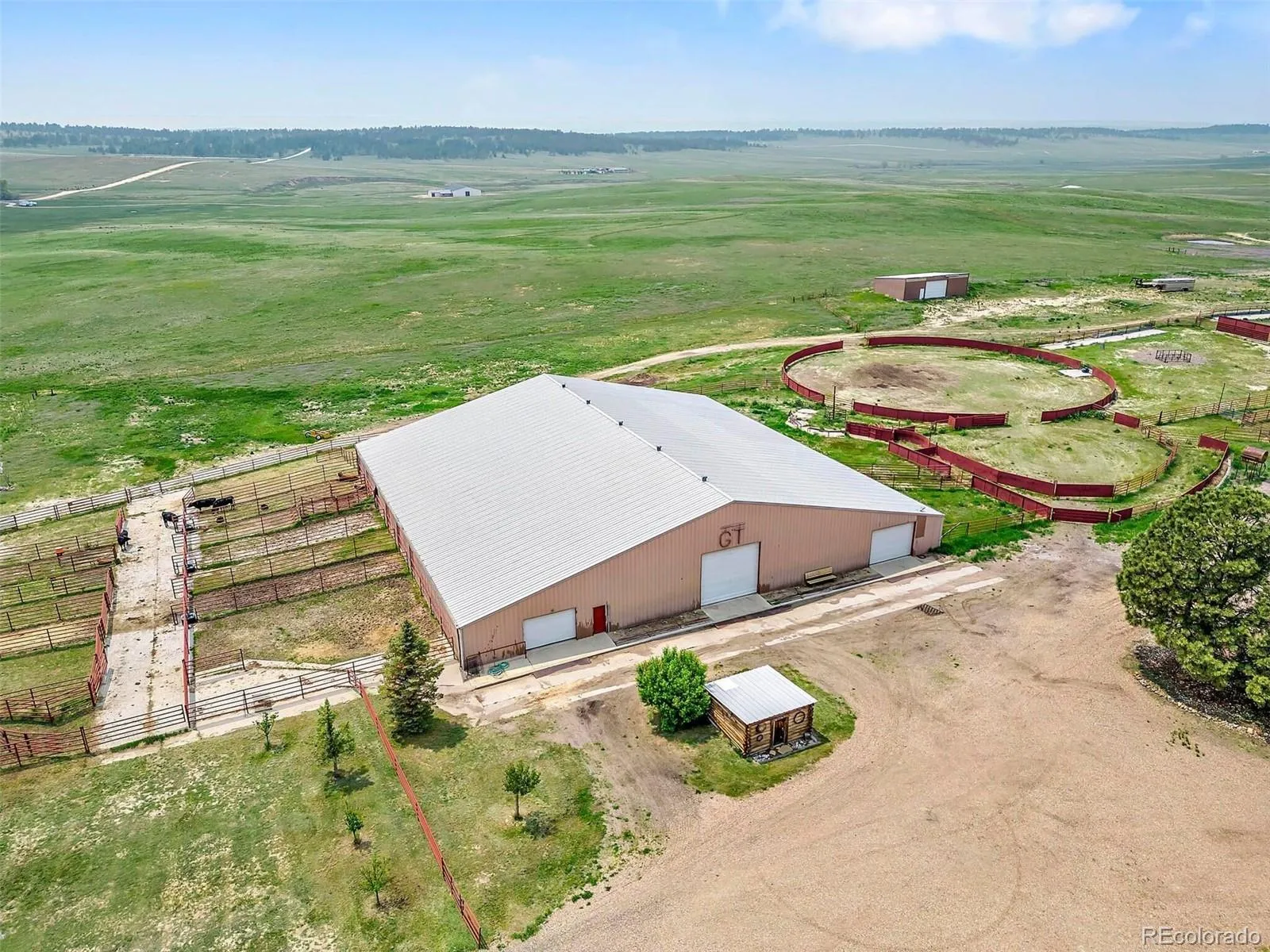This amazing equestrian estate features a custom show stable with attached 16,000 square foot indoor arena, eight horse stalls, stadium seating for 60-80 people, tack room and large shop. This immaculate horse complex is on 321.86 picturesque acres that includes three 100-acre pastures with water facilities. There are also three ponds sprinkled in the rolling hills with incredible views of the Rocky Mountain Front Range, including Pikes Peak; and eleven corrals with open alleys to the arena and a large round pen for horse training. All pens and corrals are made with pipe fencing, ideal for horses. The large 4500 sq. ft. log home is perfect for family gatherings or entertaining. While in the kitchen you can enjoy the view of the horses grazing in their paddocks. This ranch-style home features a generous living room with wood burning stove, three bedrooms, four baths, a huge home office, formal dining room, walk-out basement with family room, bar and plenty of storage. There is a second ranch-style home with 1,800 sq. ft., perfect for your ranch manager, guest or a sweet little rental. You can ride any time in your top-of-the-line show stable with attached indoor arena, or outside in the dry creek bed just steps away, also an ideal shooting range. Eight stalls line the aisles, which give flexibility to use facility for boarding, training, or private use. The heated shop means you can work on your equipment out of the weather. Whether you’re in the house, stable, or the paddocks, take in the views of the surrounding fields or distant mountains. Convenient drive to Kiowa, Elizabeth or Parker and only 1 hour to DIA. Significant Water Rights to the Denver, Arapahoe and Laramie Fox Hill aquifers are included and all water has been adjudicated. There is a total of 359.4 acre feet of water that will transfer with the property. The State Water Board Authority has determined that the annual production rate will last more than 100 years.