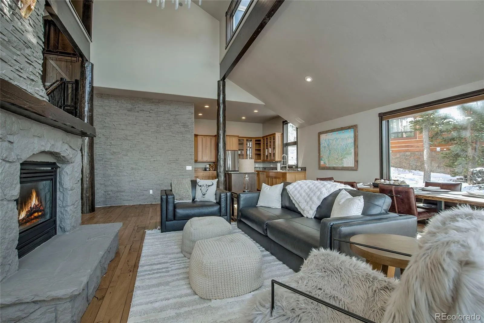 Incredible ski area views! This open floor plan offers huge vaulted ceilings, tremendous sun and an incredible deck with some of the best views Breckenridge has to offer. Recently remodeled! Features include 3 gas fireplaces, dry stack stone fireplace, upgraded lighting and much more. Just a short walk to the free Summit Stage bus stop. Partially furnished. A must see!
