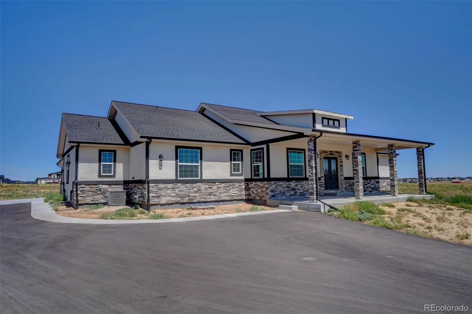 Price improvement! $10K concessions! Brand new home on 1.7 acres! This beautiful brand new ranch home is waiting for you! The new Country Club Ranchettes subdivision is a high end acreage community located just a few miles east of Brighton. This home features an open floor plan, with spacious Great room, kitchen, and dining area. The gourmet kitchen features quartz countertops & backsplash, and a beautiful oversized island. Stainless appliances, vent hood, double sinks and a huge walk-in pantry. The adjoining Great room offers a cozy electric fireplace featuring a full stone fireplace surround. The primary suite offers an exterior door to the back covered patio, and is connected to a large primary bathroom, featuring an oversized vanity, oversized shower, and a finished walk-in closet. The bedrooms are split to enhance privacy, with the primary bedroom separate from the two secondary bedrooms on opposite sides of the home. The office is located at the front of the house and doubles as a 4th bedroom. Country Club Ranchettes does not have an HOA, but does have reasonable covenants and design guidelines to enhance the beauty of the community. Bring your animals! 2 horses, 2 goats and chickens are allowed. RV parking and commercial work truck parking is allowed. Outbuildings are allowed, refer to the covenants for allowable size etc. Water is provided by Great Rock Water tap. Natural gas supplier is Xcel (no propane), and wired internet is available with Comcast. Need to sell your house first? Seller may be interested in doing a trade! Seller is offering $10,000 concessions with an approved offer.