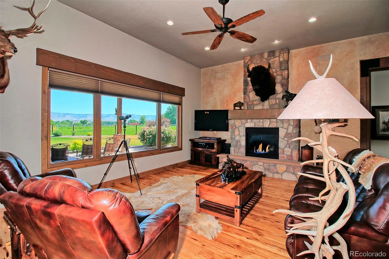 This custom built rancher on 16 acres provides a panoramic 360′ views of the Monument, Bookcliffs and the Grand Mesa. This home offers a western flair with hickory flooring, beautiful exposed beams, stone fireplace, 8′ alder doors, alder trim, and 12′ and 10′ ceilings throughout. No detail has been overlooked, from the 6 burner gas stove to the oversized windows framing amazing views. The home features custom alder cabinetry by Osburne, granite countertops, surround sound, custom made range hood & island light. Enjoy incredible sunrises and sunsets from your covered patios front and back. The property features a 1240 SF attached garage, a 2112 SF RV garage/shop there is unlimited storage and 40 X 100 metal building. The entire property is pipe fenced and irrigated. Ideal as a horse property or a private retreat! All information subject to change/error; buyer(s) to verify.