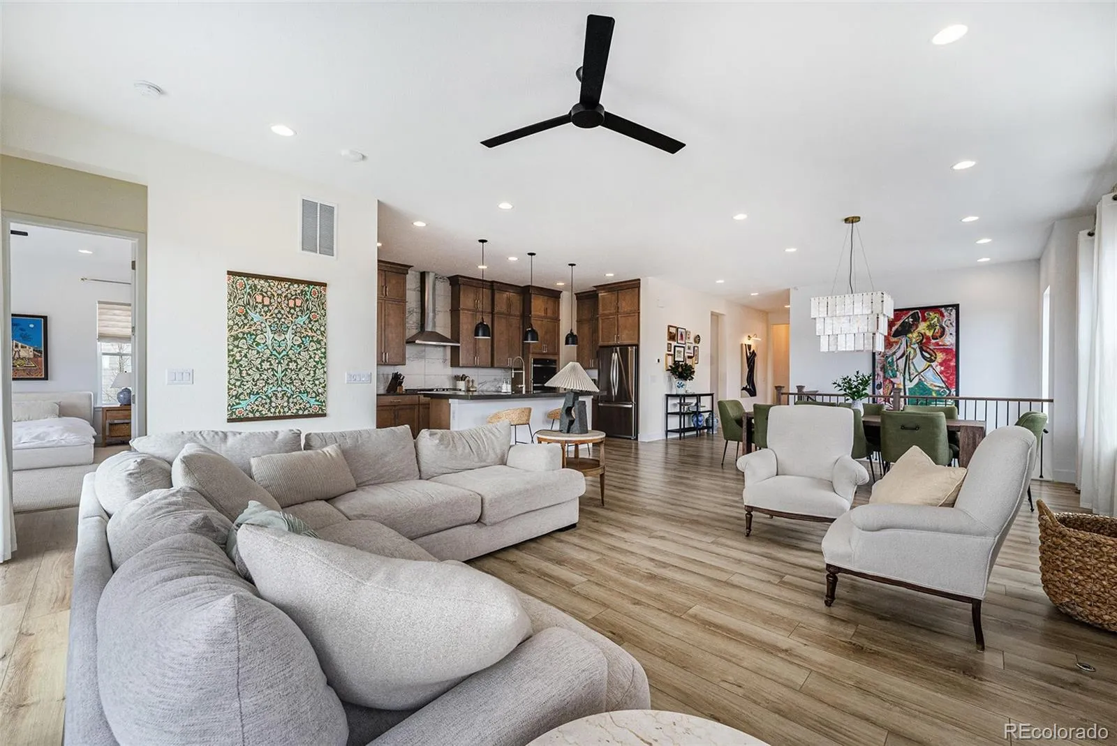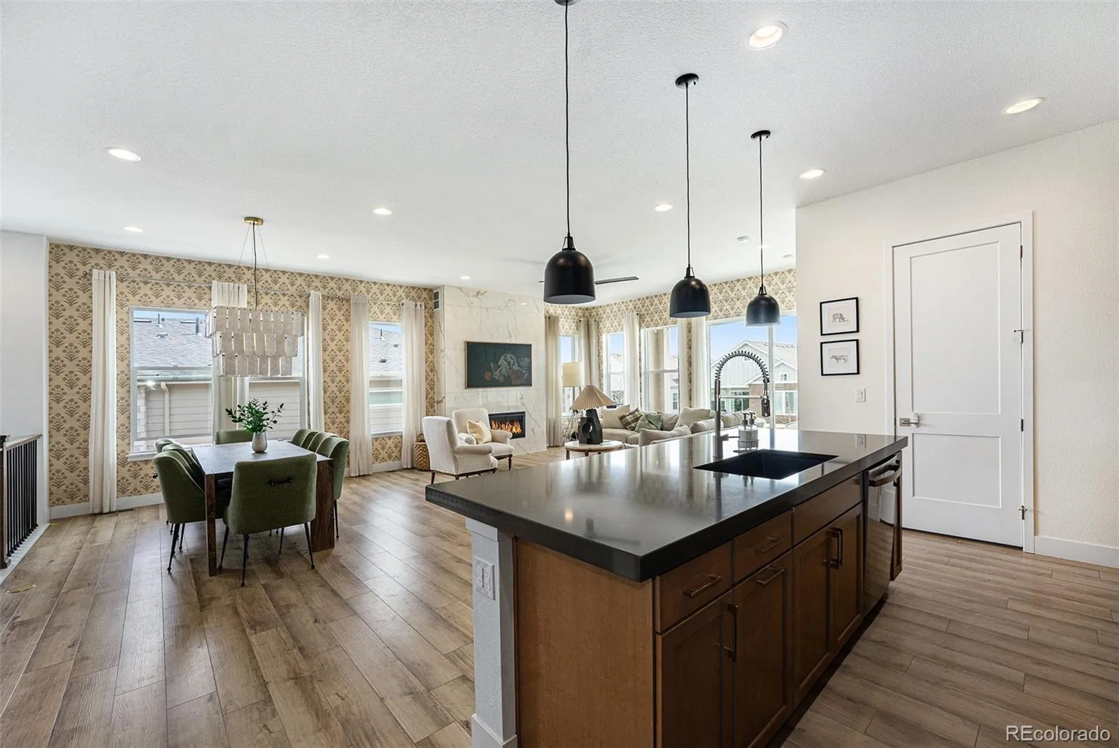 $20,000 Incentive for 2/1 Interest Rate Buy Down or Closing Costs! Stunning Almost-New Ranch in The Canyons, Castle Pines! Discover luxury and convenience in this breathtaking, nearly new ranch-style home in the prestigious Canyons community of Castle Pines. This spacious 3-bedroom, 4-bathroom masterpiece boasts a main floor primary suite and captivating mountain views from the front. Designed for modern living, the open floor plan features soaring ceilings, designer paint, and gorgeous luxury vinyl plank flooring throughout. Step into the expansive great room, highlighted by a sleek linear gas fireplace and designer Holland & Sherry wallpaper. The gourmet kitchen is a chef’s dream, equipped with a gas cooktop, quartz countertops, upgraded cabinetry, stainless steel appliances, and a large island with a breakfast bar. Adjacent, the spacious dining/morning room is perfect for gatherings. Retreat to the luxurious primary suite, complete with an upgraded bath featuring a step-in shower and a generous walk-in closet. Two additional bedrooms offer private full and 3/4 baths, ensuring comfort for all. A versatile office/den/reading room, main floor laundry with sink, and a practical mud room add functionality. Outside, enjoy a large patio and a maintenance-free yard, ideal for relaxing or entertaining in the great outdoor living area. Energy-efficient with a high-efficiency furnace, this home is move-in ready. Perfectly located just minutes from Park Meadows Mall, Denver Tech Center (DTC), Light Rail, SkyRidge Medical Center, Charles Schwab Campus, and factory outlets, with walkable access to parks, trails, pool, Exchange Coffee House, The Canyon House, and exceptional community amenities in The Canyons. Don’t miss this rare opportunity to own a slice of Castle Pines luxury!