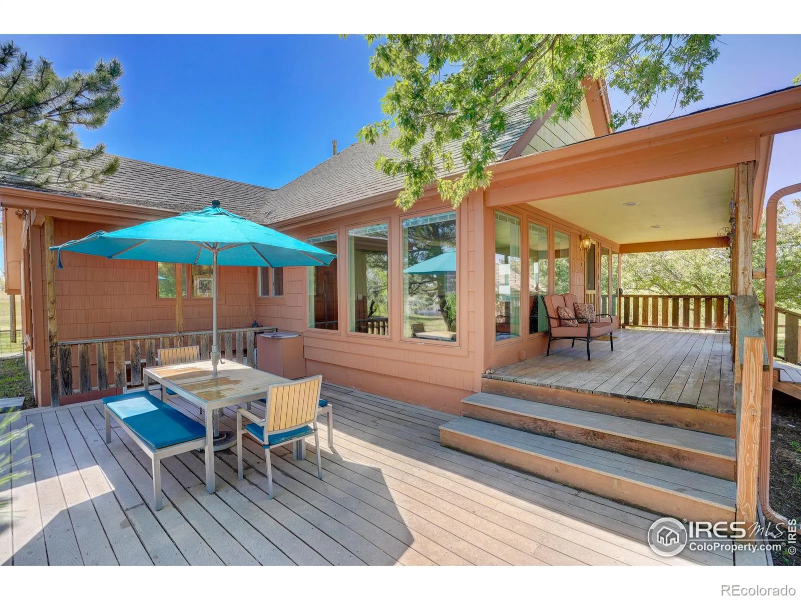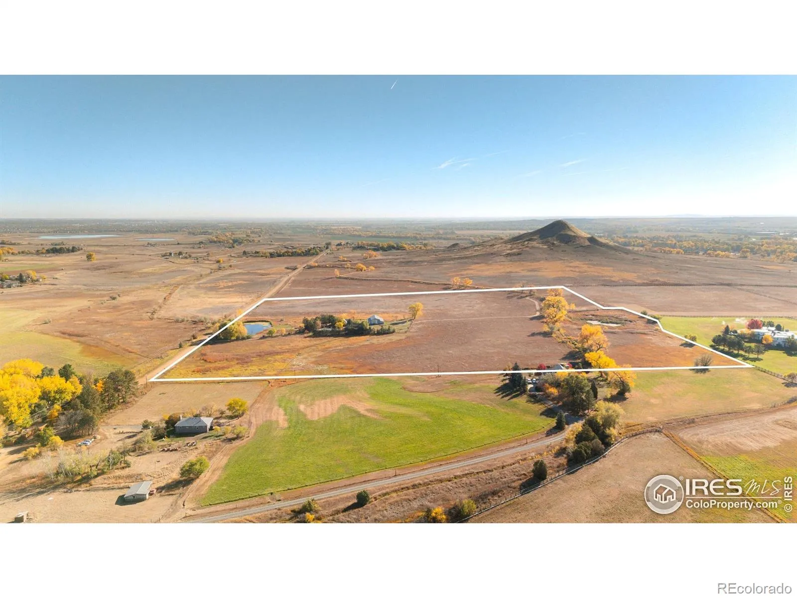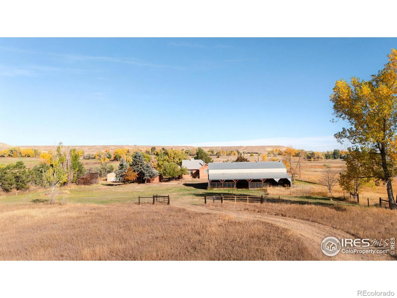 Escape from it all on this peaceful 38-acre Boulder County property featuring a 4-bed, three-bath home, incredible views, lush scenery, a spring-fed pond, 30 shares of Left Hand Ditch, and a bounty of outbuildings ready to accommodate any use or interest. Located just 20 minutes from Longmont amenities and Boulder attractions, this is the perfect farm getaway. The sunny residence welcomes relaxing living and large-scale entertaining with kitchens and living areas on both levels. On the main floor, an inviting covered porch opens to a spacious open living and dining room wrapped in oversized windows to take full advantage of the impressive views. Enjoy a large kitchen with abundant wood cabinetry, a breakfast bar, stainless steel appliances, and an adjacent bonus area for a breakfast room or home office. Head to the primary suite to discover a king-size bedroom, huge sitting or dressing room, walk-in closet, and an en suite bathroom with a soaking tub. Below, you’ll find a family room, dining area, kitchen, and a full bathroom. With a separate entrance and two more rooms, this level is ideal for guests or multigenerational living. Across the 38-acre ranch, mature trees and rolling lawns lead to multiple convenient outbuildings, including a convenient summer guest house and a massive barn equipped with a bedroom, a home gym, and three large stalls with paddock access. A third rustic outbuilding is great for storage, while two large ponds – one spring-fed, one for irrigation – add to the bucolic scenery. Raise chickens in the coop, plant flowers and vegetables in fenced gardens, and enjoy plenty of room to roam in this idyllic retreat featuring no conservation easement and 30 shares of Left Hand Ditch rights. This idyllic Boulder County location is zoned for top-rated St. Vrain Valley schools, including Blue Mountain Elementary, Altona Middle and Silver Creek High. Enjoy easy access to vast Open Space & trails just minutes from Longmont and Boulder.