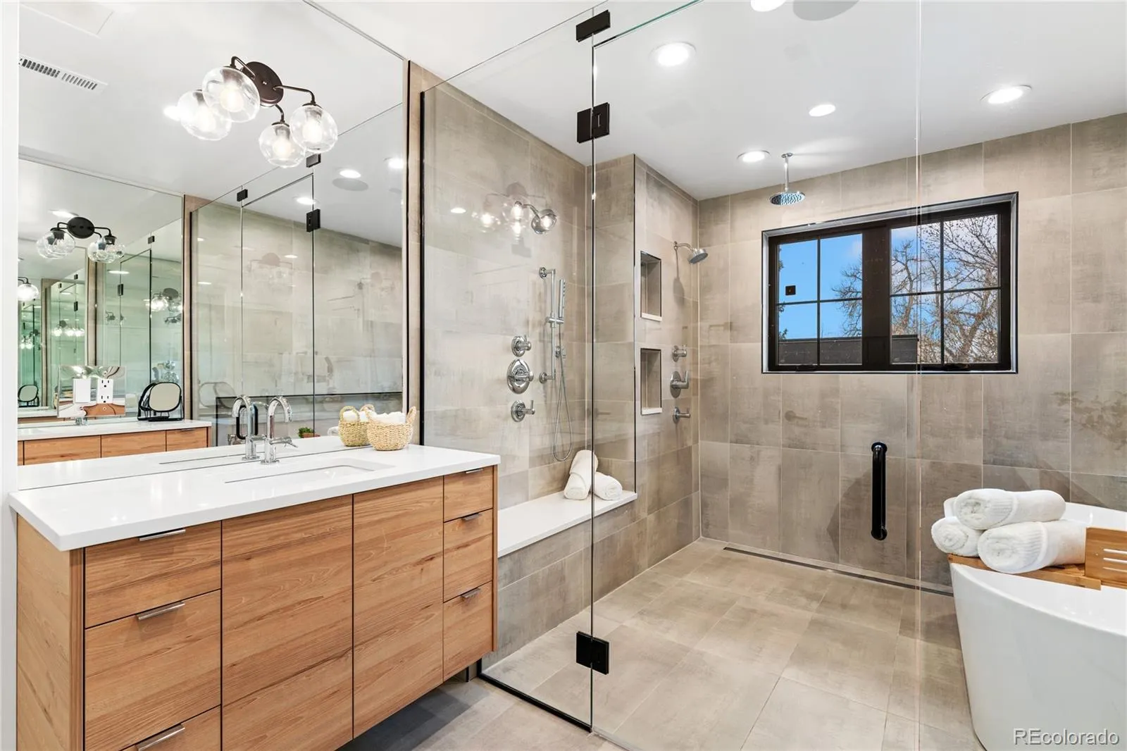 Welcome to your dream home in the heart of the highly sought-after Cory-Merrill neighborhood. A remodel of the lower level and new construction on the main and upper levels were completed in 2022, perfectly balancing modern elegance with warm, natural finishes, offering 5 spacious bedrooms,4 full baths, and 2 half baths across a thoughtfully designed floorplan. Step into a light-filled interior where soaring ceilings, wide-plank hardwood floors, and sleek black-framed windows set the tone for contemporary sophistication. The kitchen is a true showstopper, featuring custom flat-panel oak cabinetry, high-end stainless appliances, and an expansive waterfall-edge island with bar seating, making it perfect for both casual mornings and entertaining on a grand scale. The spa-like primary bathroom is your private retreat, complete with a freestanding soaking tub, frameless glass shower, and dual floating vanities set against soft, earthy tile tones. Every detail is curated for style and comfort. A dedicated home office with direct outdoor access offers the perfect work-from-home setup, combining productivity with serene views and natural light. The home also features a separate 1-bedroom, 1.5-bathroom space downstairs, once conserved as in-laws quarters, now generating rental income with private access. Enjoy stunning mountain views from both the back porch and the roof deck, perfect for relaxation or entertaining guests. The rooftop covered patio, provides an ideal spot for enjoying the outdoors. In addition, there’s a detached 2-car garage with a large loft, providing plenty of storage, and an outdoor shed for even more storage space. Located just minutes from Wash Park, top-rated schools, and the charm of Old South Gaylord and Bonnie Brae, this home places you in one of Denver’s most desirable communities. Appraisal in hand!