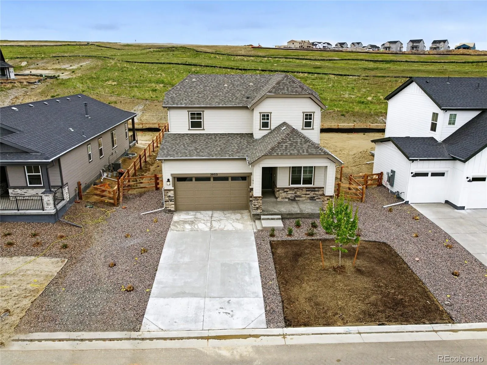 New Construction – Ready Now! Built by America’s Most Trusted Homebuilder. Welcome to the Estes at 39713 Penn Road in Independence. This versatile home features an open great room, dining area, and kitchen with a stylish island perfect for casual gatherings. A flexible main-floor space works well as a home office or hobby area, complemented by a convenient half bath. Upstairs, the generous primary suite includes a private bath, alongside three additional bedrooms. The unfinished basement offers plenty of potential for future living space. Located in Independence, enjoy rolling hills, protected open spaces, and new community amenities just 10 miles from Downtown Parker and Highway 83. Additional highlights include: covered concrete patio, extra upstairs bedroom, basement railing, and rough-in plumbing. MLS#4167182