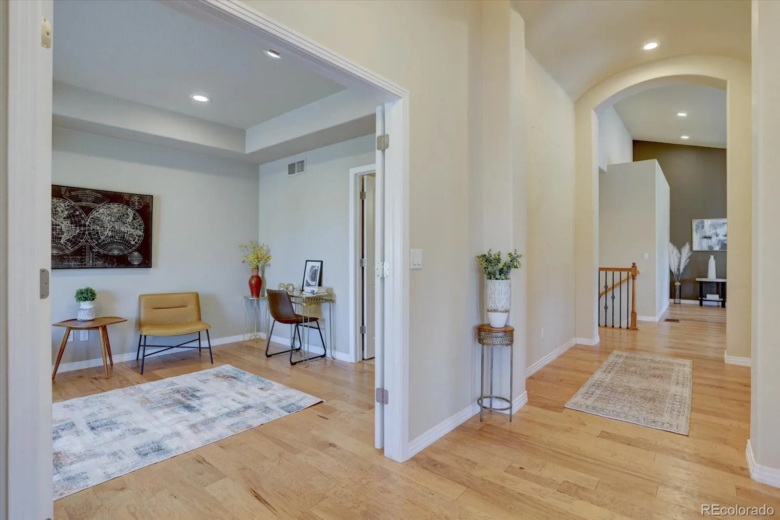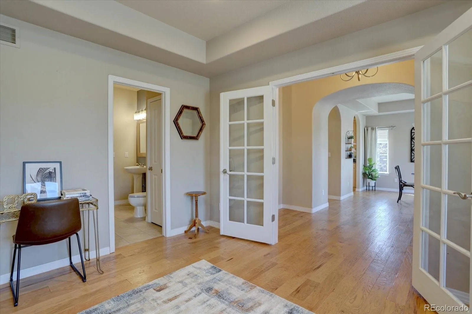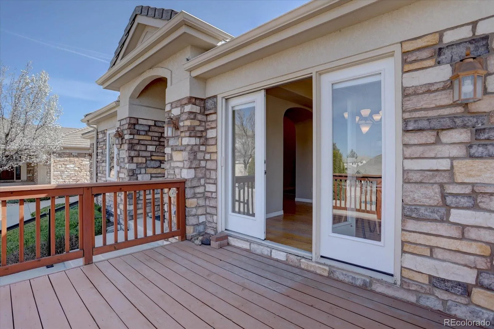 This fabulous town home is situated in an exclusive, gated community and has a plethora of features. Walk in to a spacious entry featuring an office and formal dining area opening to a balcony via French doors. The kitchen boasts a gas range, newer stainless appliances, and in-wall, double oven. A vaulted ceiling and large gas fireplace is the stunning vocal point of the family room, creating an open but delineated floor plan. The spacious primary bedroom is adjoined with a 5 piece bathroom and double closets. The finished basement allows for entertaining or recreational actives with a work out room, bonus room and two additional bedrooms. You will appreciate the two car attached garage, proximity to the community pool, and mailboxes. Shopping, dining and easy access to Cherry Creek State Park is just a stones throw away. This well maintained property has only one shared wall and everything you need to enjoy a Maintence free, Colorado lifestyle!