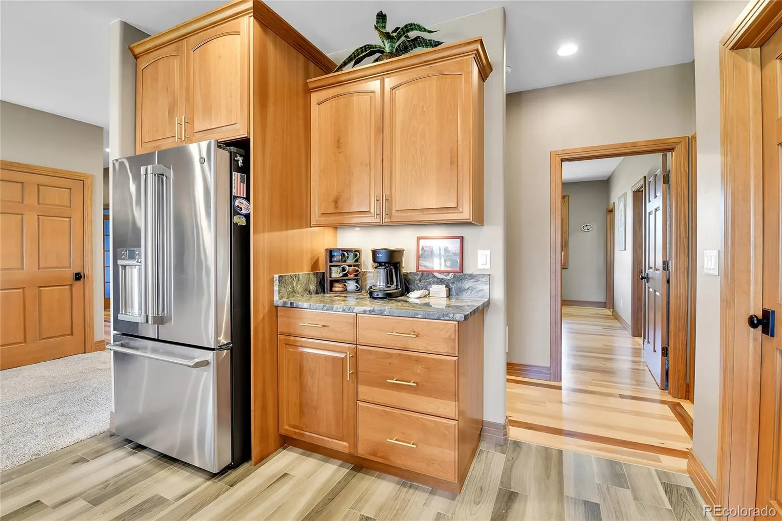 Six feet by 64′ wraparound covered front porch enters to a large foyer with tall 9 foot ceilings over Hickory hardwoods with walnut accents.