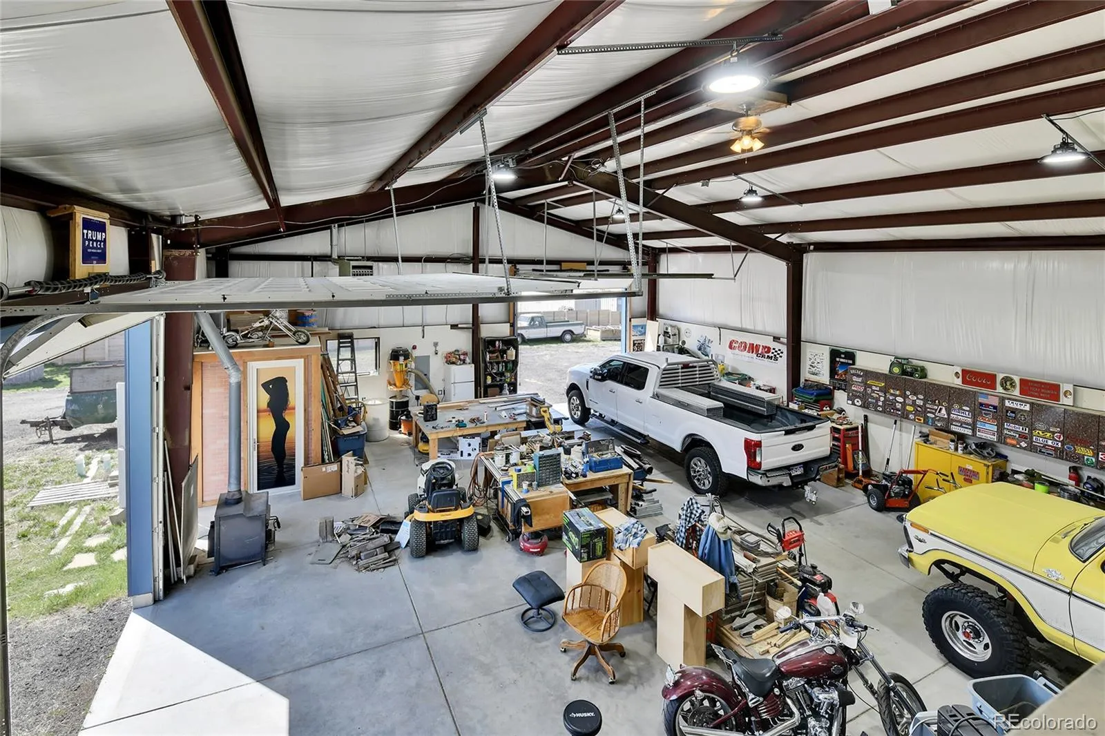 The shop has 2400 square feet of space with two 12′ x 12′ doors and a half bath! Plenty of room for your toys!