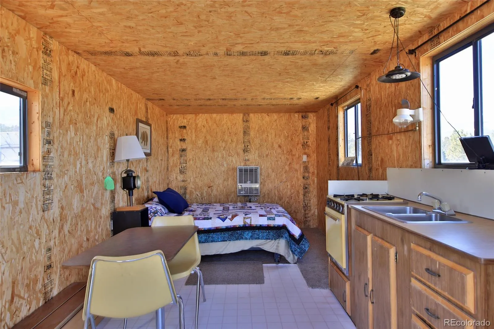 Wood stove, wall propane heat, instant hot water heater, concrete/ carpet flooring, recessed lighting, and ceiling fans create efficiency and ease in a country lifestyle.
