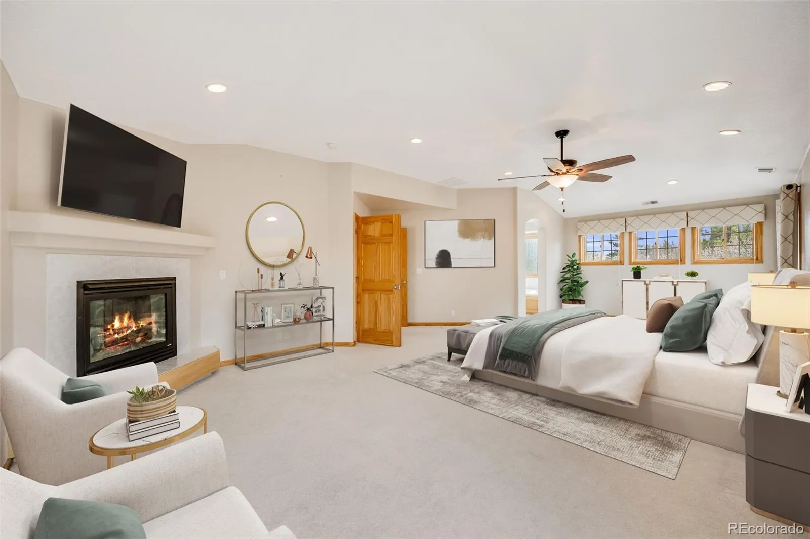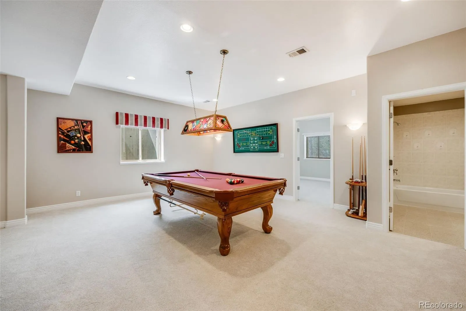 Perched on nearly an acre with breathtaking views, this exceptional 5-bedroom, 5-bath custom home in Castle Rock combines luxury, privacy, and convenience. The interior features a spacious family room and dining area, while the upgraded kitchen is a chef’s dream with stainless steel appliances, custom cabinetry with soft-close drawers, a gas cooktop, double ovens, a walk-in pantry, an oversized slab granite island, and freshly refinished hardwood floors. The family room boasts a wet bar ideal for entertaining, and a private office with custom French doors offers versatility. Modern amenities include dual water heaters, dual AC units, a whole-house fan, a wireless alarm system with Blink cameras, two built-in safes, and a central vacuum system. Upstairs, the primary suite is a serene retreat with a spa-like bathroom and a generous walk-in closet. Two additional bedrooms each feature en-suite bathrooms with slab granite counters and access to a shared walk-around deck. A spacious loft with a second wet bar adds flexible living space, complemented by three gas-log fireplaces throughout the home. The professionally finished basement offers high ceilings, a game area, two bedrooms (or one can serve as an office), a full bath, and a pool table (included). Car enthusiasts will appreciate the 5-car garage with two oversized doors and Wi-Fi-enabled openers, plus additional driveway parking. Outside, enjoy a fully fenced backyard with a pond-less waterfall, gas fire pit, gas grill hookup, and a newer hot tub (included). Relax on the oversized covered patio with DEK Drain system, stamped concrete walkways, and lush landscaping. Located on a picturesque street and priced below appraised value, this home presents an outstanding opportunity to embrace the ultimate Colorado lifestyle.