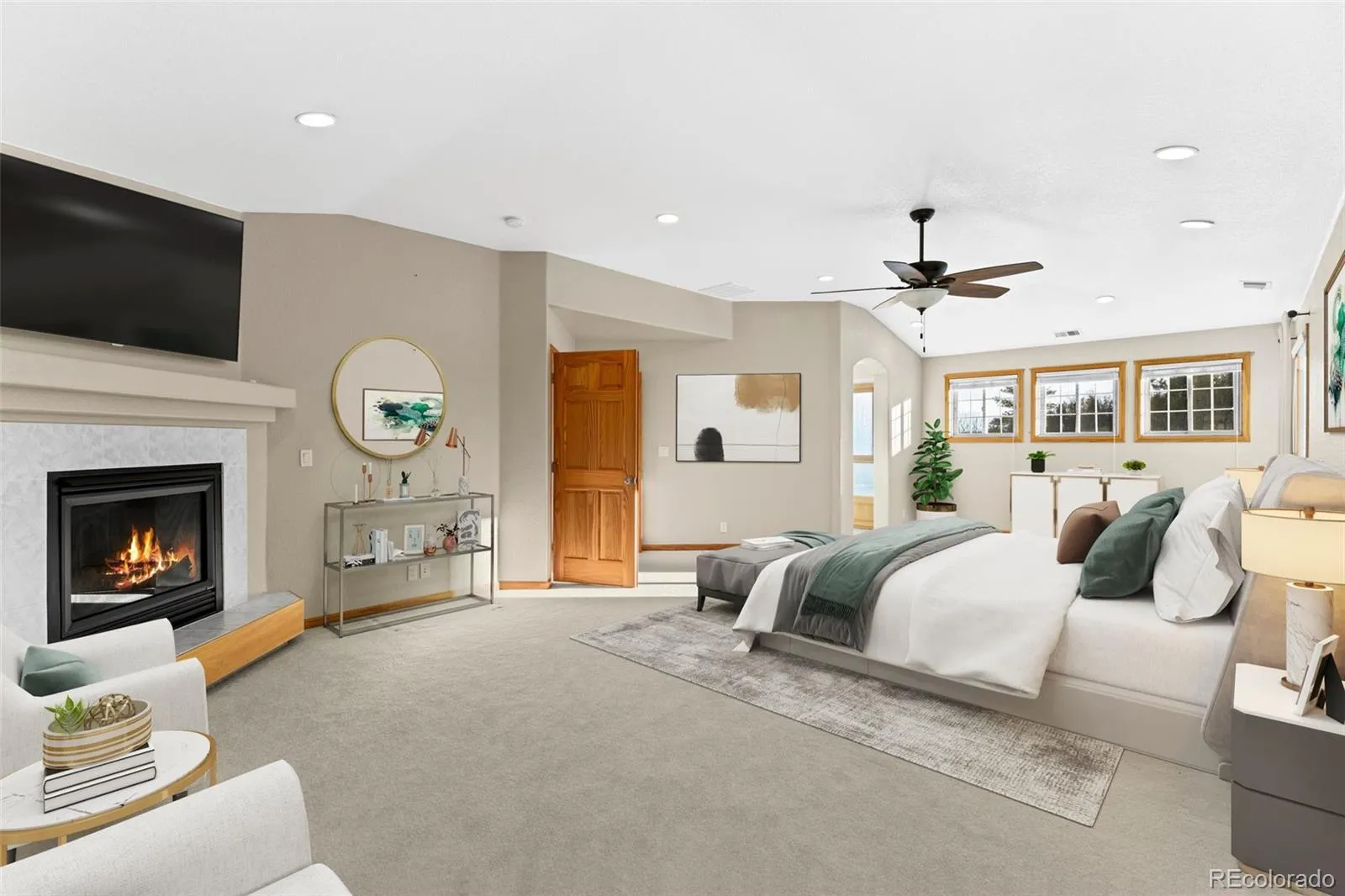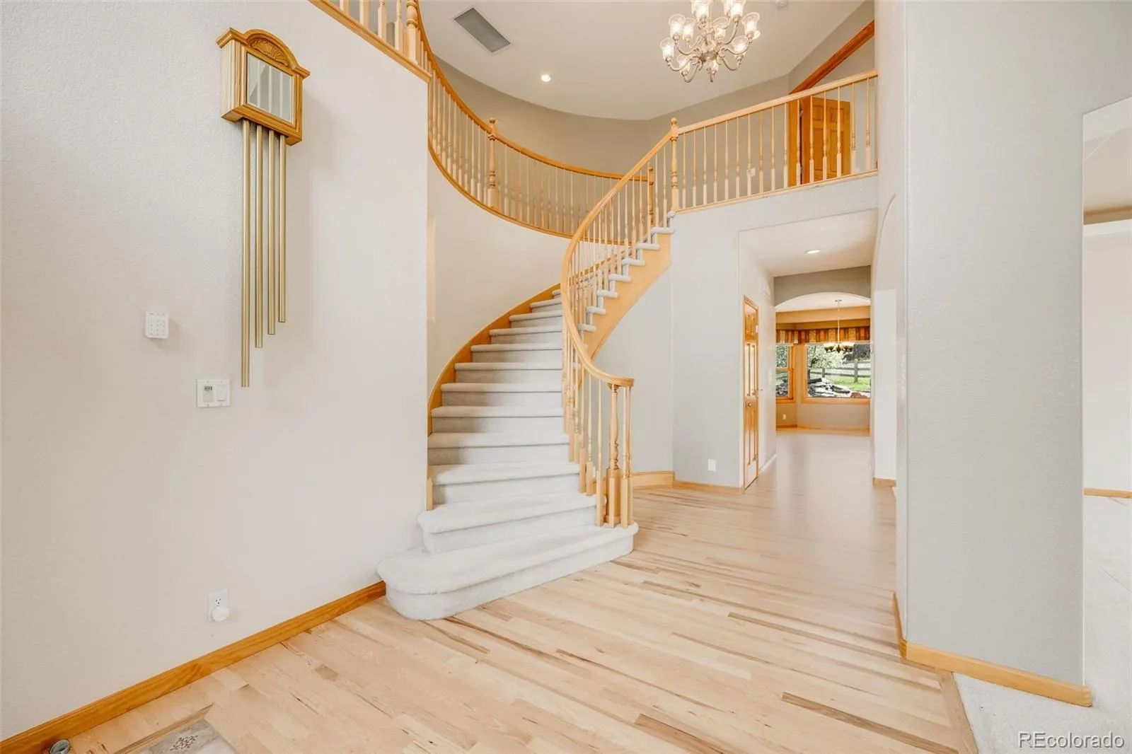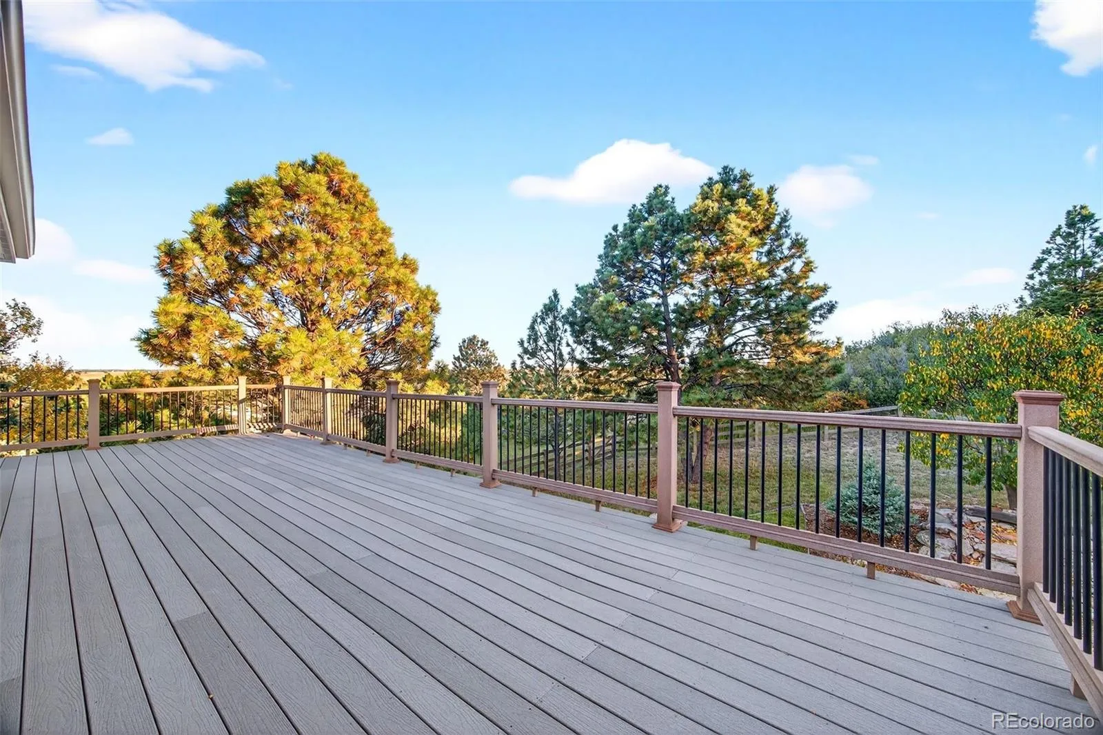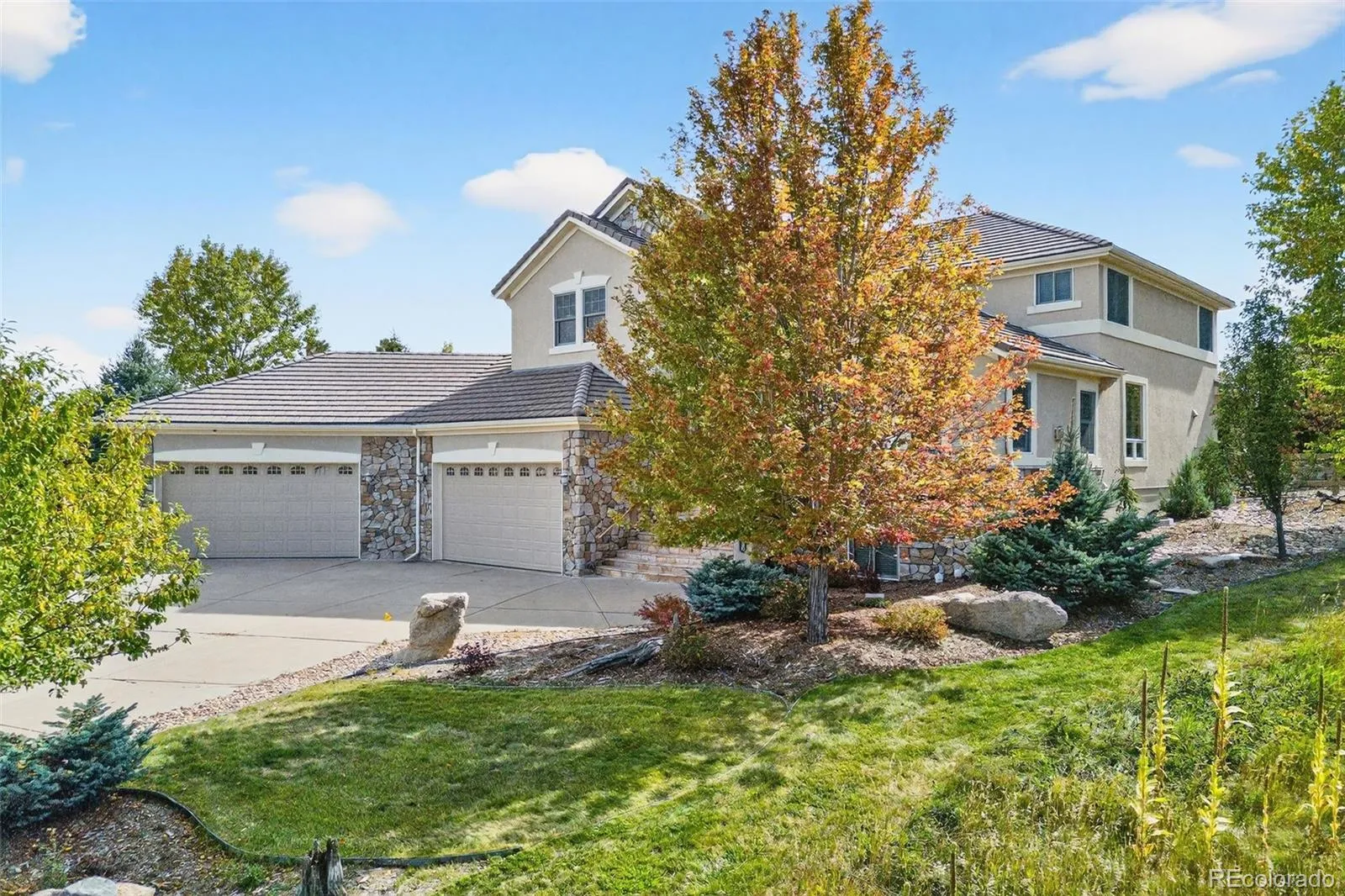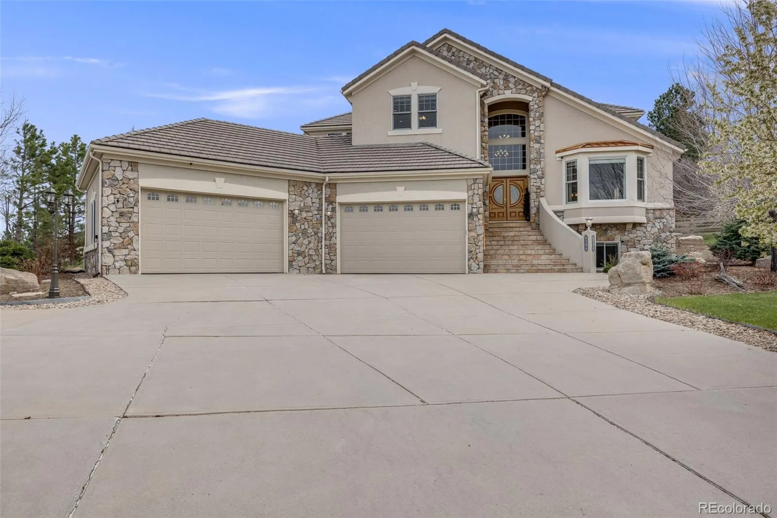 Perched on nearly an acre with breathtaking views, this exceptional 5-bedroom, 5-bath custom home in Castle Rock combines luxury, privacy, and convenience. The interior features a spacious family room and dining area, while the upgraded kitchen is a chef’s dream with stainless steel appliances, custom cabinetry with soft-close drawers, a gas cooktop, double ovens, a walk-in pantry, an oversized slab granite island, and freshly refinished hardwood floors. The family room boasts a wet bar ideal for entertaining, and a private office with custom French doors offers versatility. Modern amenities include dual water heaters, dual AC units, a whole-house fan, a wireless alarm system with Blink cameras, two built-in safes, and a central vacuum system. Upstairs, the primary suite is a serene retreat with a spa-like bathroom and a generous walk-in closet. Two additional bedrooms each feature en-suite bathrooms with slab granite counters and access to a shared walk-around deck. A spacious loft with a second wet bar adds flexible living space, complemented by three gas-log fireplaces throughout the home. The professionally finished basement offers high ceilings, a game area, two bedrooms (or one can serve as an office), a full bath, and a pool table (included). Car enthusiasts will appreciate the 5-car garage with two oversized doors and Wi-Fi-enabled openers, plus additional driveway parking. Outside, enjoy a fully fenced backyard with a pond-less waterfall, gas fire pit, gas grill hookup, and a newer hot tub (included). Relax on the oversized covered patio with DEK Drain system, stamped concrete walkways, and lush landscaping. Located on a picturesque street and priced below appraised value, this home presents an outstanding opportunity to embrace the ultimate Colorado lifestyle.
