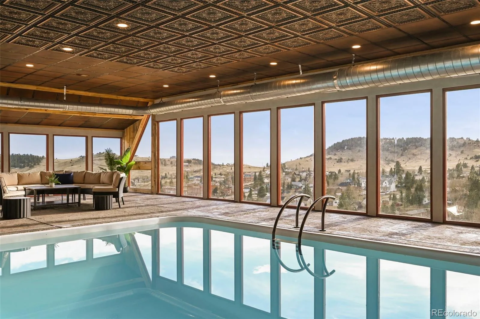 Welcome to “Lady Luck,” a thriving, fully-furnished short-term rental perched atop historic Cripple Creek. This one-of-a-kind estate is not only rich in 125+ years of character and history—it’s also a turn-key investment opportunity with a proven track record, permitted for short-term rental use with the City of Cripple Creek and boasting consistent 5-star reviews. Every inch of this six-bedroom, six-bathroom home has been thoughtfully designed to combine timeless charm with modern-day luxury. The seamless layout welcomes guests with a sun-filled living room, cozy fireplace, and panoramic southern views. The chef’s kitchen is a standout, equipped with an 8-burner range, custom wood hood, wine cooler, oversized island, and exposed beams—all opening into a spacious dining area with French doors leading to a 1,700+ sq ft deck and breathtaking Sangre de Cristo views. Each bedroom offers either an ensuite or shared bath, with unique touches like fireplaces, walk-in closets, balconies, or stained glass. Downstairs, you’ll find a game room, laundry, and additional bedrooms—making hosting a breeze. The crown jewel? A private, heated indoor pool with bronze ceiling tiles, walls of windows to the west and jaw-dropping mountain views. Whether you’re seeking a luxurious full-time residence, a weekend escape, or a turn-key income generator, this home delivers. Offered fully furnished and listed below appraised value, “Lady Luck” is your golden opportunity to own a historic, high-performing gem in the heart of Cripple Creek.