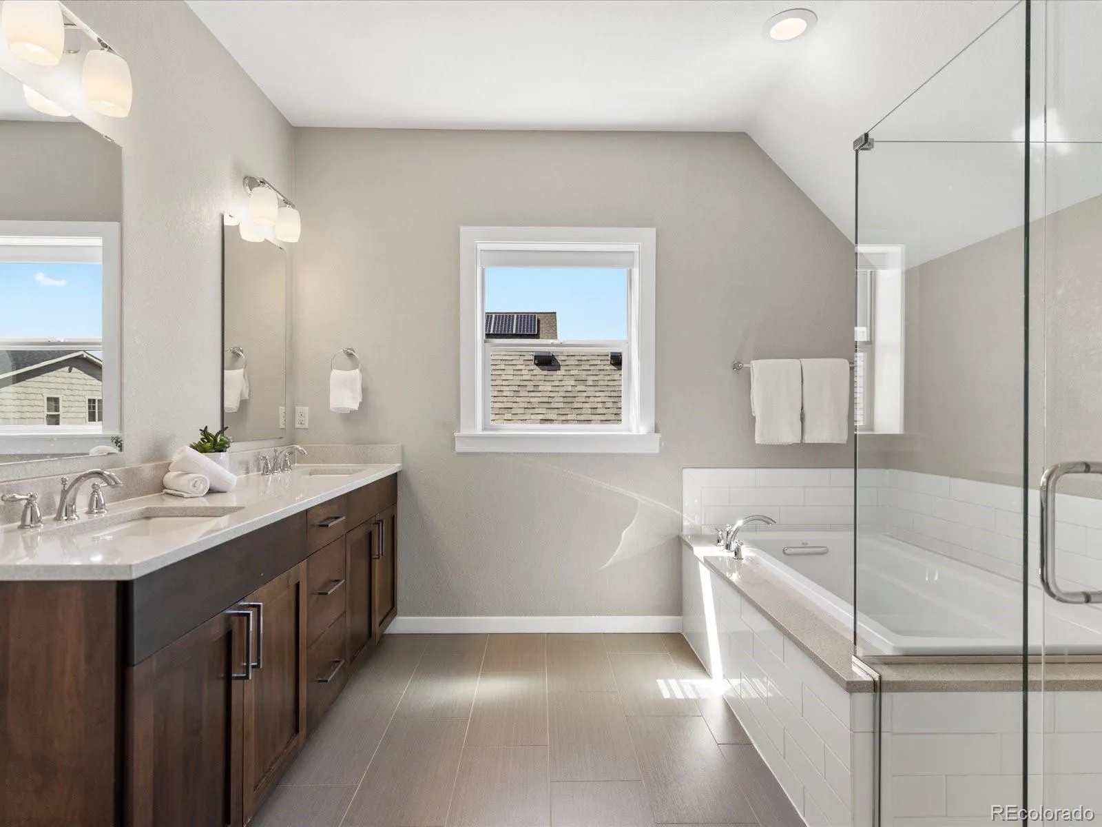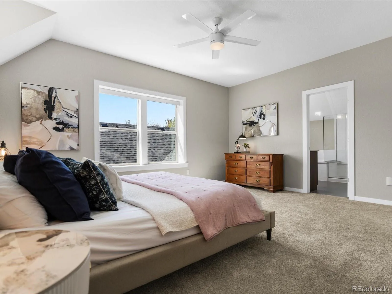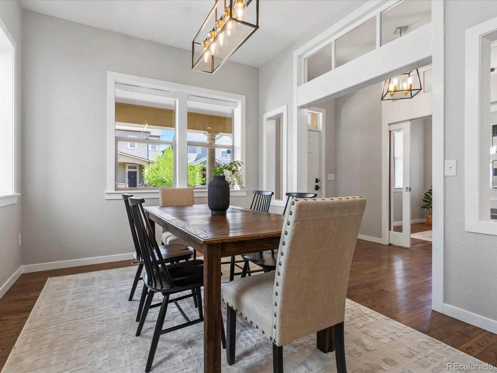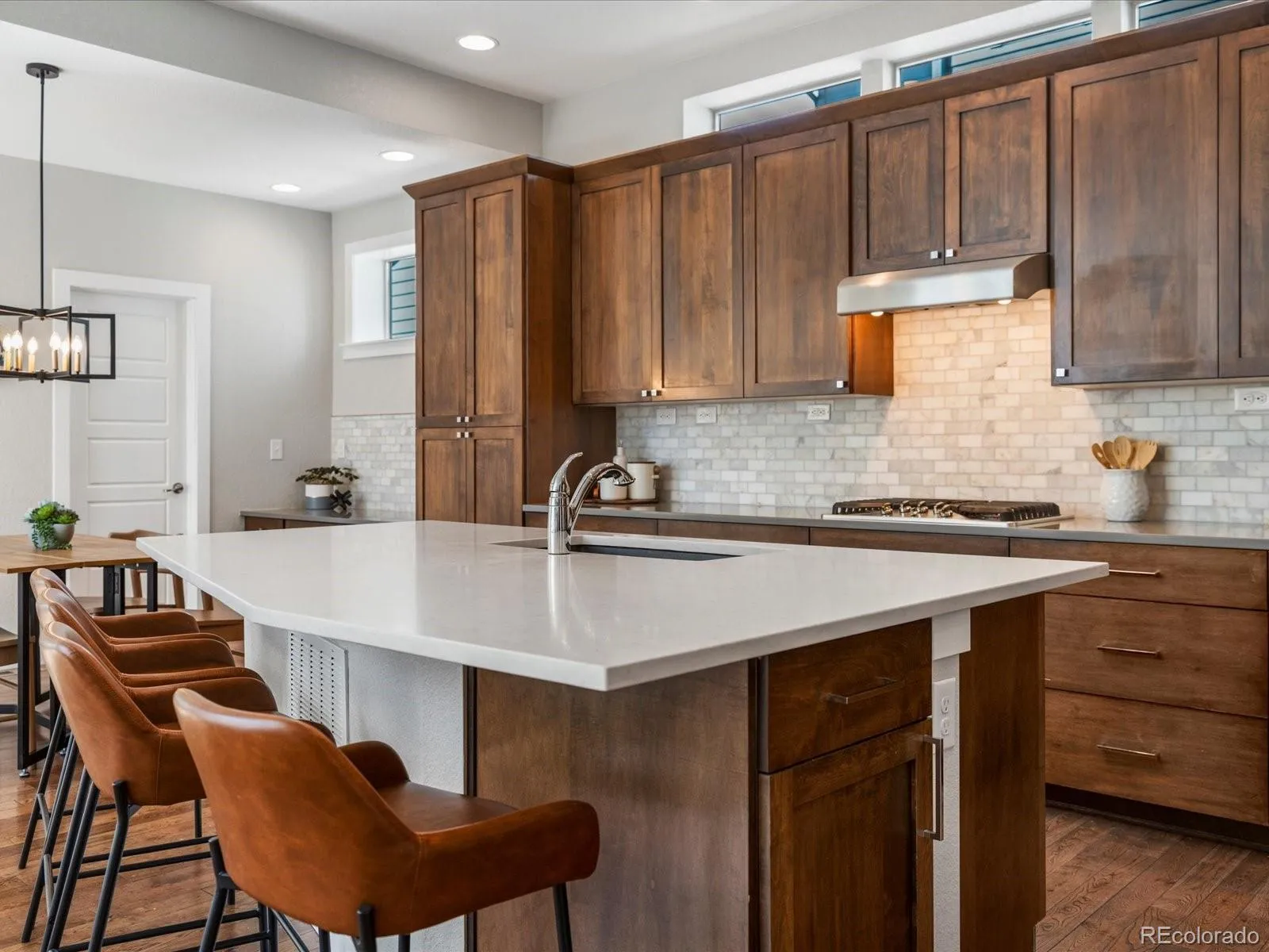 Discover refined living in this meticulously maintained 4 bedroom, 3.5 bath home, perfectly positioned just a couple blocks from the enchanting Quilted Garden Park in Central Park’s desirable Willow Park East neighborhood. Thoughtfully updated with fresh paint, plush new carpet, and chic lighting throughout, this lovely home blends style and comfort at every turn. Step inside to the spacious entry, host to a sun-drenched dedicated office and an elegant formal dining room. The butler’s pantry leads to a chef-inspired kitchen, showcasing a generous quartz-topped island, modern backsplash, gas cooktop with hood, abundant cabinetry, and a spacious pantry. A cozy breakfast nook, complete with built-in desk, is perfect for casual meals or morning coffee. Venture outside to the extended patio oasis, where a built-in fire pit invites you to bask in Colorado’s sunshine or enjoy magical evenings under the stars. The inviting living room exudes warmth, anchored by a beautiful fireplace with marble surround and floating mantle, and flows seamlessly into the open layout. A convenient mudroom off the oversized 2.5-car garage and a stylish powder room complete the main floor. Ascend upstairs to an expansive primary suite, featuring a luxurious en-suite bath with double quartz vanity, soaking tub, frameless glass shower, and a walk-in closet. Two additional bright bedrooms, a full bath, and a laundry room ensure space and convenience for all. The fully finished basement adds even more versatility, offering a spacious family/media room, a fourth bedroom, and a full bathroom, providing privacy for guests. With a brand-new roof installed in 2024, you’ll enjoy peace of mind for years to come. Plus, summer days await at the nearby Maverick Pool, and you’ll love the easy commute to Downtown, Anschutz, and DIA. This is the perfect opportunity to own an exceptional, move-in-ready home in Central Park!
