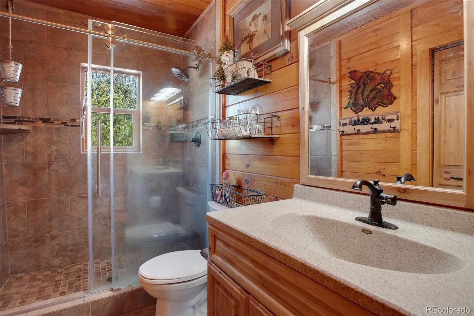 new walk-in custom tiled shower & new commode & vanity. An oversized detached 2 car garage is onsite, both insulated