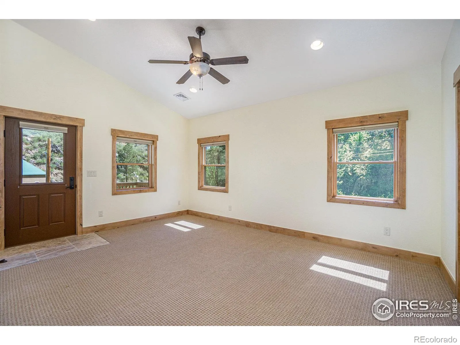 **Price Reduced!** This home is truly one that must be seen to appreciate its finer details. Come explore the exceptional interior of this delightful modern home located in Poudre Canyon, just 30 minutes from downtown Fort Collins. Equipped with top-of-the-line finishes, this property features durable porcelain floor tiles on the main level and custom tile work throughout. The spacious upper family/game room adds to its appeal, making this home a must-see. The main-floor primary bedroom includes a bathroom with heated floors and a large walk-in/roll-in shower. Vaulted blue pine wood ceilings in the main living and family room areas provide an elegant mountain touch, complemented by the detailed tile work in the kitchen, which comes with high-end appliances and a heated floor. Constructed with safety in mind, the home features concrete fiber Hardie-Plank siding on both the house and garage. There is also easy access to a 6-foot-tall concrete crawl space, complete with an over-engineered pressure tank and cistern system. For a comprehensive list of custom finishes and upgrades, please refer to the additional documents. The property includes a spacious garage/workshop (1,300 sq. ft.) equipped with 220v power and workbenches, perfect for your hobbies. It also offers a 16×11 overhead door and a loft space (370 sq. ft.). Situated on a 6.5-acre lot just 1/4 mile from the Poudre River, this home could be the mountain homeowner’s dream. Be sure to take a look at the video tour and visit this beautiful home and property!