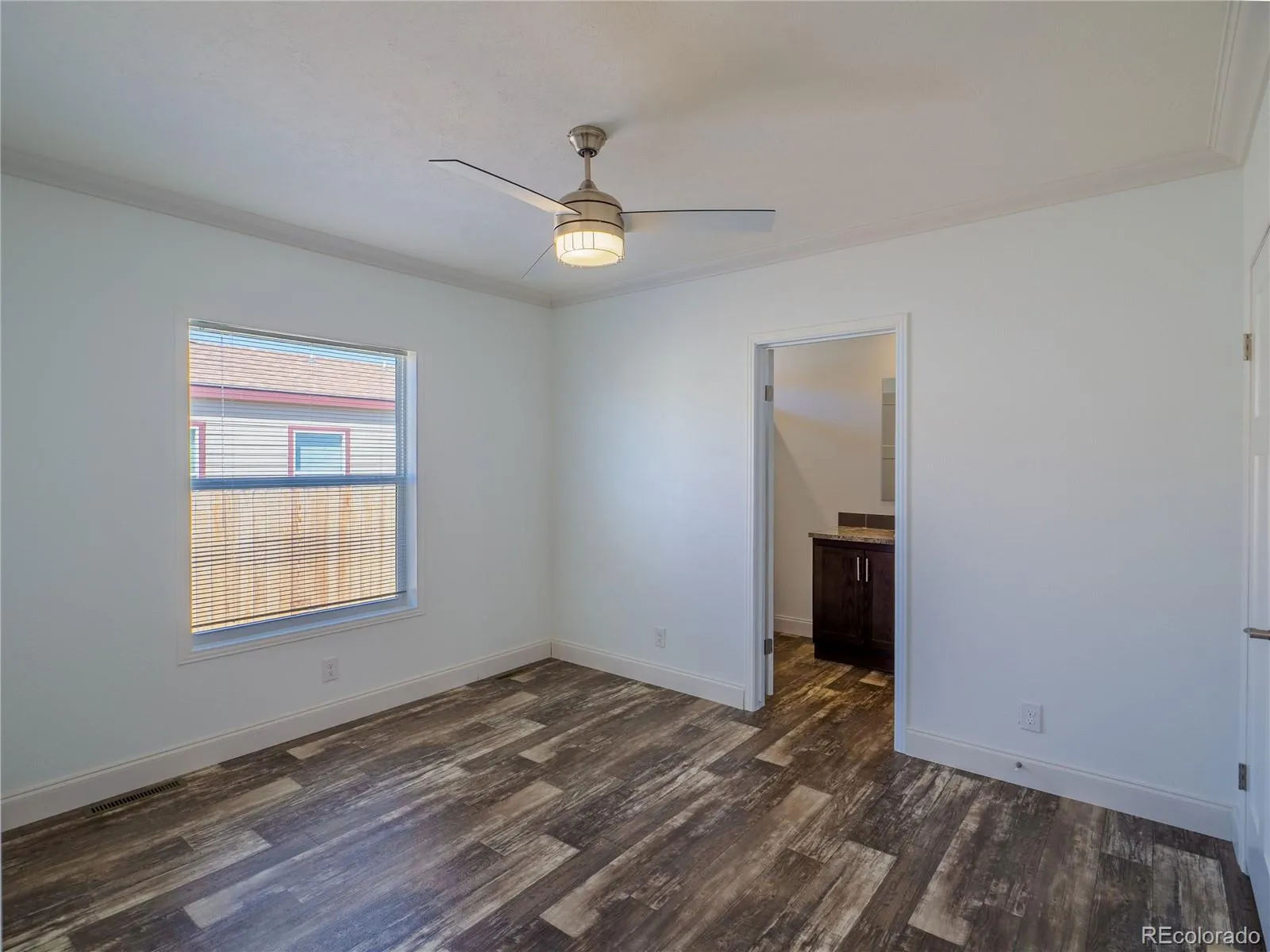 The kitchen features stainless steel appliances and lots of cabinet space. The primary bedroom has a large closet and its own bathroom with a shower. There’s a second bedroom that’s great for guests or a home office.