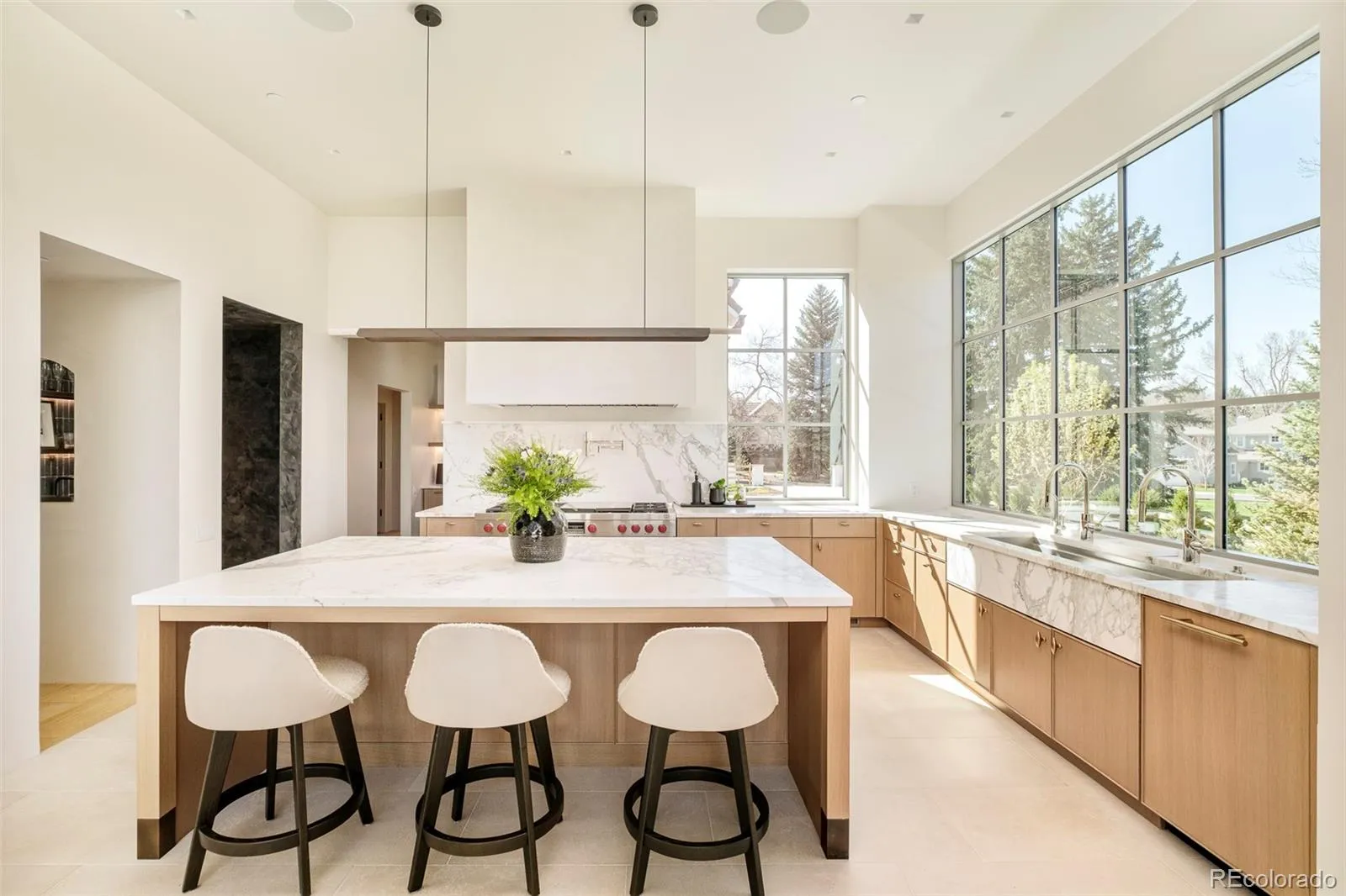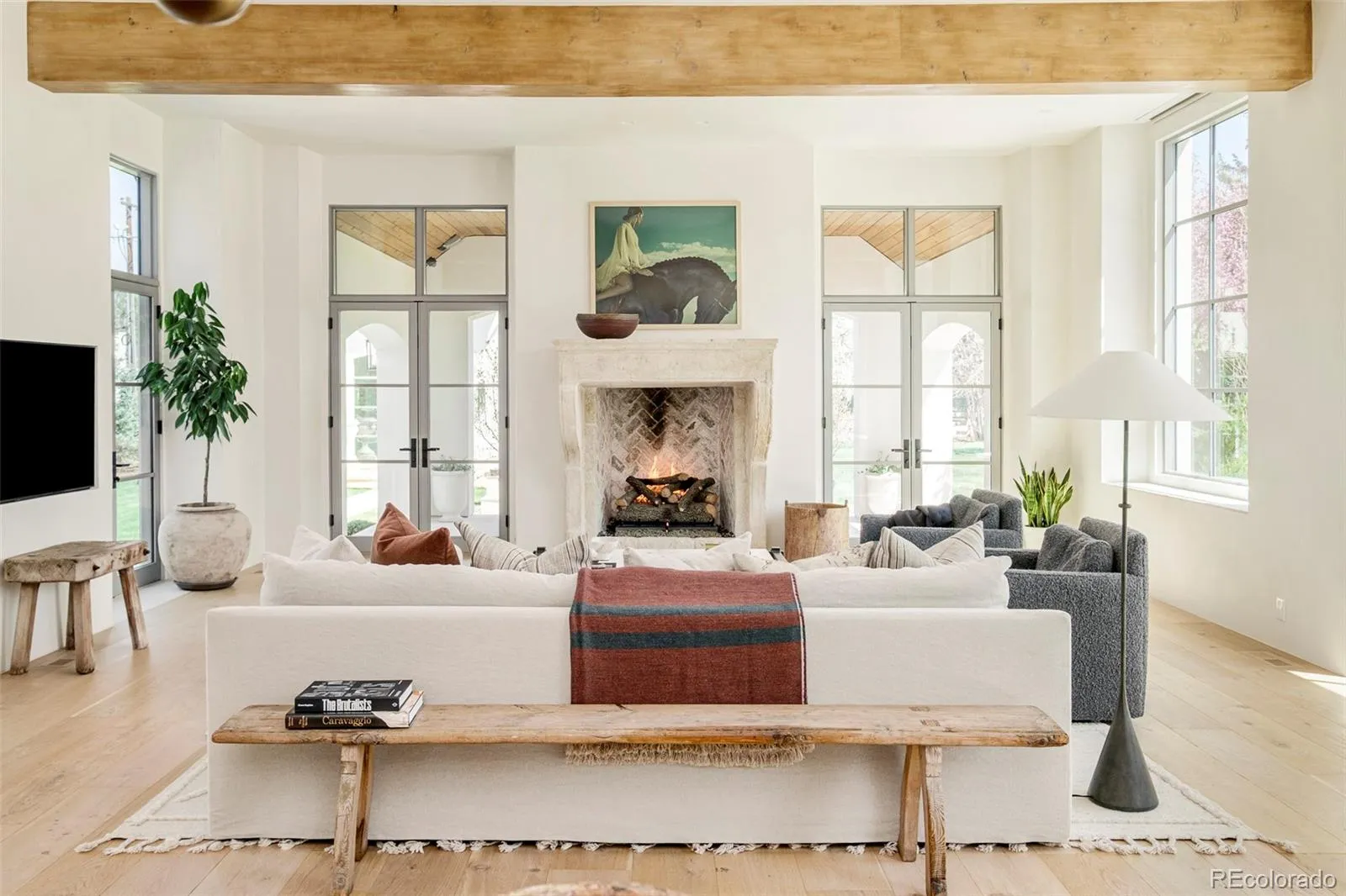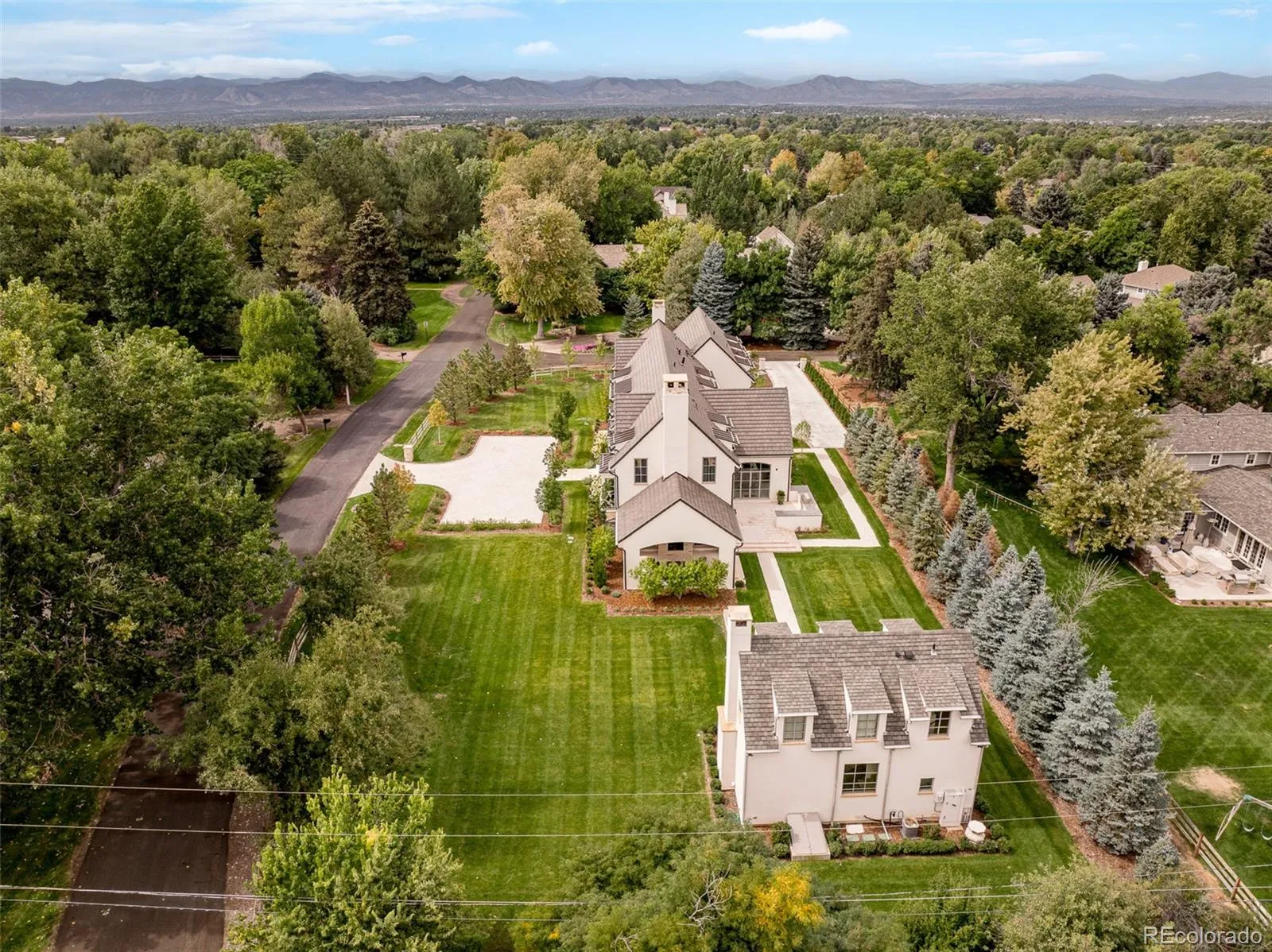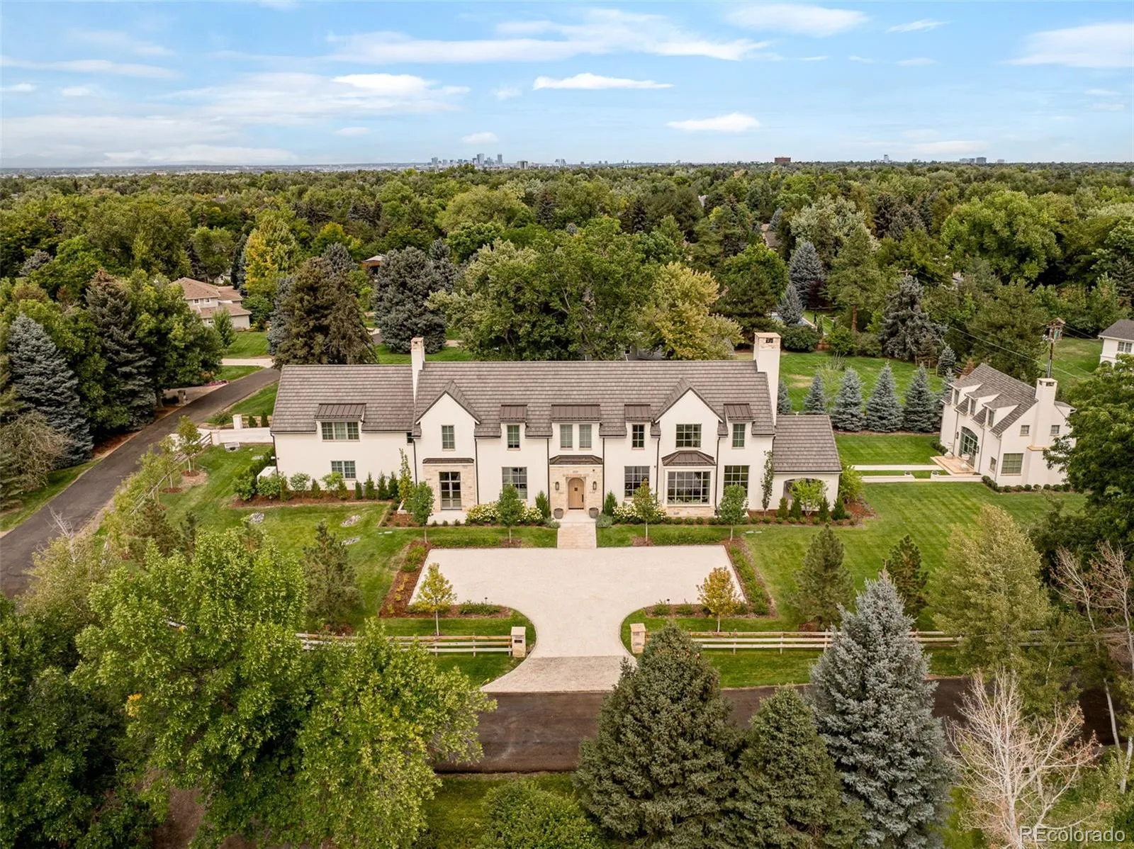 Introducing an extraordinary estate that seamlessly blends timeless European elegance with modern sophistication. Designed by renowned Architect Murphy Mears and Susan Weiss of Emerson Bailey, this new residence sits on just under one acre of prime corner property in the prestigious Old Cherry Hills Village. From the moment you step through the grand entry, you are greeted by a stunning flared arch ceiling, setting the stage for the impeccable craftsmanship that flows throughout. Exquisite plaster walls, custom raw steel railings, and European wide-plank white oak floors create a refined ambiance. The Great Room is a masterpiece featuring an antique French stone fireplace with reclaimed brick herringbone and rich cedar-wrapped beams. This inviting space serves as the heart of the home, offering both warmth and elegance. A true chef’s kitchen awaits, including luxurious Calacatta countertops, custom VOGO Micro Rail cabinets, and a full suite of high-end appliances such as: a 60” Wolf Dual Fuel Range, COve dishwasher, Miele coffee, Sub-Zero refrigerator and freezer and Sub-Zero wine storage. The primary suite is a private retreat, offering two expansive walk-in closets, a full wet bar, and a stunning Town and Country Fireplace framed by a custom limestone surround. The adjoining spa-inspired bath features European tumbled limestone, Calacatta countertops, a matte white freestanding bathtub, and an aged brass shower set. Heated limestone floors elevate the experience, creating an atmosphere of pure luxury. Additional amenities include a one-bedroom, two-bath carriage house, a four-car garage with polished concrete floors, and an oak elevator that serves all levels. Every detail has been thoughtfully curated to offer both beauty and functionality. This is more than just a home; it’s a statement of elegance, craftsmanship, and unparalleled luxury. Welcome to a residence that defines the art of refined living.