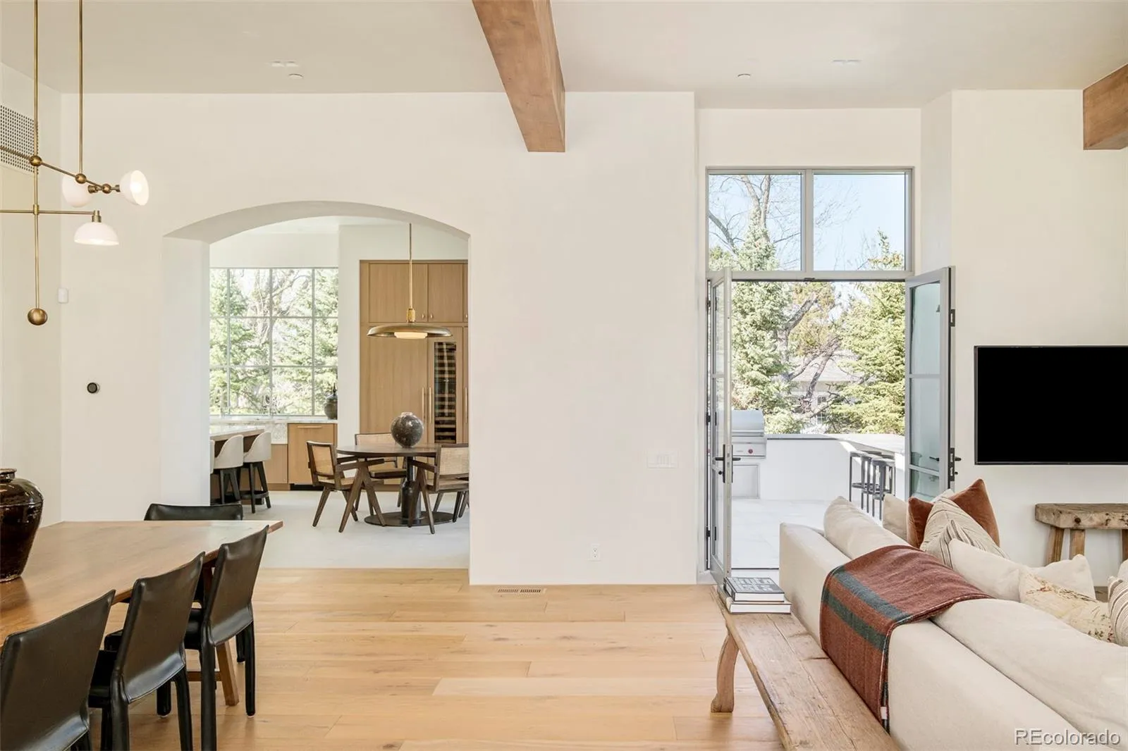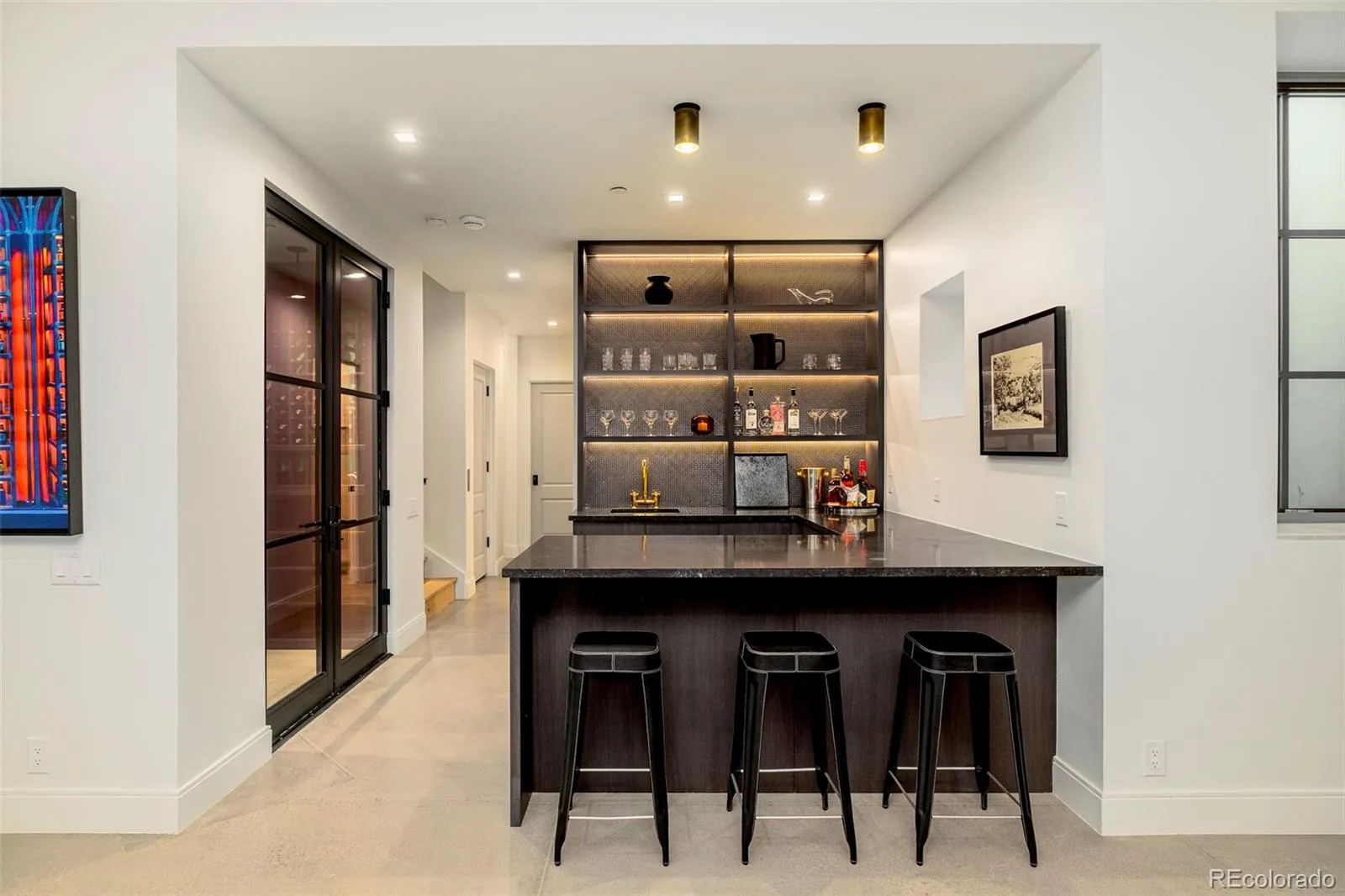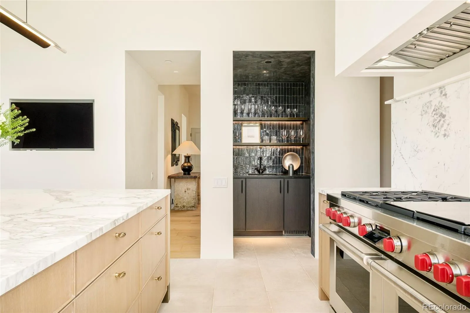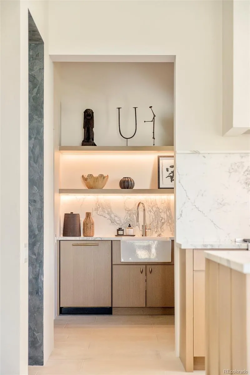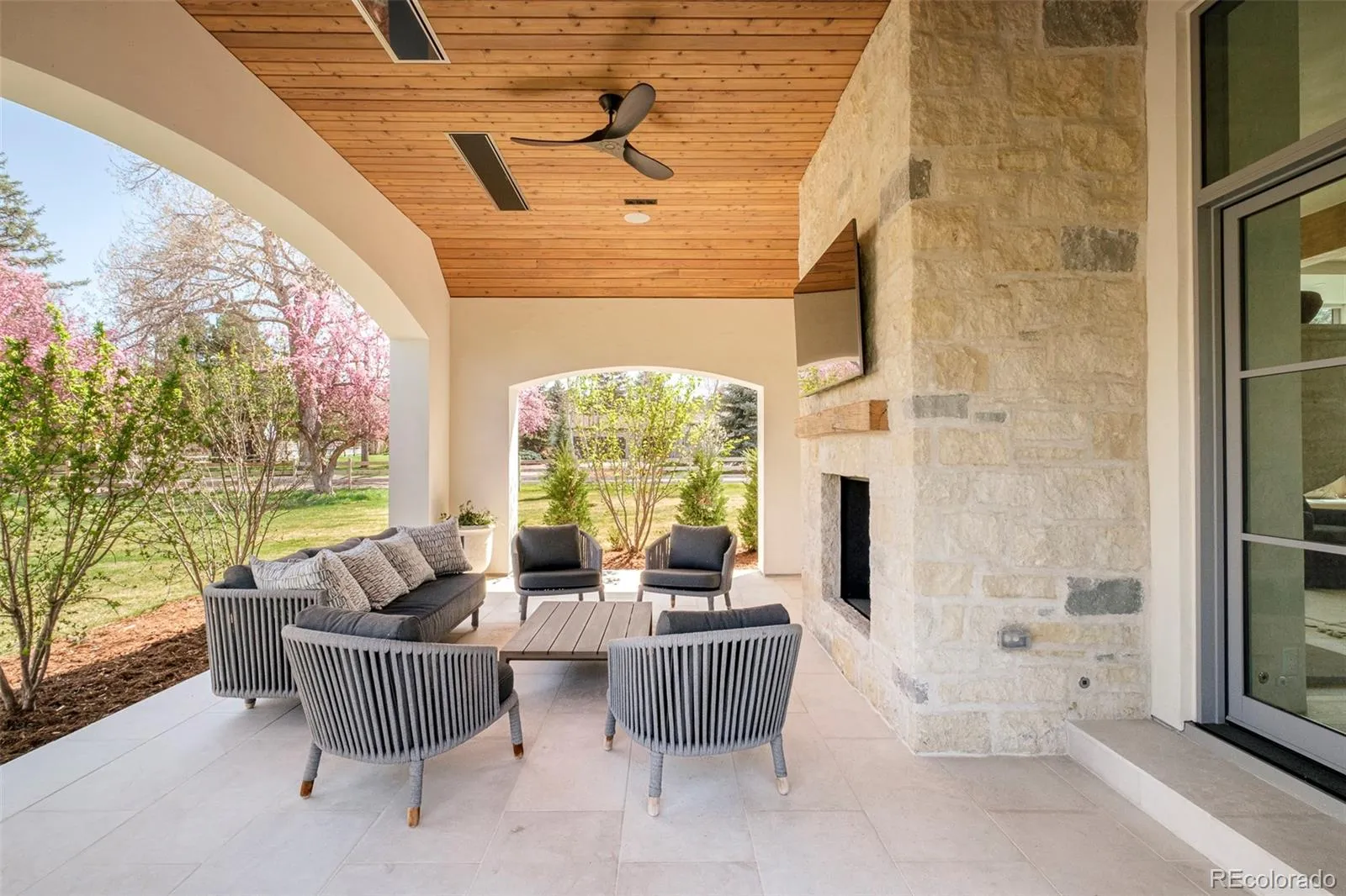 Introducing an extraordinary estate that seamlessly blends timeless European elegance with modern sophistication. Designed by renowned Architect Murphy Mears and Susan Weiss of Emerson Bailey, this new residence sits on just under one acre of prime corner property in the prestigious Old Cherry Hills Village. From the moment you step through the grand entry, you are greeted by a stunning flared arch ceiling, setting the stage for the impeccable craftsmanship that flows throughout. Exquisite plaster walls, custom raw steel railings, and European wide-plank white oak floors create a refined ambiance. The Great Room is a masterpiece featuring an antique French stone fireplace with reclaimed brick herringbone and rich cedar-wrapped beams. This inviting space serves as the heart of the home, offering both warmth and elegance. A true chef’s kitchen awaits, including luxurious Calacatta countertops, custom VOGO Micro Rail cabinets, and a full suite of high-end appliances such as: a 60” Wolf Dual Fuel Range, COve dishwasher, Miele coffee, Sub-Zero refrigerator and freezer and Sub-Zero wine storage. The primary suite is a private retreat, offering two expansive walk-in closets, a full wet bar, and a stunning Town and Country Fireplace framed by a custom limestone surround. The adjoining spa-inspired bath features European tumbled limestone, Calacatta countertops, a matte white freestanding bathtub, and an aged brass shower set. Heated limestone floors elevate the experience, creating an atmosphere of pure luxury. Additional amenities include a one-bedroom, two-bath carriage house, a four-car garage with polished concrete floors, and an oak elevator that serves all levels. Every detail has been thoughtfully curated to offer both beauty and functionality. This is more than just a home; it’s a statement of elegance, craftsmanship, and unparalleled luxury. Welcome to a residence that defines the art of refined living.