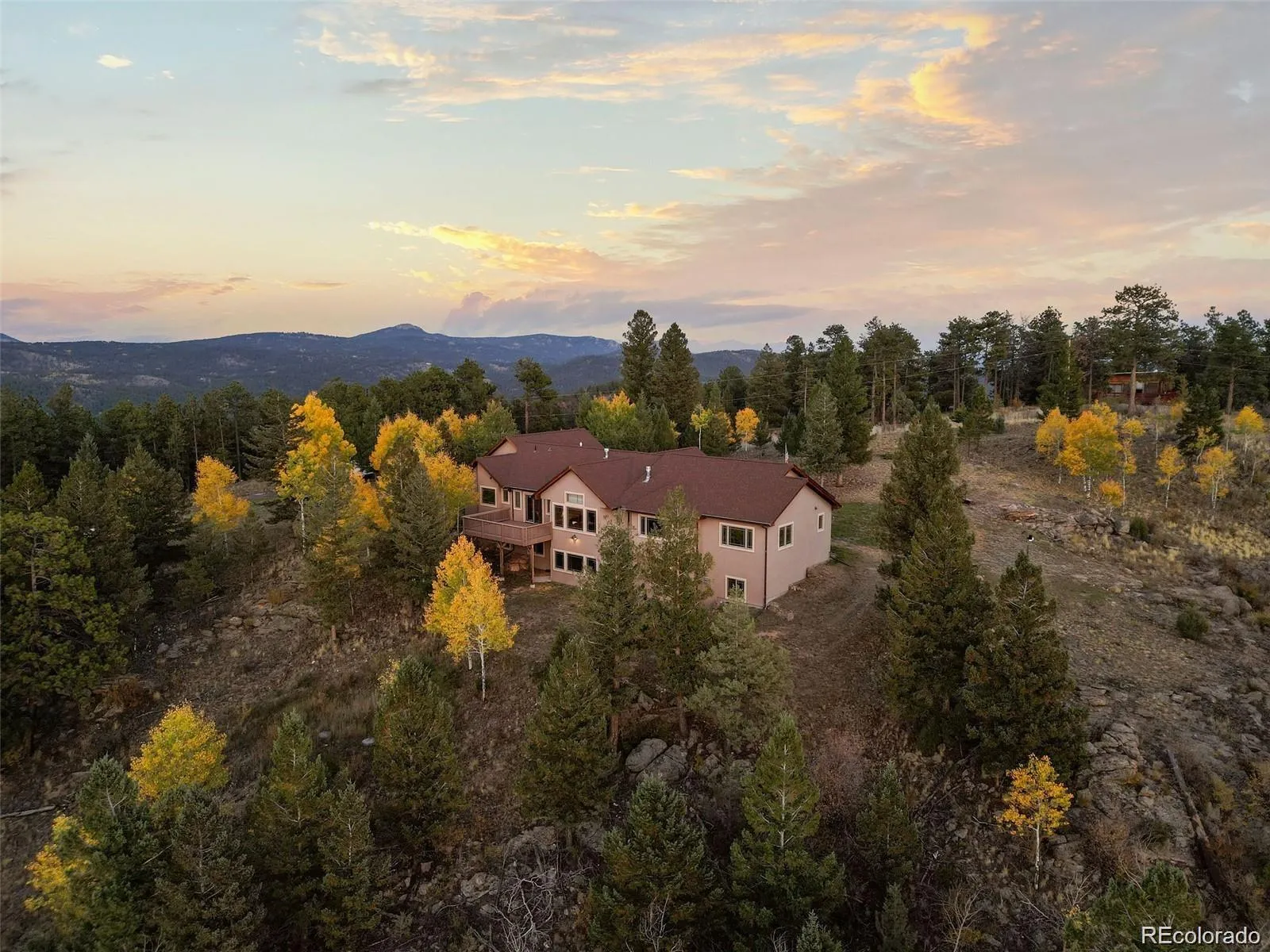 Discover refined mountain living in this stunning ranch-style custom retreat offering nearly 5,000 finished sq ft on over 10 pristine, wooded acres. Perfectly positioned just minutes from Hwy 285 and Staunton State Park, this home blends elegance, functionality, and the ultimate Colorado lifestyle—with a rare combination of flat, usable land and breathtaking panoramic views. Step inside to soaring vaulted ceilings, rich hardwood floors, and expansive windows that frame the surrounding natural beauty. The main level’s open-concept design features a grand living room anchored by a dramatic floor-to-ceiling stone fireplace, a formal dining room, and a chef’s kitchen with granite countertops, stainless steel appliances, and a large center island—ideal for entertaining. The luxurious primary suite offers vaulted ceilings, dual walk-in closets, and a spa-like 5-piece bath with soaking tub and walk-in shower. Two additional bedrooms, a stylish guest bath, powder room, and a dedicated office with built-ins and its own fireplace complete the main level. The fully finished walk-out basement is a versatile haven—featuring a spacious media/game room with wet bar and fireplace, luxury vinyl plank flooring, a full bath, and a fourth non-conforming bedroom. An additional flex space offers potential for a gym, craft room, or additional guest quarters. Additional Features: 3 fireplaces, Smart home security system, Oversized 2-car garage with pellet stove & hot/cold water access. Whether you’re looking for a full-time residence or an exclusive mountain getaway, this exceptional property delivers privacy, space, and comfort—all just 40 minutes from Denver and moments from world-class hiking, biking, and adventure.