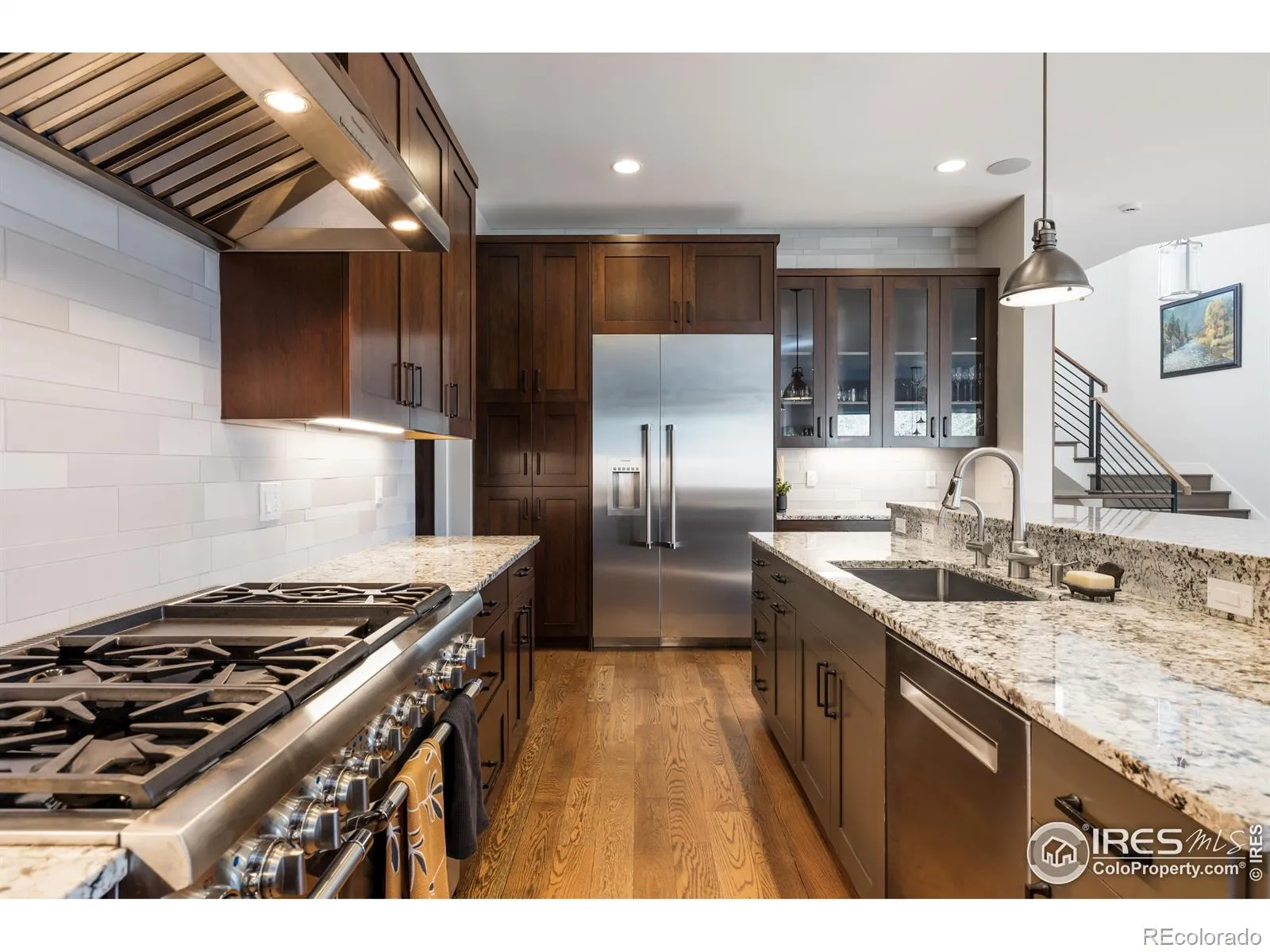 Peaceful seclusion, jaw-dropping views and Central Boulder accessibility meet in this stunning 4BD/5BA featuring an open indoor-outdoor layout and an oversized lot nestled on a tranquil Melody Heights cul-de-sac. Built in 2017, the home boasts refinished hardwood floors, fresh paint, soaring ceilings, and walls of windows framing glorious natural light. A gracious foyer with a powder room ushers you to an open great room with a gorgeous fireplace. In the gourmet open kitchen, custom cabinetry, granite counters and tile backsplashes surround top-of-the-line stainless steel appliances. The adjacent pantry adds storage space, while the center island sets the stage for casual dining. A corner office, mudroom and laundry room add exceptional convenience to the main level. Glass doors tempt you outside for world-class al fresco entertaining and lounging on covered and open patios stretching to manicured landscaping. Mature trees and fencing encircle this 0.28-acre lot for complete privacy, while breathtaking Flatirons views sweep across the horizon. In the upper-level primary suite, a king-size bedroom impresses with vaulted ceilings, a gas fireplace, a south-facing balcony, and an en suite spa bathroom with a double vanity, freestanding tub, steam shower, private water closet and massive walk-in closet. Two spacious and bright secondary suites with roomy closets and private baths complete this floor. Fun and games await on the carpeted lower level, where a huge family room and media/game area are anchored by a walk-up bar and illuminated by large egress windows. A fourth bedroom suite with a semi-private bathroom is perfect for guests or staff. A long driveway leading to an oversized three-car garage provides plenty of off-street parking, while a stone-trimmed fa ade adds timeless curb appeal to this turnkey Boulder beauty. This sought-after location is just minutes from Lucky’s Market, Ideal Market, CU, Pearl Street, parks and trails.