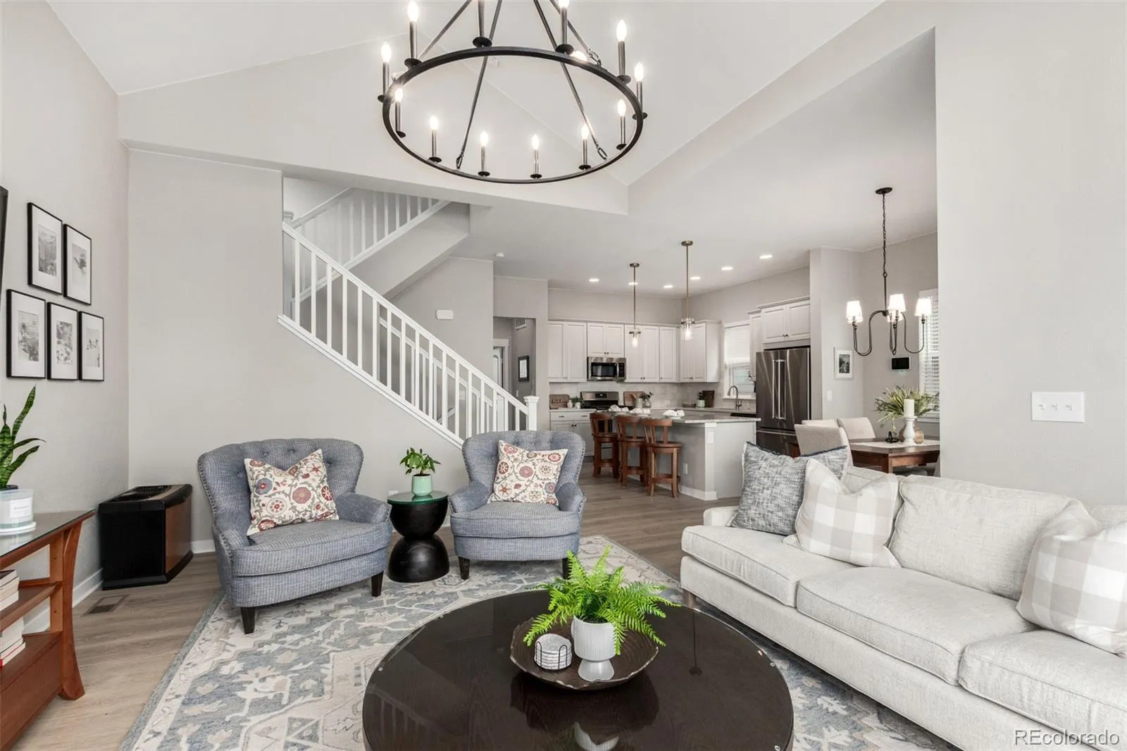 Head upstairs to the second floor, where treetop living begins. The open-concept kitchen, living room, laundry area, and primary suite are all located here—flooded with natural light and designed for effortless everyday living. The kitchen features soft-close cabinets with upgraded hinges, and the living spaces are accented with custom window blinds and upgraded light fixtures. Most outlets include USB ports, and dimmer switches are installed throughout for flexible lighting control.