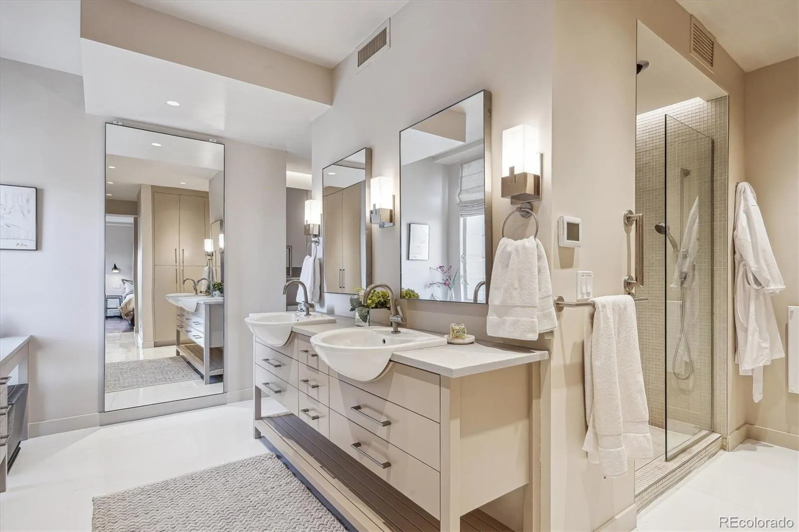 Chic urban design is evident in this fully remodeled residence overlooking Cheesman Park, in Denver’s iconic One Cheesman Place, designed by renowned architect Charles Sink. This luxury building, completed in 1969 is celebrated for it’s innovative design and enduring elegance. Charles Sink’s design philosophy is evident in the building’s clean lines and expansive floor-to-ceiling glass windows and large balconies offering unsurpassed views of Cheesman Park. The expansive living/dining area offers unlimited possibilities for entertaining and daily living with plenty of room for multiple seating areas. The newer kitchen is open to the living and dining area and includes a built-in refrigerator, double ovens, a rare gas cooktop and beverage refrigerator. The luxurious primary suite includes a comfortable bedroom plus a “spa” style 5-piece bath with separate tub and shower and dual vanity plus make-up counter and custom closet built-ins. A second bedroom works equally well as a den with a built-in murphy bed. Carefully curated, high end finishes include beautiful herringbone wood floors, quartz counters, designer selected fixtures and top-of-the-line appliances and custom built-ins. The full width terrace allows for seamless indoor/outdoor entertaining and offers a three-season living area to enjoy the views of historic Cheesman Park with it’s 1.6 mile walking path loop. This residence includes one underground garage parking space and one storage space and additional parking for residents and guests is available at the entry level. One Cheesman Place offers an array of amenities including a seasonal swimming pool, fitness center, sauna, top floor club room, guest suites for resident’s guest’s use, staffed lobby and building security. Residents are committed to keeping this landmark building in top condition. Whole Foods and King Soopers are nearby along with many neighborhood restaurants and shops and Cherry Creek North and downtown Denver are minutes away!