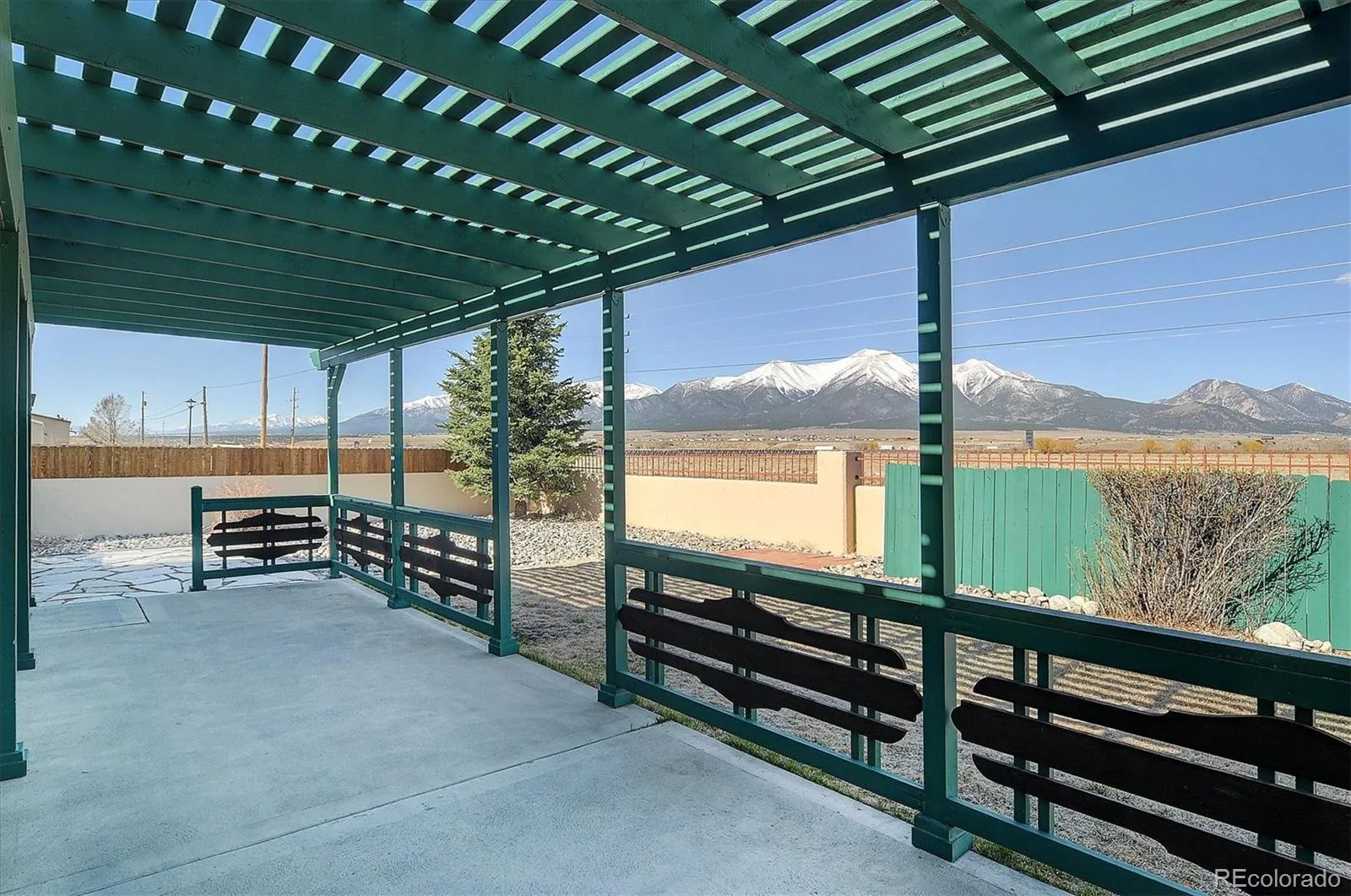 Lovely three bedroom, two bathroom home in a gated community with a private trail to the community open space along the Arkansas River. Comfortable, one-level 1860 square foot home with a detached garage on a beautiful corner lot with pristine views of Mt Princeton. Lovely landscaping, covered back patio, and fenced back yard with one of the larger lots in the subdivision. Paved streets, community mailbox, community center, shared garden space, trash, water, sewer, and landscaping included in the monthly HOA fees. This is a sweet community close to downtown Buena Vista with big views of the mountains. This lot is very private, and offers so many bonuses, such as the home was recently painted, the carpets freshly cleaned, and this home is ready for your full or part-time enjoyment. With an open floor plan, entertaining and daily living will be a pure delight with the inviting living room, spacious kitchen, designated dining area, and sliding doors to covered patio. The corner primary suite has a large walk-in closet, very nice bath with upgraded walk-in soaking tub, and two sinks. Guests will enjoy the two additional bedrooms and full bath on the opposite side of the home. The detached garage has ample space for vehicles and storage. This subdivision does not allow short-term rentals and has other restrictions which are available for review.