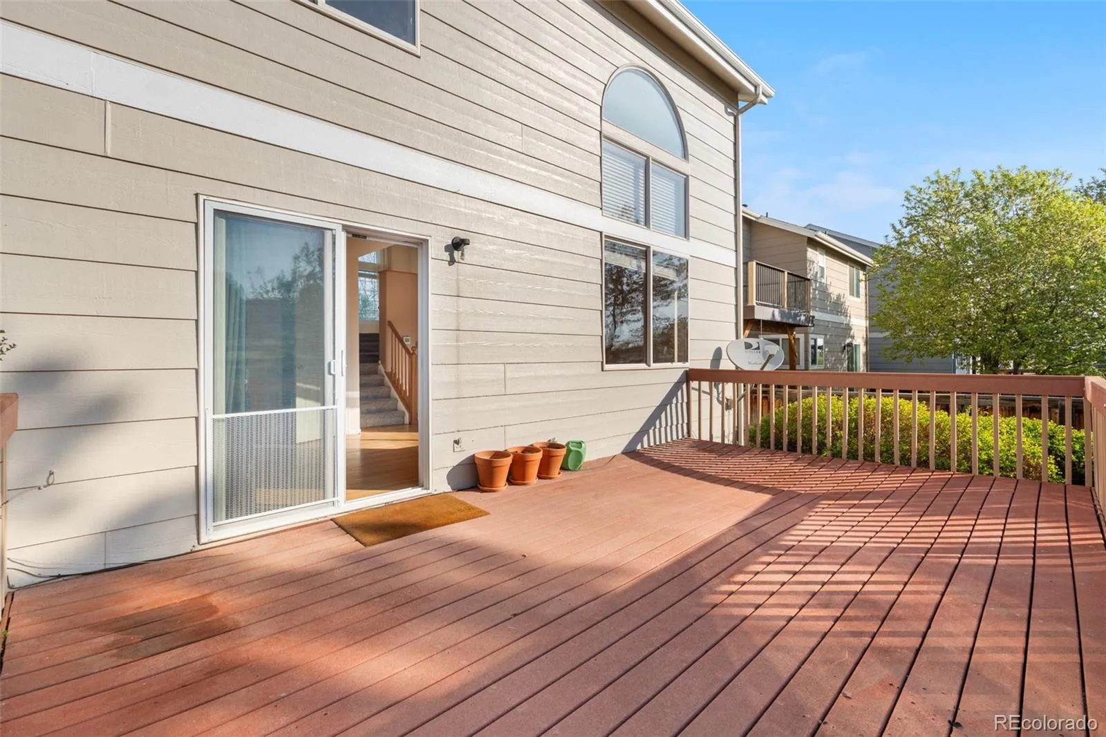 This well-maintained home has a lovely treks type deck in the backyard backing to open space that has a trail that will take you all the way into Downtown Denver. New Carpeting throughout. The Master Bedroom has a walk-in closet, double sinks, separate tub & shower as well as a private deck that also overlooks the backyard and open area. All appliances, including washer & dryer are included in the sale. The basement offers a finished bonus room that would be perfect for: workouts, crafts, hobbies or whatever room. Low maintenance yard with sprinkler system and quick possession. See for yourself. This is the best value in Highlands Ranch!