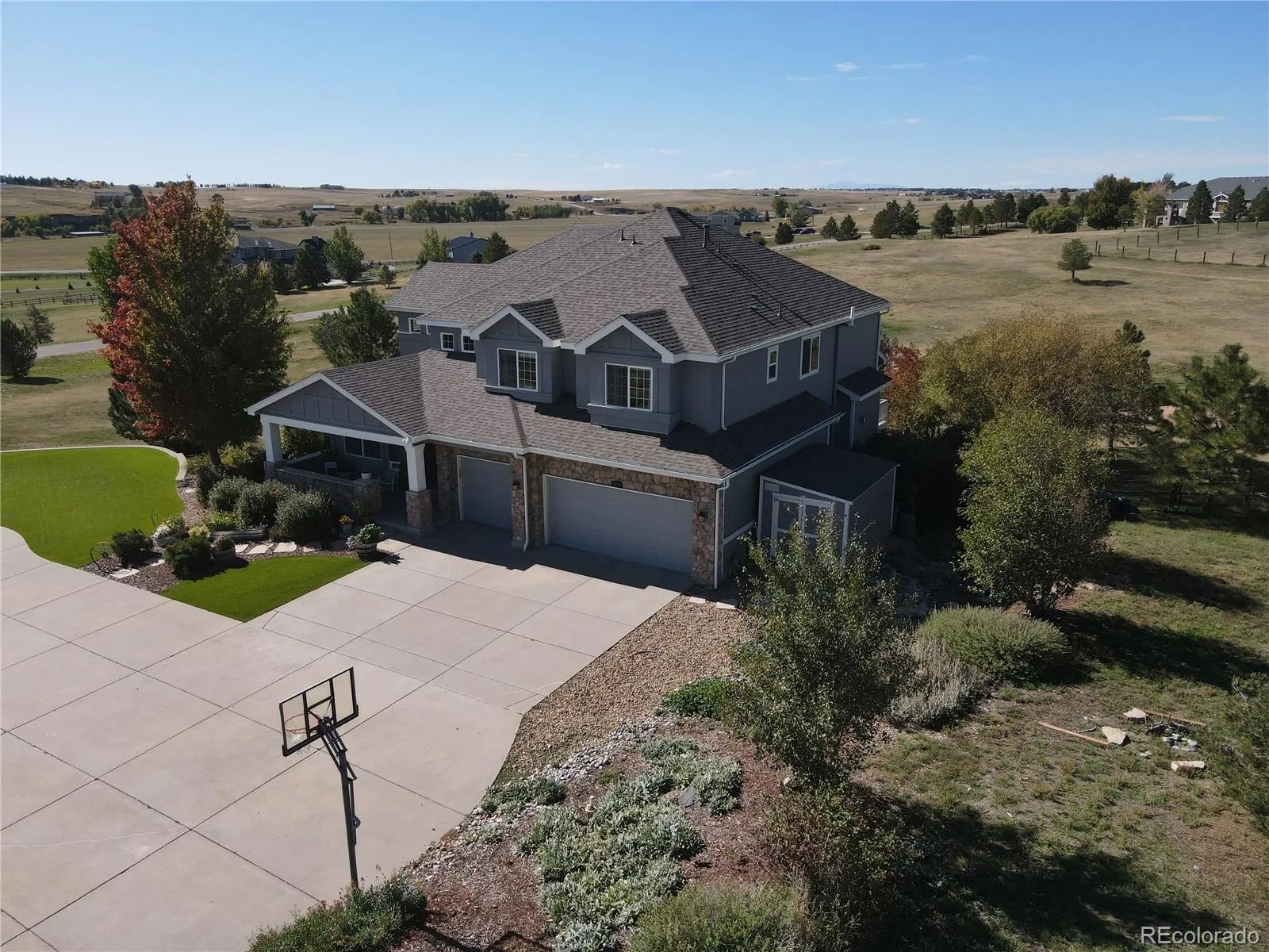 Welcome to this stunning 5-bedroom, 5-bathroom home nestled on a peaceful 5-acre lot in the sought-after community of Elkhorn Ranch. Thoughtfully designed for both comfort and function, this home offers expansive living spaces inside and out.