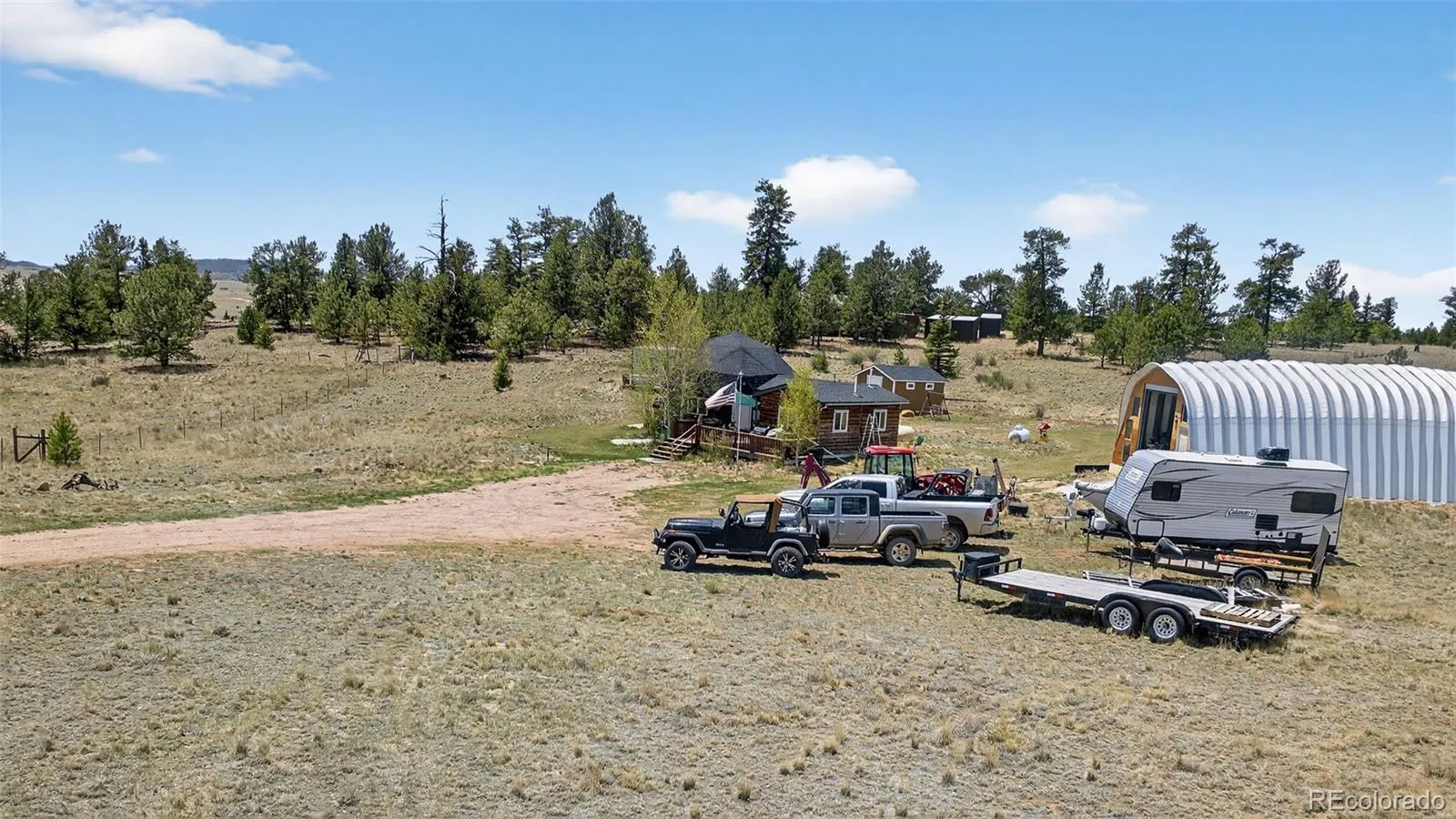 Two acres & geodesic dome cabin gives you mountain views, hot tub and cozy winter nights, with two sheds (one heated) and oversized RV garage! Almost equal distance from Denver and Colorado Springs, this 2.1 acre lot in Como includes more than you can imagine! Sellers have built and customized the property to your benefit, including two sheds: one heated, with solar, for crafting or anything you can imagine; and another as storage. The oversized barn / garage is set for RV parking, storage and more, but this structure has lighting and 220 electrical. Front and back patios on the main home give you room to sit in the sun and make friends with the deer or bask in the hot tub under the stars. Inside, the entryway opens into either the dining area or kitchen, with the full bathroom being off the kitchen (be sure to check out the claw foot tub with painted toenails!). This part of the home is the ranch-style portion attached to the dome. Within the dome, the primary bedroom is behind the kitchen and has more than enough room for a king-sized bed. The living room is heated by a pellet stove and electric heater, so it’s always warm and comfy. Upstairs, the loft of the dome has two (twin) bunk beds that are negotiable and can be included with the purchase (along with the couch in the living room and futon in the bonus bedroom). There’s also a brand new roof, new windows and three new doors! Crawlspace underneath the home was recently encapsulated and insulated, keeping everything warm and low maintenance. Propane is attached to several things, including the gas stove and hot water tank. Private well and septic on property, with septic to be cleaned / pumped prior to closing. HOA is only $50 annually and stocks four reservoirs, with two being trout ponds for fishing. Entire acreage of property is FULLY fenced. Close to national parks, hiking trails, access to ski resorts and more! *Lender offering $8,000 in buydown / closing cost incentive! Ask your broker for more info.*