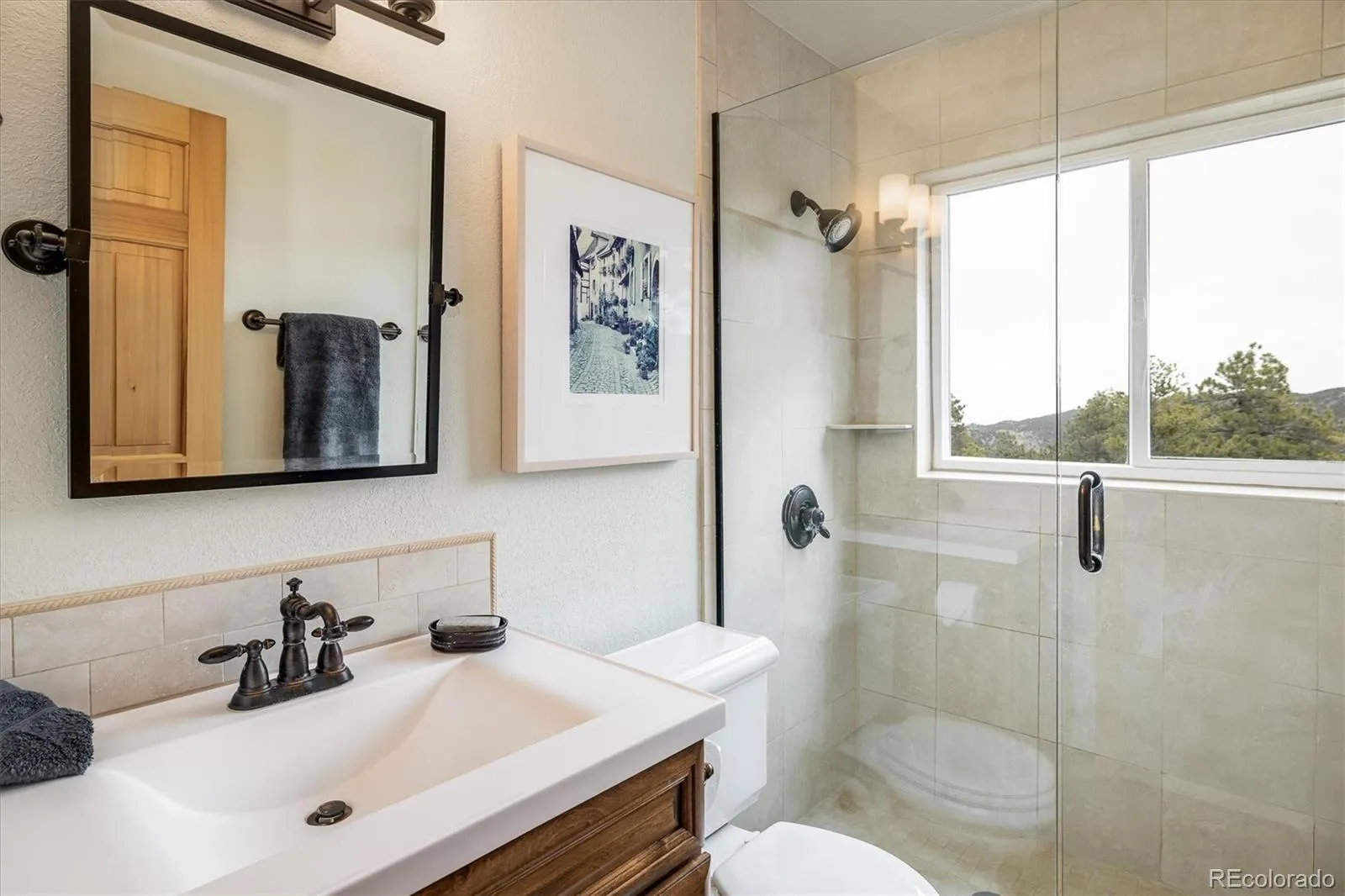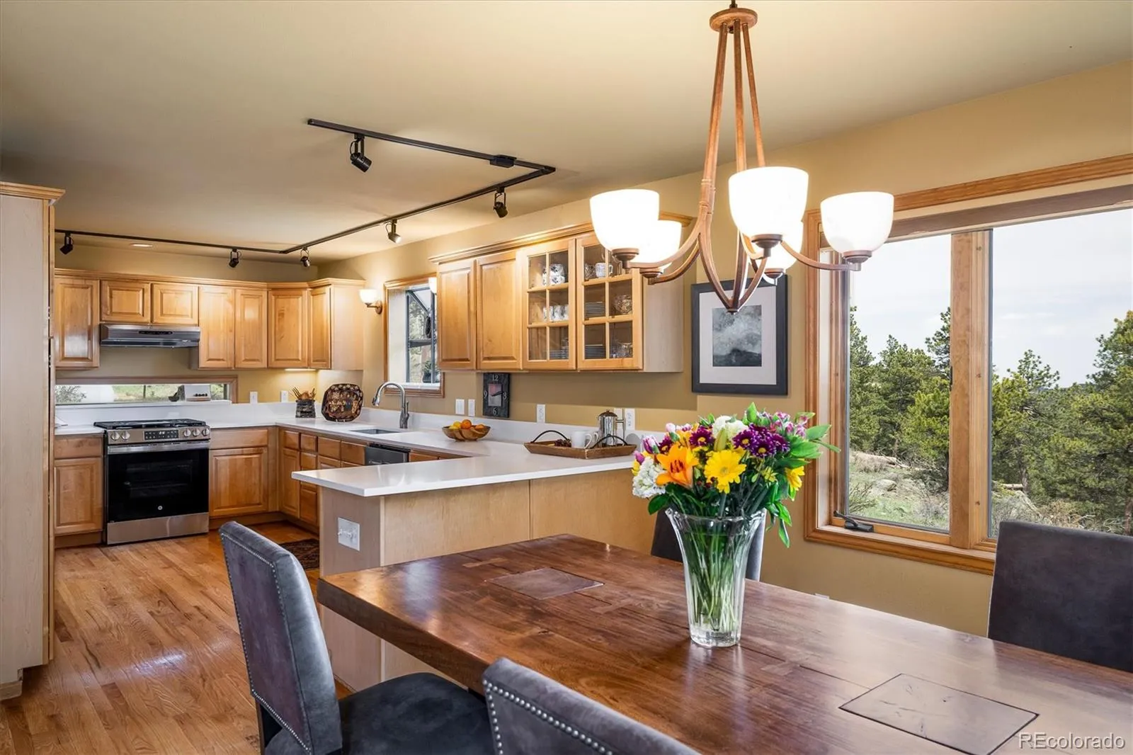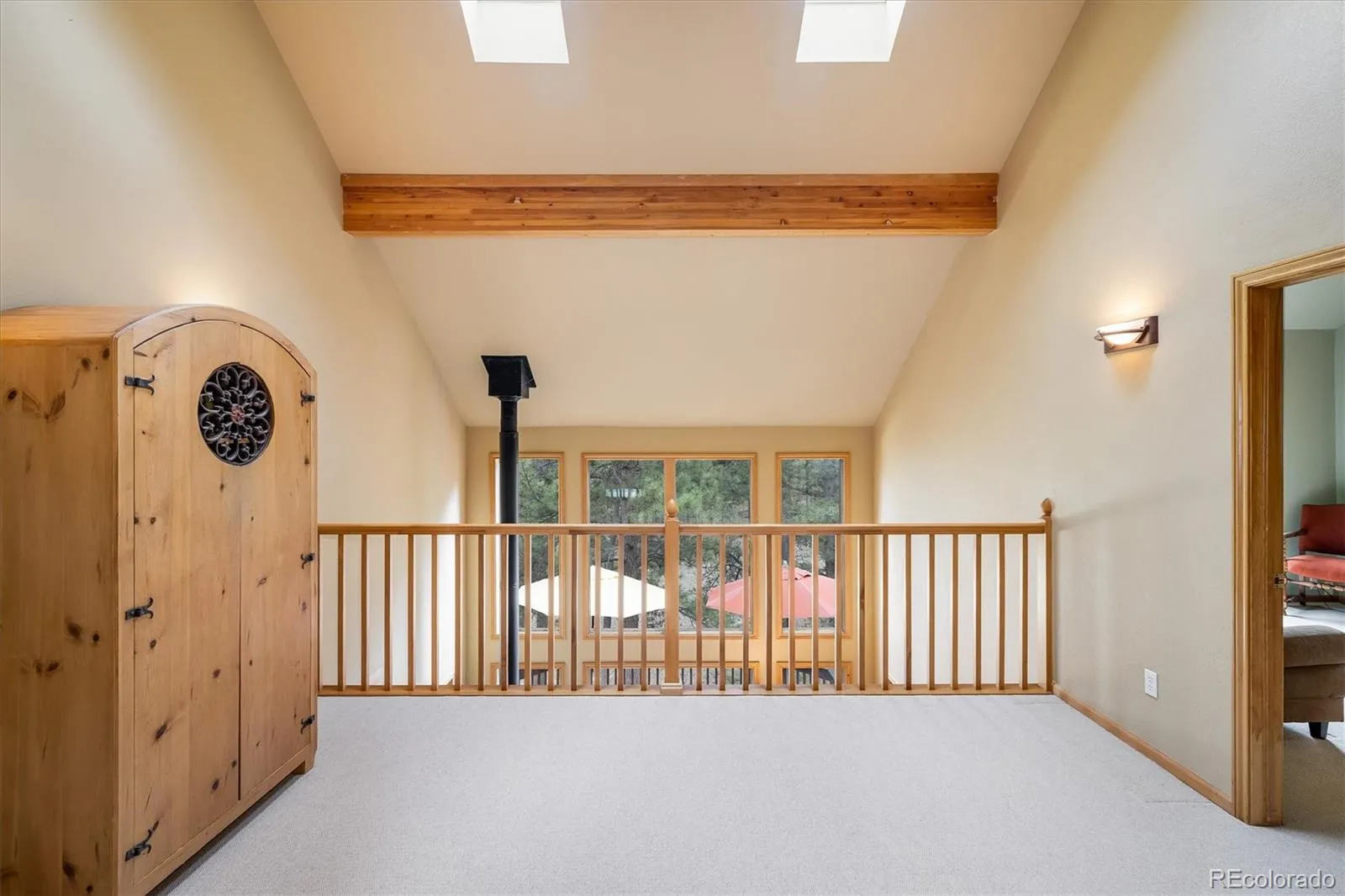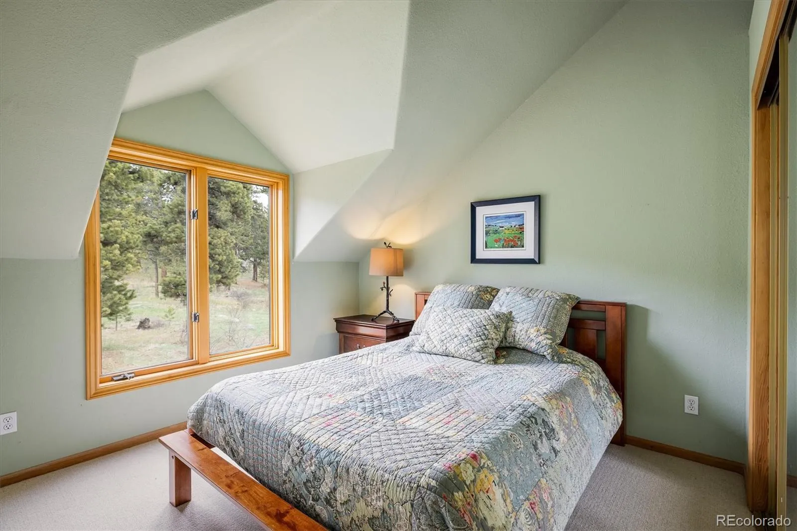 Nestled into the Boulder foothills in desirable St. Anton Highlands, this stunning home offers an extraordinary blend of mountain elegance and modern comfort. Thoughtfully designed to embrace its breathtaking surroundings, the open-concept living space is framed by floor-to-ceiling glass, flooding the living, dining, and kitchen areas with radiant natural light. A wide, graceful archway leads from the living room into a serene study, where French doors open to a sun-drenched deck and a charming flower garden framed by natural rock outcroppings. Here, the line between indoors and outdoors disappears, creating the perfect setting for both quiet reflection and lively entertaining. Step onto the expansive deck, an inviting retreat where you and your guests can bask in the sunshine, breathe in the fresh scent of pine, and admire views of distant mountain peaks framed by towering trees. Daily sightings of elk, deer, and even the occasional moose add to the magic of life in this beautiful setting. Upstairs, a loft leads to the spacious primary suite-a peaceful haven featuring vaulted ceilings, a relaxing spa-like bath, and generous living spaces. The second floor also includes a private office with its own balcony, two additional bedrooms, and another full bathroom. Lovingly maintained by the original owners, this home is a true sanctuary. Enjoy nearby skiing at Eldora and outdoor adventures like hiking, mountain biking, and snowshoeing at Hesse, Brainard Lake, and Caribou Ranch-all with close access to both Boulder and Nederland. Mountain living at its finest awaits you. Furnishings negotiable.