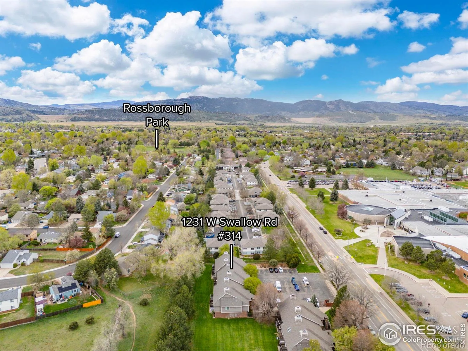 This light-filled, ground floor condo offers a rare combination of comfort, convenience, and location in the heart of Fort Collins. Featuring two spacious bedrooms and one well-appointed bath, the unit is move-in ready or perfect as an investment property. The open living room is anchored by a cozy wood-burning fireplace and opens through a large sliding glass door to a generous patio and expansive private green space, surrounded by mature trees for privacy and tranquility. The kitchen connects seamlessly to the dining area via a passthrough bar, making entertaining easy. A quiet community setting just minutes from CSU, Rossborough Park, Spring Creek Trail, and numerous amenities, this condo offers the best of Fort Collins living in a well-maintained, charming setting.