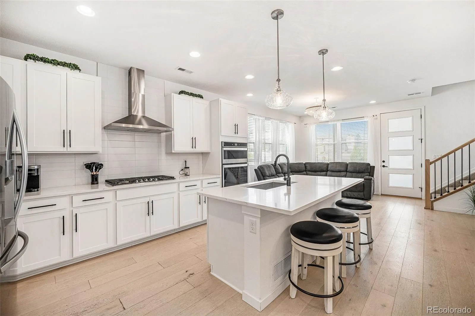 The heart of the home is the sleek, fully equipped kitchen with stunning quartz countertops, stainless steel appliances, and contemporary cabinetry—perfect for cooking, gathering, and entertaining. The open floor plan flows seamlessly into the living and dining areas, making the space feel welcoming and airy.