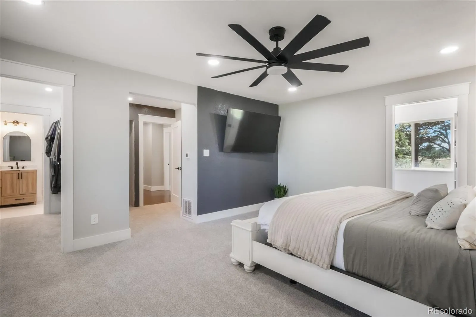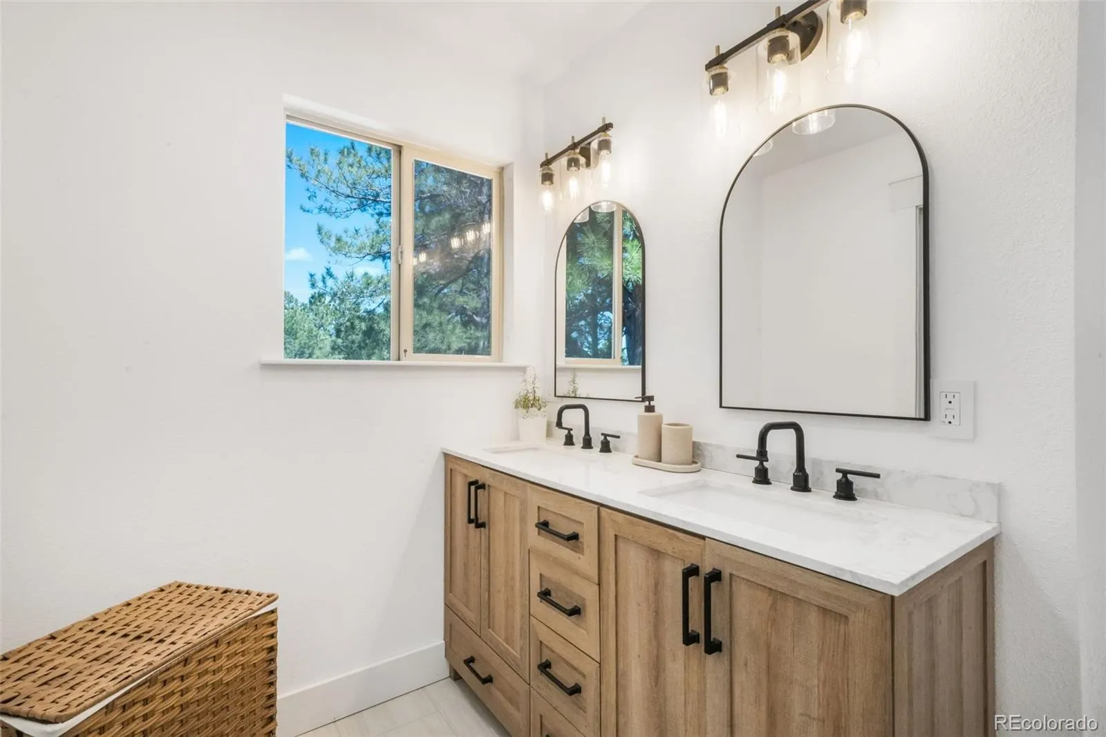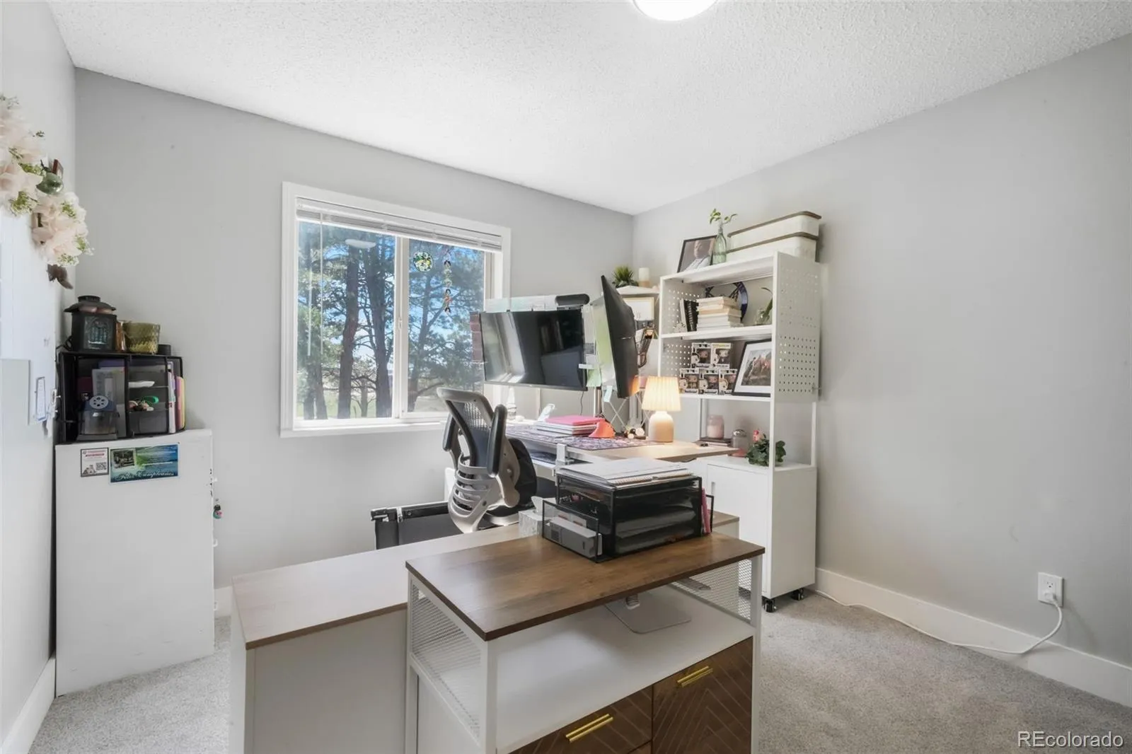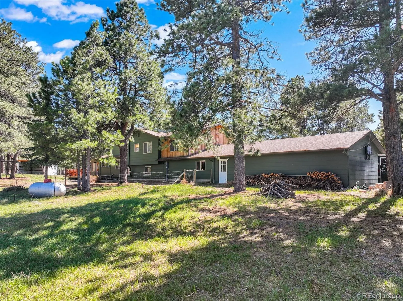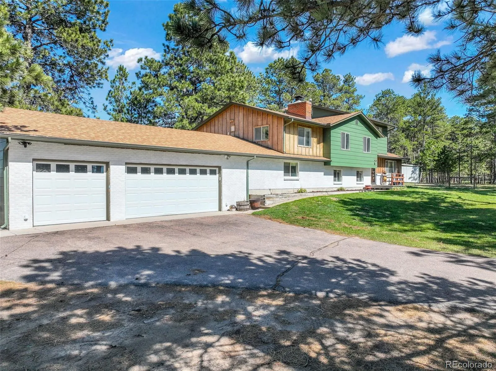 Welcome to this charming countryside retreat nestled on 5 peaceful, treed acres of serene equestrian landscape in El Paso County. This versatile and beautifully updated property offers the perfect blend of rural charm and modern convenience. Located just off Hodgen and Meridian in District 40, this 5 bedroom, 4 bathroom home features space to spread out, both inside and out. The barn/workshop includes electricity and two run-in shelters, while the acreage has two fenced pastures with no-climb fencing, ideal for horses or hobby farming. The home itself has been thoughtfully updated with new paint, doors, hardware, blinds, LED lighting, and smart home features including a Nest smoke detector, Ecobee thermostat, some smart switches, Ring camera, and Quickset smart lock. The main level includes a spacious kitchen, dining area, formal dining or sitting room, and a sunroom that opens to the back deck and yard—complete with a greenhouse. Downstairs, you’ll find a large laundry room, living room with engineered hardwood floors and a cozy wood-burning fireplace, a junior suite with its own ¾ bath, and an expansive, versatile rec room with garage access. Upstairs, two secondary bedrooms share a full hall bath, while the fully renovated primary suite is a true retreat, massive in size and outfitted with dual walk-in closets, a framed hidden closet, and a luxury bath featuring a step in shower, heated towel racks, and dual sinks. The uppermost level offers a fifth bedroom and another full bath. Additional perks include a 3-car attached garage with direct backyard access, a 2018 roof and well pump, and completed fire mitigation for peace of mind. A rare find offering privacy, flexibility, and modern comfort all on your own slice of Colorado paradise.