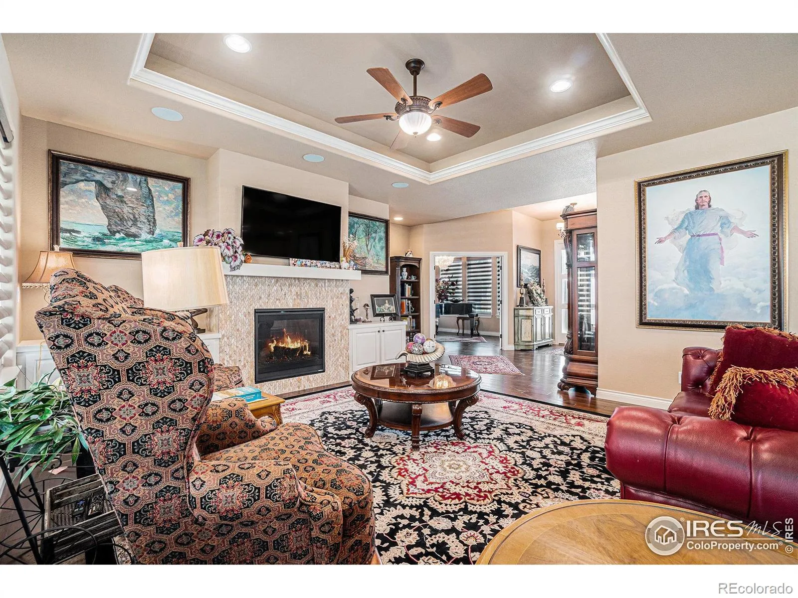 Price Reduced $50,000! This stunning custom home is nestled at the end of a serene cul-de-sac in one of Windsor’s most desirable golf course communities! Set on a beautifully landscaped 0.42-acre lot, this home offers privacy, space, and an unbeatable lifestyle just steps from the golf course, clubhouse, pool, tennis courts, trails, and open space. The home features 4 spacious bedrooms plus an office, and 3.5 luxurious bathrooms. The open-concept main level is anchored by a gourmet kitchen, complete with granite countertops, high-end stainless-steel appliances, a walk-in pantry, and soft-close cabinetry-perfect for entertaining or everyday living. In the living room, you’ll find a gas fireplace, built-ins, surround sound, custom blinds, and a tray ceiling. Retreat to the primary suite, where you’ll find a spa-inspired bathroom with a freestanding soaking tub, a separate walk-in shower, dual sinks, and a generous walk-in closet. The finished basement expands your living options with a wet bar, cozy fireplace, two additional bedrooms, a 3/4 bath, and abundant storage. Step outside to a backyard oasis featuring a retractable awning, fruit trees (cherry, apple, plum, and peach), raspberry & blackberry bushes, flowering shrubs, and raised garden beds-ideal for green thumbs and outdoor enthusiasts alike. Additional highlights include an oversized 3-car garage, custom finishes throughout, and a prime location in a vibrant, amenity-rich community. This is more than a home, it’s a lifestyle. Come experience everything 6712 Olympia Fields Ct has to offer.