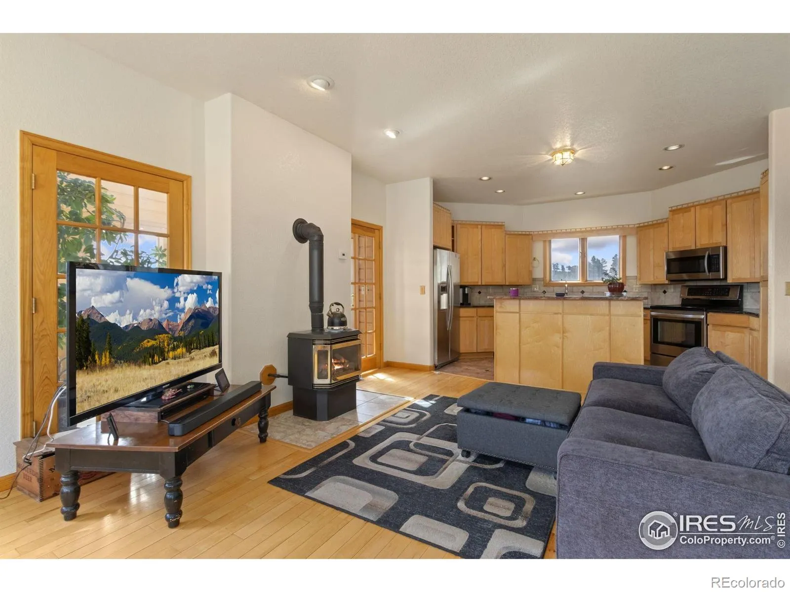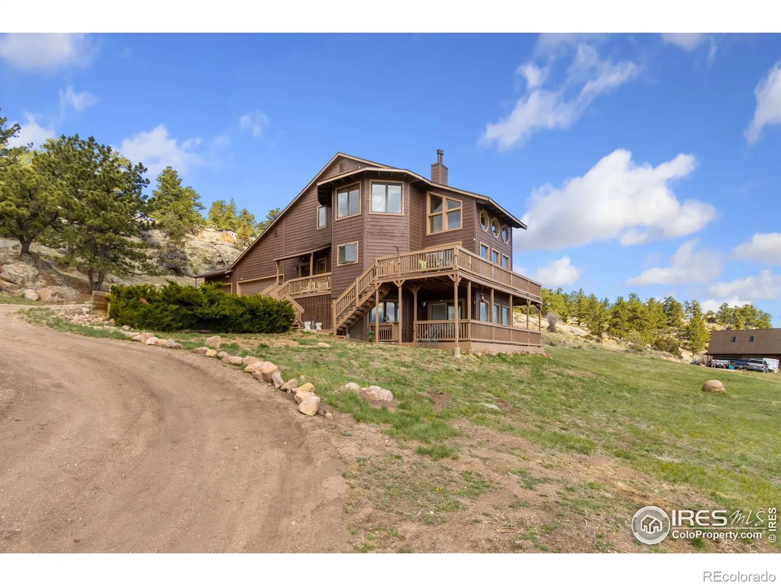Seller would consider home sale contingency or possible trade for a smaller property! This 3 bedroom, 4 bathroom mountain home situated on 5.8 acres just 30 mins from downtown Ft. Collins. Ideal for full time mountain living for a possible getaway with modern comforts.This spacious 3200 square foot property boasts incredible views from every room! It offers an open floor plan with fresh paint and new carpeting throughout the home in addition to hardwood flooring on the main level, a stunning sunroom filled with natural light and opening skylights to provide additional fresh air. The well-equipped kitchen features maple cabinets, a center island, and large windows that fill the space with light. The primary suite includes a private bath and walk-in closet. Downstairs, the fully finished walkout basement opens to a large family room, an additional bedroom, and a second sunroom, offering flexible living space and endless potential. Enjoy the outdoors and the stunning views and landscape from a wraparound deck. It’s one of just a few lots appropriately zoned for up to two horses if you so desire. There’s room for your toys and storage needs in the oversized 3 car garage. Required fire mitigation for improved insurability completed in January of 2025 providing added confidence.