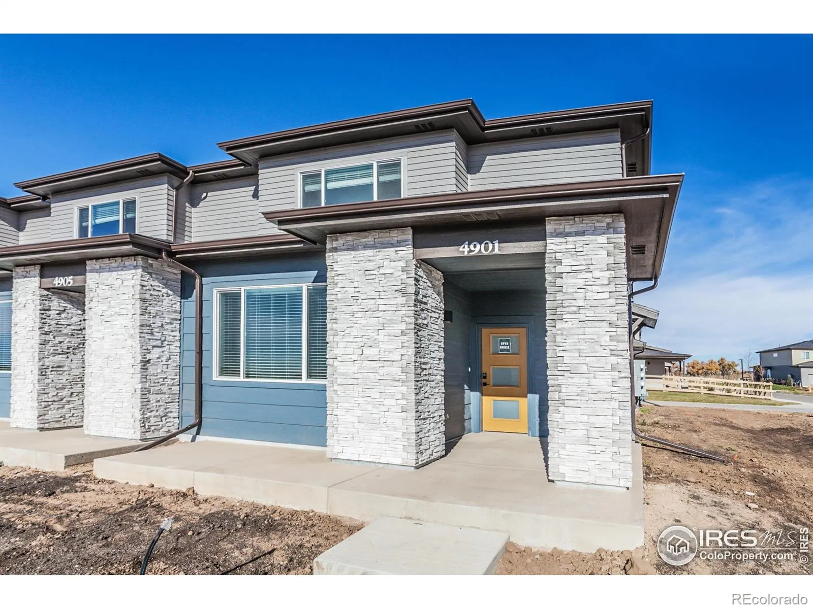 Copperhead by Hartford Homes. New construction townhome in the Wilder at Timnath Ranch community. This thoughtfully designed home offers 3 spacious bedrooms, 2 bathrooms, and a convenient powder bath on the main level. The open-concept layout seamlessly connects the living, dining, and kitchen areas. Fenced front courtyard. The kitchen is equipped with LG stainless steel appliances, including a gas range, microwave, dishwasher, and refrigerator, paired with Eucalyptus painted maple cabinetry and quartz countertops. Vinyl plank flooring runs through the entry, kitchen, dining, bathrooms, laundry, living room. All bedrooms are located on the upper level, alongside a laundry room complete with a washer and dryer. Additional features include central A/C, a garage door opener with keypad. 2in white faux wood blinds. Located across from Bethke Elementary. PHOTOS FROM ACTUAL HOME. ASK ABOUT CURRENT LENDER OR CASH BUYER INCENTIVES.