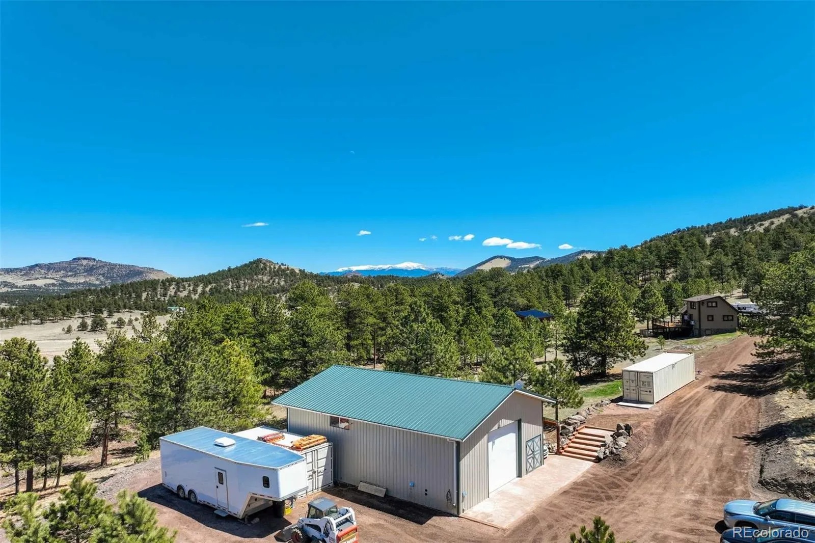 Welcome to Guffey, where our mountain properties are as unique and lovely as our folks! This private 10.8-acre escape showcases gently rolling terrain with mature pine stands, grassy meadow, RV parking, and a turn-around driveway for easy access. The property includes a 730 ft² 1.5-story primary residence and a fully furnished 882 ft² guest quarters, each equipped with dual Pioneer Mini Split systems for year-round comfort. The main home features an open loft bedroom, soaring wood-framed windows, Austrian oak floors, a propane stove, and over 790 ft² of new decking for relaxing or entertaining. The kitchen offers a high-performance stainless gas range, leathered granite counters, granite sink with sensor faucet, and a pantry/laundry room with cabinetry. The guest quarters boast vaulted ceilings, exposed beams, custom acacia floors, a wood stove, and a wraparound deck with unobstructed views. Its kitchen includes granite counters, maple cabinets, a ZLINE gas range with electric oven, and an island with storage and bar seating. The private bedroom is paired with a stackable laundry area, while the ensuite bathroom offers a soaking tub and sleek finishes. Elsewhere on the property is an insulated, productive chicken coop with enclosed yard and an oversized 30 x 40 heated garage featuring concrete aprons and covered side entrances. Ideal for work or leisure, the garage includes 220V power for tools or EV charging, a mezzanine with built-in workbenches, and an office with cabinets and separate exterior access. Tucked just off paved CR-102 near Hwy 9 and an hour west of Colorado Springs, this peaceful location offers year-round access to Divide, Woodland Park, Florissant, and Cripple Creek for dining, shopping, and entertainment. With Mueller State Park, Pike National Forest, the South Platte River, and Eleven Mile Reservoir nearby, you’ll find world-class hunting, hiking, rafting, fishing, and more at your fingertips! Additional photos, 3D tours, and documents available.