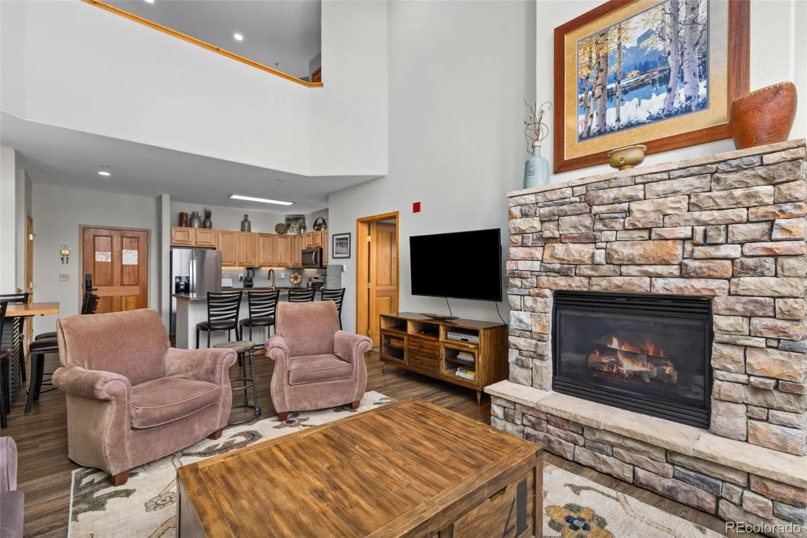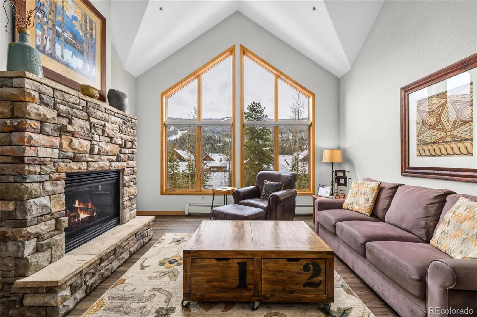 Welcome to your mountain getaway – a beautifully upgraded 4BR, 4BA offering panoramic slopeside views from every room. This spacious retreat lives like a townhome, featuring soaring vaulted ceilings, an open-concept layout, & two generous living areas across two levels – ideal for large groups, or rental guests. The main floor living space is both stylish and practical, with new luxury vinyl plank flooring (perfect for snow gear), a cozy gas fireplace, sleek ceiling fan, & updated window treatments. The chef’s kitchen is equally impressive with newer stainless steel appliances, solid quartz countertops, a glass tile backsplash, under-cabinet lighting, & a large peninsula with bar seating for 4. Gather comfortably with dining space for 12 between the table & peninsula. Each of the 4 bedrooms boasts its own ensuite bathroom, all thoughtfully upgraded with quartz counters, modern sinks, faucets, & lighting. The luxurious primary suite features a 5-piece bath with a custom-built shower. A queen sleeper in the loft & a top-tier American Leather king sleeper in the living room comfortably bring the total sleeping capacity to 12. You’ll love the private deck accessible from both the primary suite & the lower living room, in-unit laundry, two lockable owner closets. Indoor pool & hot tub, fitness center, ski lockers, grilling area, elevator, secure garage parking. Conveniently located between Keystone’s River Run & Mountain House base areas, both walkable in under 10 minutes. & a free shuttle stop right at the property. Monthly HOA dues cover all utilities, cable for all 6 flat-panel TVs, & internet. Pet-friendly for owners. Steep Brewing & Coffee, a local grocer/liquor store, Haywood Cafe, & the beloved Snake River Saloon are just steps away. Fully furnished & turn-key. Proven income producer with over $76,000 in average gross annual rental revenue.*** Seller is willing to offer a buyer a credit at closing for future HOA dues or to buy down their interest rate ***