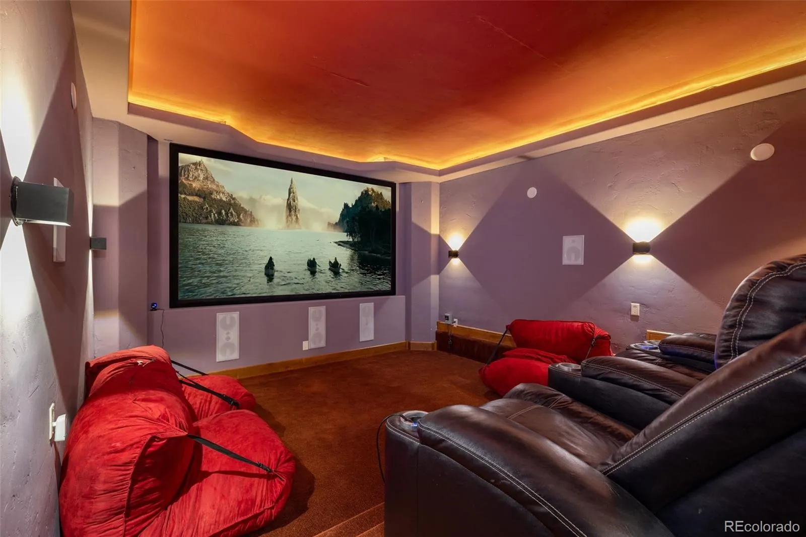 Transform your evenings with a true cinematic escape right at home. This custom-designed private theater features tiered leather recliners, ambient LED ceiling lighting, acoustic wall treatments, and a full surround sound speaker system for a premium movie-watching experience. Whether you’re streaming the latest release or hosting a game-day gathering, this Breckenridge home theater offers a cozy, high-end entertainment space ideal for second-home relaxation or short-term rental appeal. A rare luxury in mountain properties, it adds value and lifestyle all in one. Life is good here.