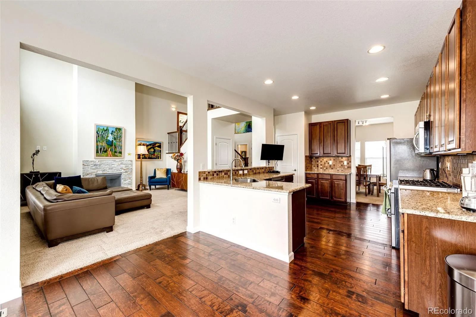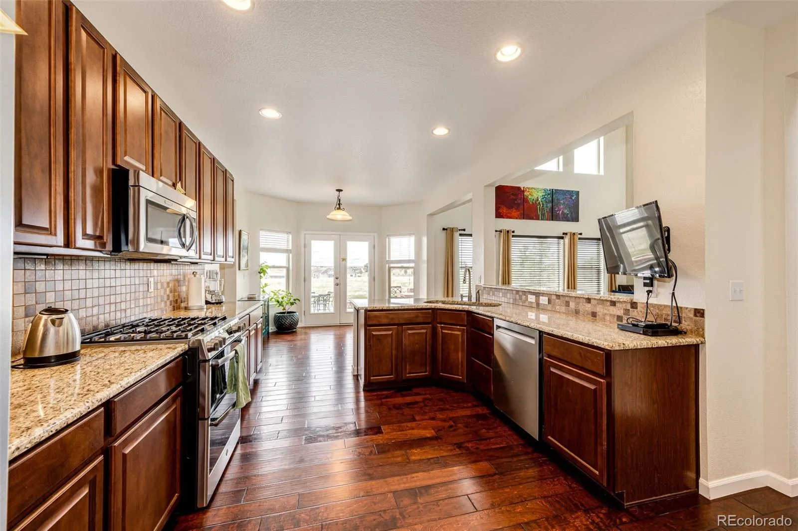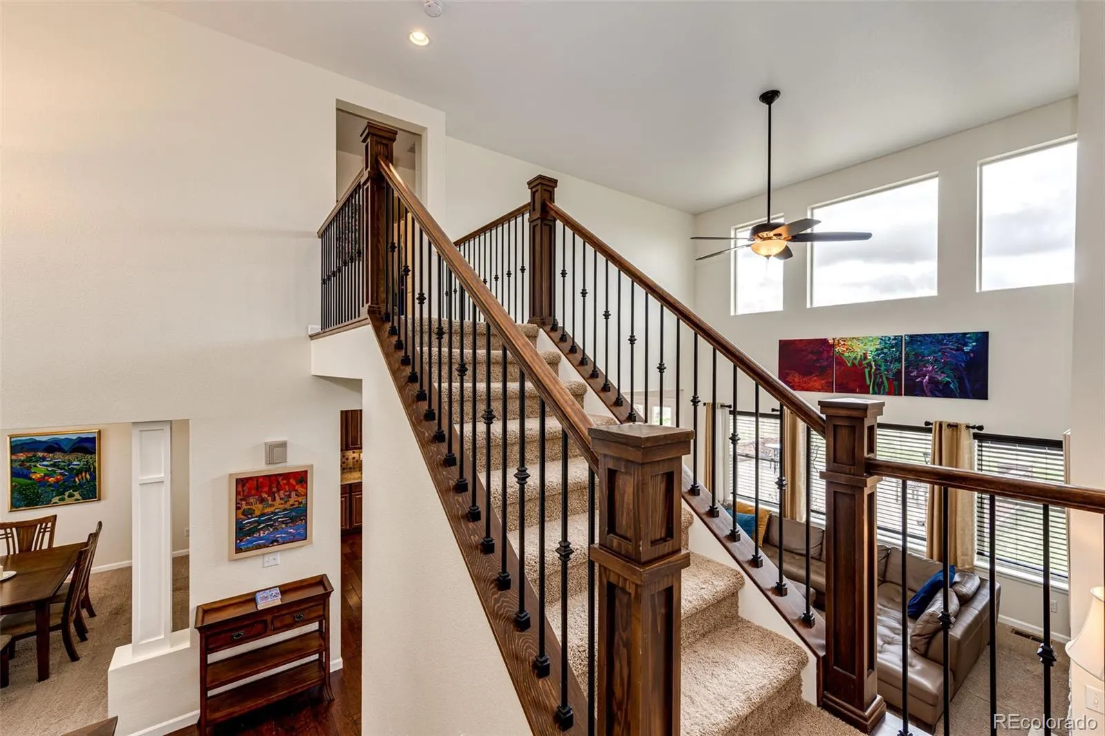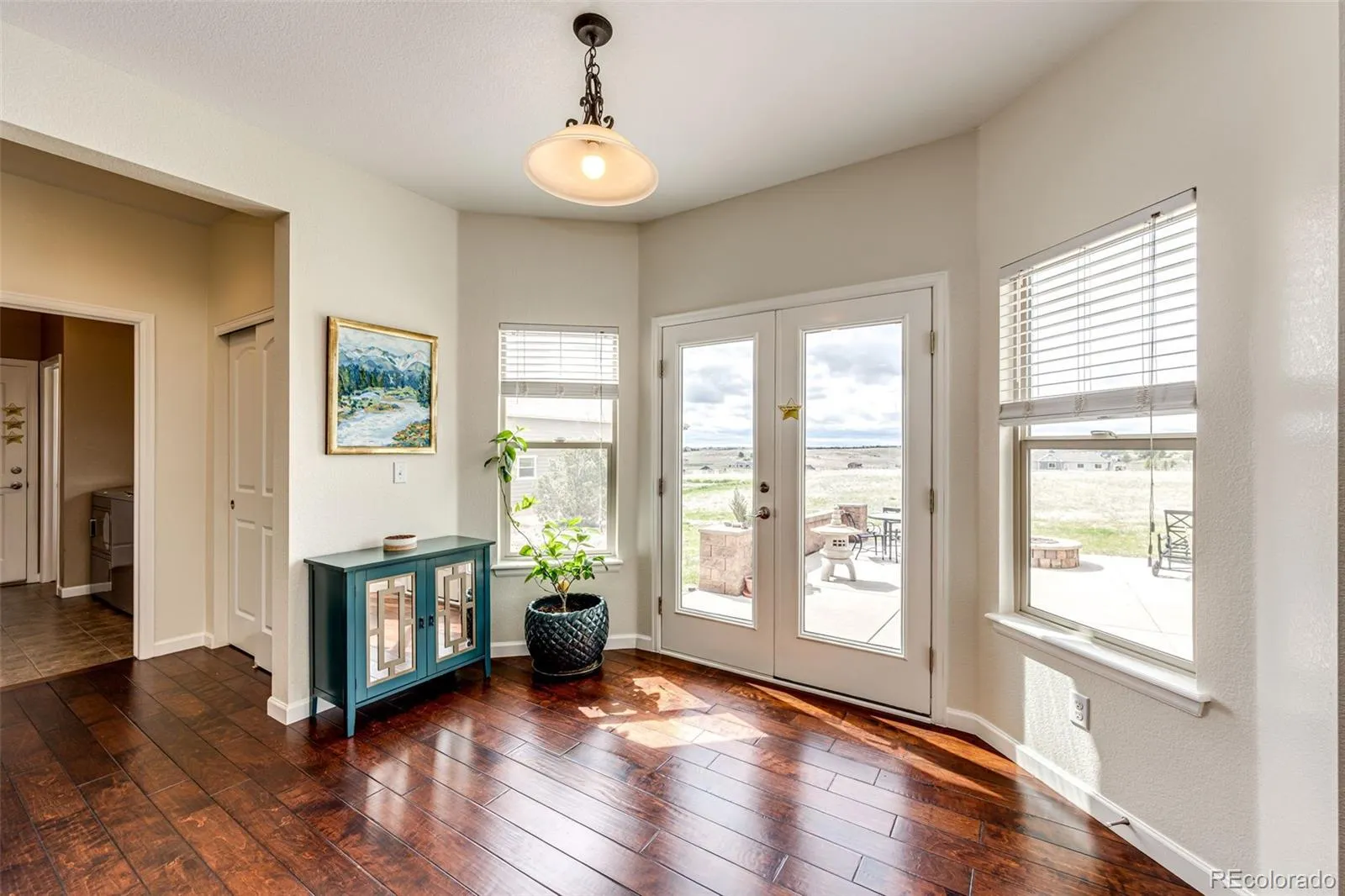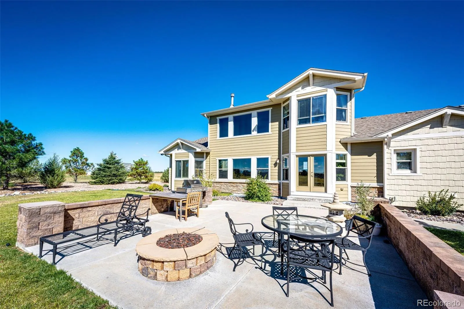 Motivated Seller! Charming Two Story Home located on 5 acres of horse property in the prestigious Wild Pointe Subdivision. This home has been meticulously maintained and features a massive 36 x 60 heated, insulated shop that offers concrete flooring, is fully finished with drywall, plumbed with sink (French Drain) with upgraded phase 3 power. The exterior and interior of the home have been freshly painted and the home features a Newer Class 4 shingle roof. The beautifully maintained home offers upgrades such as maple cabinetry, granite countertops, hand scraped oak hardwood flooring, new stainless steel appliances and UV treated southwest facing windows. The focal point of the living room is a new gas fireplace with rock surround. The spacious open floor plan features a well designed kitchen with breakfast nook, formal dining room, main floor primary bedroom suite, luxurious 5 pc primary bathroom and spacious second main floor bedroom with 3/4 bathroom. The upper level features two large bedrooms, catwalk and full bathroom. The partially finished basement offers room to grow with a large family room, an additional bedroom and newly remodeled 3/4 bathroom. The basement also features new carpet throughout. Additional upgrades in the home include new hot water heater, new sump pump and new water purification system. The lot is fully landscaped with over 140 trees on irrigation system, retaining walls, crushed asphalt driveway and beautiful landscaped patio with fire pit. Wild Point has miles of trails and open space for hiking, biking or horse back riding and this home is just minutes from downtown Elizabeth and all the festivities this quaint little town has to offer! All measurements are approximate.