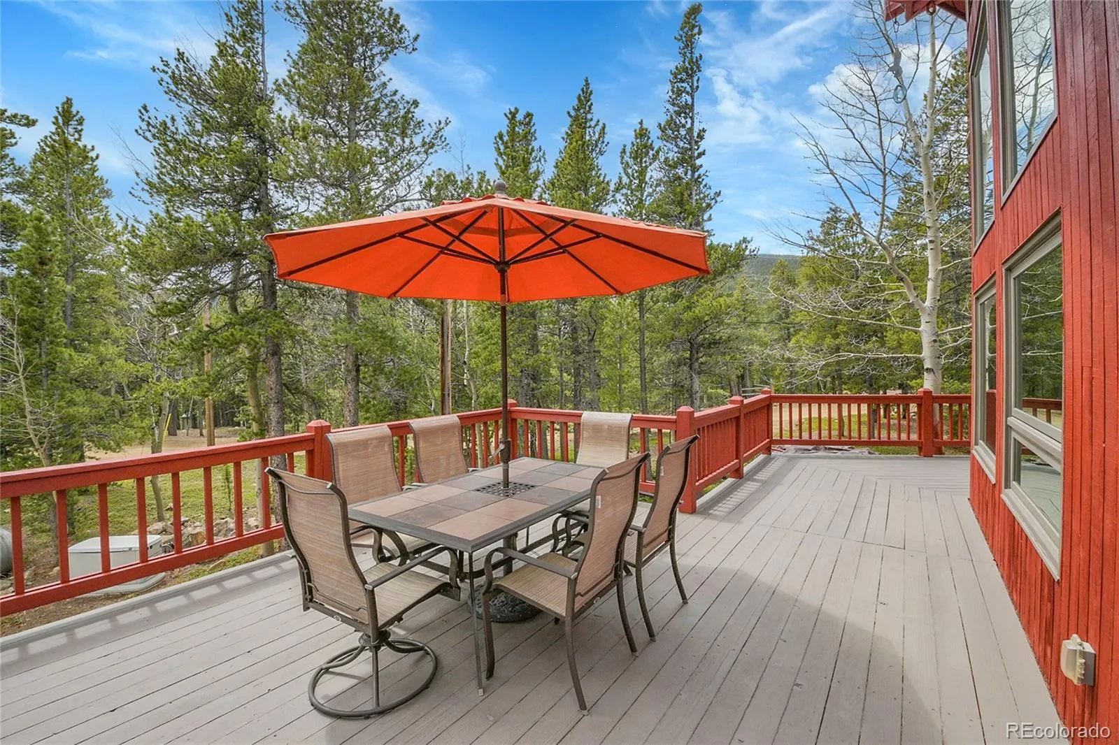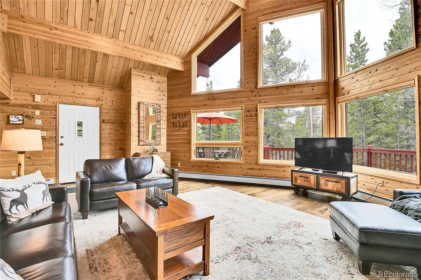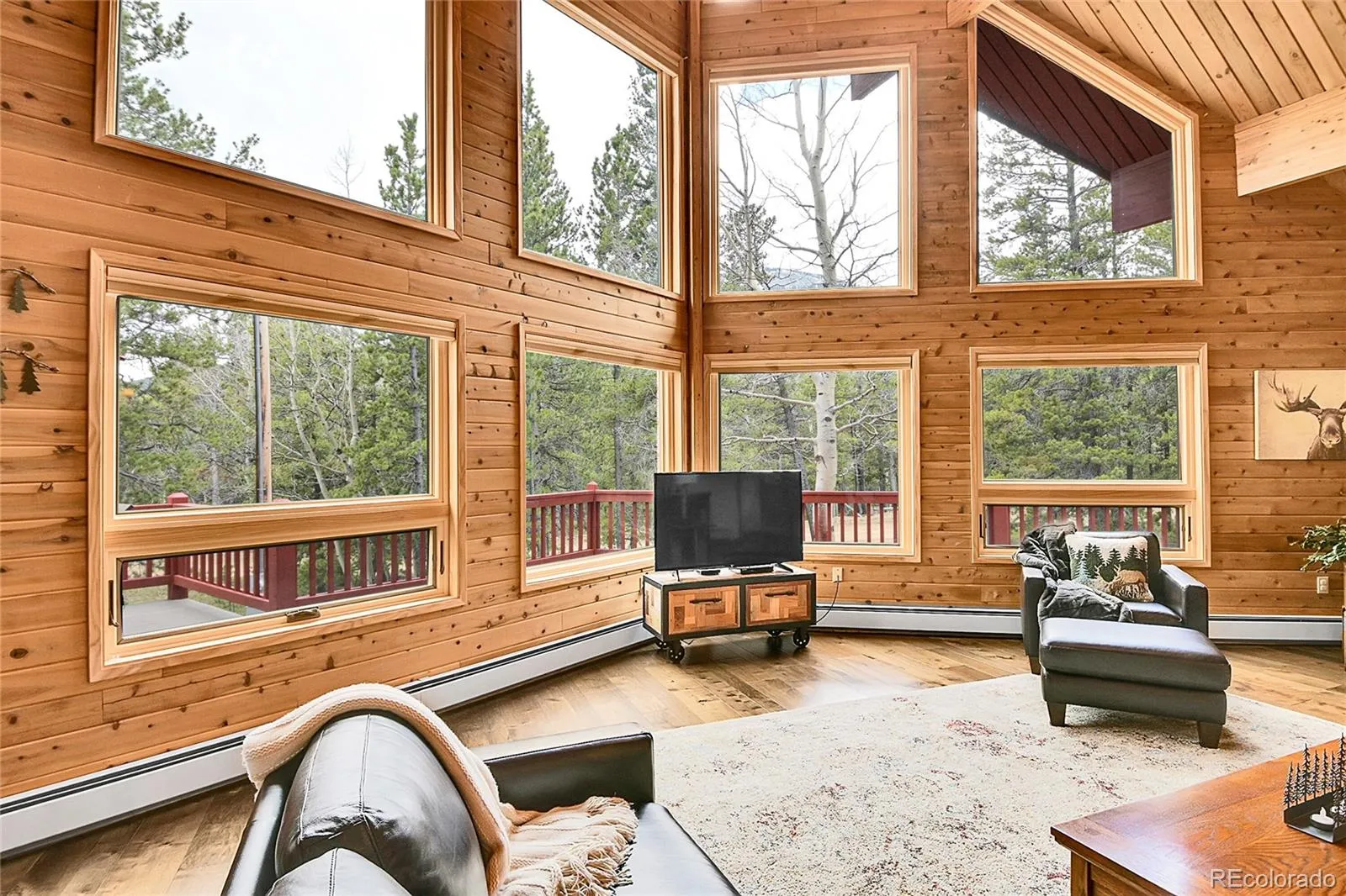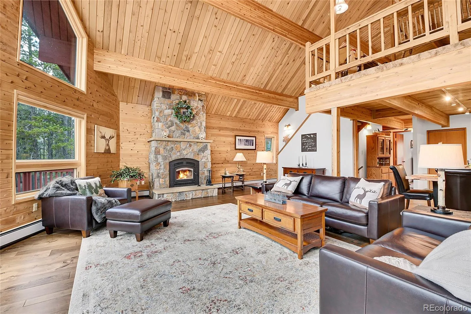 This beautifully cared-for 3-bedroom, 2-bathroom sanctuary offers 3,106 square feet of seamless living space nestled in a private, picturesque setting. Accessible year-round via pristine county-maintained roads, this retreat invites you to unwind and enjoy nature’s beauty at every turn. The expansive great room is a showstopper, featuring a dramatic wall of windows that flood the space with natural light and frame breathtaking mountain vistas. Soaring tongue-and-groove vaulted ceilings with rustic beams create an ambiance of cozy sophistication. Recent upgrades elevate this home’s allure, including brand-new windows that invite the outdoors in and a wood-burning fireplace perfect for cozy Colorado evenings. Extensive decks beckon you to soak in the fresh mountain air, whether hosting gatherings or enjoying quiet moments surrounded by nature. Rest easy knowing a state-of-the-art Generac whole-house generator keeps you comfortable year-round. The finished lower level is an entertainer’s dream—spacious, stylish, and ready for memorable gatherings. Indulge in the comfort of efficient hot water heat, and let the stunning surroundings rejuvenate your spirit. Discover mountain living at its finest—where luxurious comfort and natural beauty come together in perfect harmony.