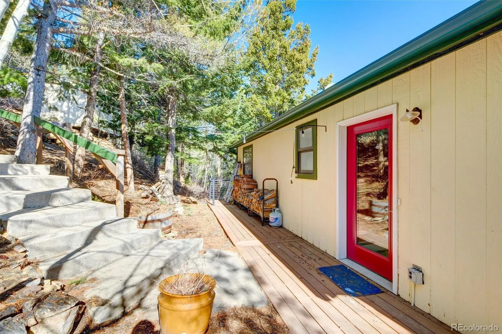 ***HUGE PRICE REDUCTION***THE VIEWS!!! Perched in the peaceful beauty of Canyon Creek, this contemporary mountain home delivers a standing ovation VIEW with every glance—offering unobstructed, jaw-dropping views of Longs Peak, the city of Denver, and the majestic Rocky Mountains (Seriously…some of the best views ever seen). From your brand-new picture windows or the expansive Trex deck, take in Colorado’s most iconic scenery—morning to night, season to season. This thoughtfully designed home features 3 bedrooms and 2 full baths, with a main-level primary suite for easy living. Warm wood beam ceilings and gleaming engineered hardwood floors add character and charm, while two fireplaces (main level & basement) create cozy, inviting spaces to gather. The walkout basement includes two additional bedrooms, a full bath, and a spacious family room—perfect for guests, kids, or a quiet retreat.