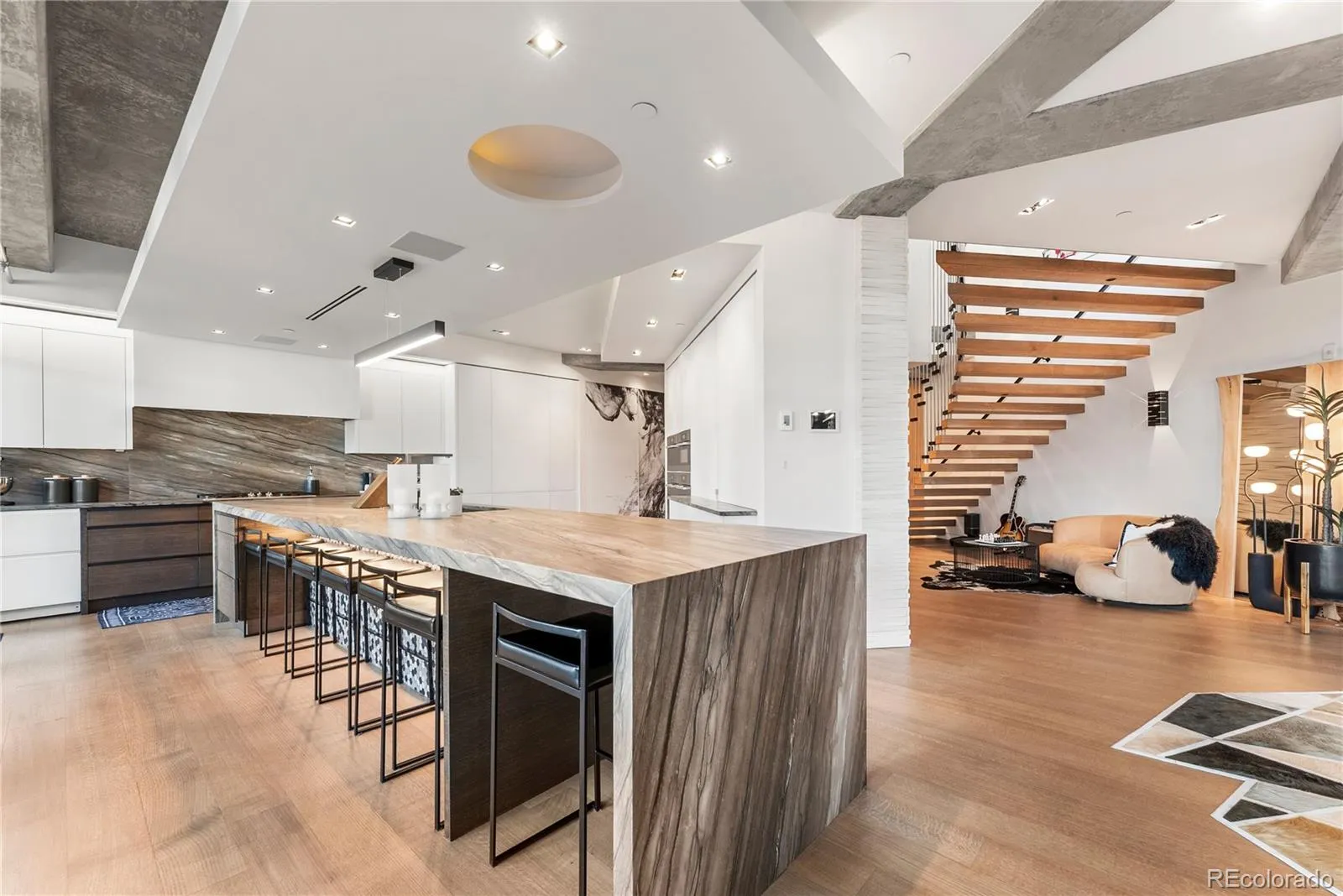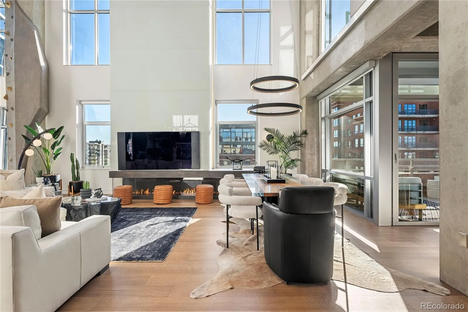 Perched atop one of the most desirable buildings in Downtown Denver, Penthouse 6 is a rare opportunity to own a custom-designed, multi-level residence in the heart of Riverfront Park—arguably the city’s most refined and walkable neighborhood. Encompassing over 4,000 square feet of artfully curated interiors, this penthouse offers a rare blend of architectural sophistication, privacy, and sweeping mountain-to-city views that frame every living space. Completely reimagined with no expense spared, the residence is anchored by a showstopping chef’s kitchen with Miele appliances, a built-in espresso machine and steamer, and striking leathered granite waterfall countertops—all flowing seamlessly onto a private terrace ideal for al fresco dining. The soaring living room impresses with dramatic volume, a bespoke 12ft glass fireplace, a rock climbing wall, designer wall tile, and floor-to-ceiling windows that flood the home with light. Additional main-floor highlights include a chic guest suite, custom powder room, cozy reading lounge beneath the architectural staircase, and a full-sized laundry room. Upstairs, the serene primary suite is a true sanctuary with a private balcony, spa-like five-piece bath, sauna, custom walk-in closet, and an additional washer/dryer. Two additional bedrooms and a loft lounge with outdoor access complete the upper level. Penthouse 6 is the only unit in the building with a fully private rooftop deck—an exclusive outdoor retreat with a hot tub and panoramic views. The home is powered by a Savant automation system, giving you full control of lighting, climate, and media from your phone. Includes three oversized deeded garage spaces in a secure, heated building. Residents enjoy professional management, premium amenities, and direct access to Commons Park, Confluence Park, Union Station, Larimer Square, the Ballpark District, and Denver’s best dining and cultural venues. A lifestyle of elegance, privacy, and connection to the city’s very best.